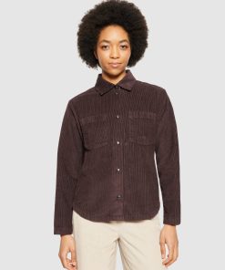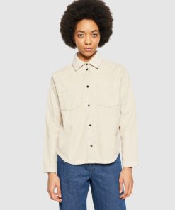 KnowledgeCotton Apparel Women’s Irregular Corduroy Overshirt- Gots/vegan | Light Feather Gray