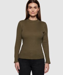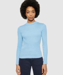 KnowledgeCotton Apparel Women’s Regenerative Organic Cotton Rib Long Sleeve Gots/vegan | Aqua-esque