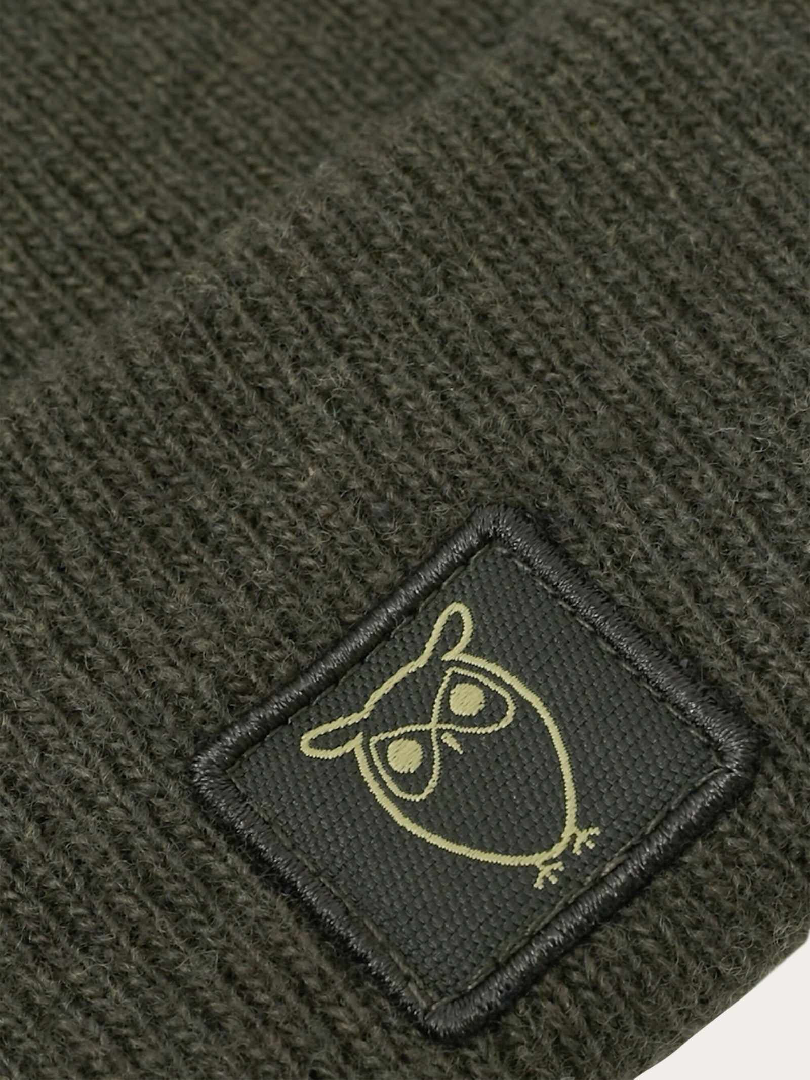 Our knitted wool beanie is made to warm little ears during winter. Made from soft 100% lambswool in a substantial rib structure that will always feel comfortable to wear. Finished with a tonal owl-embroidered patch on the front.