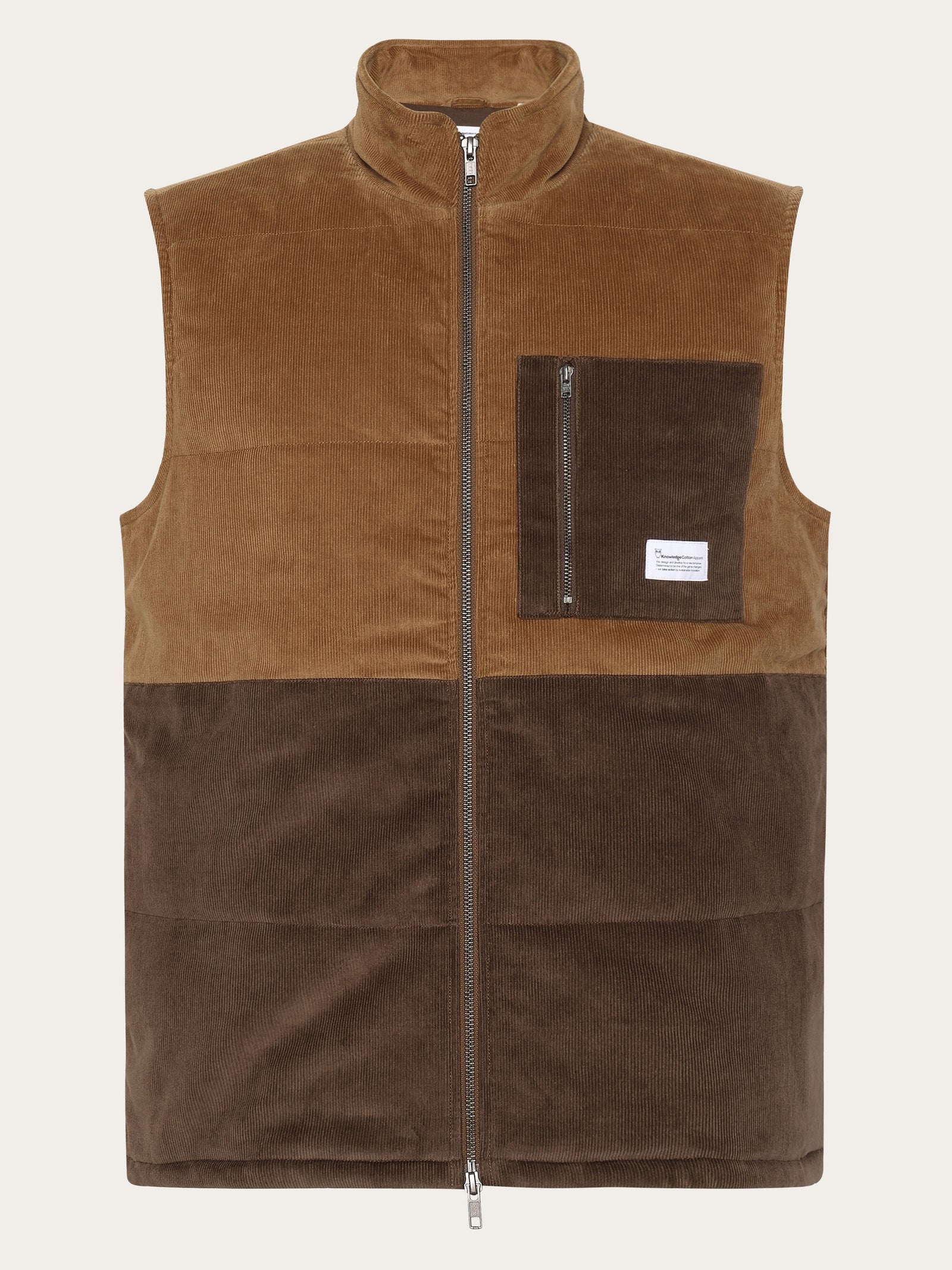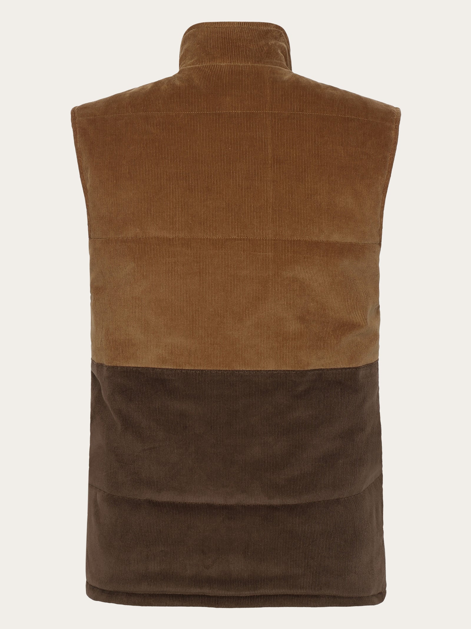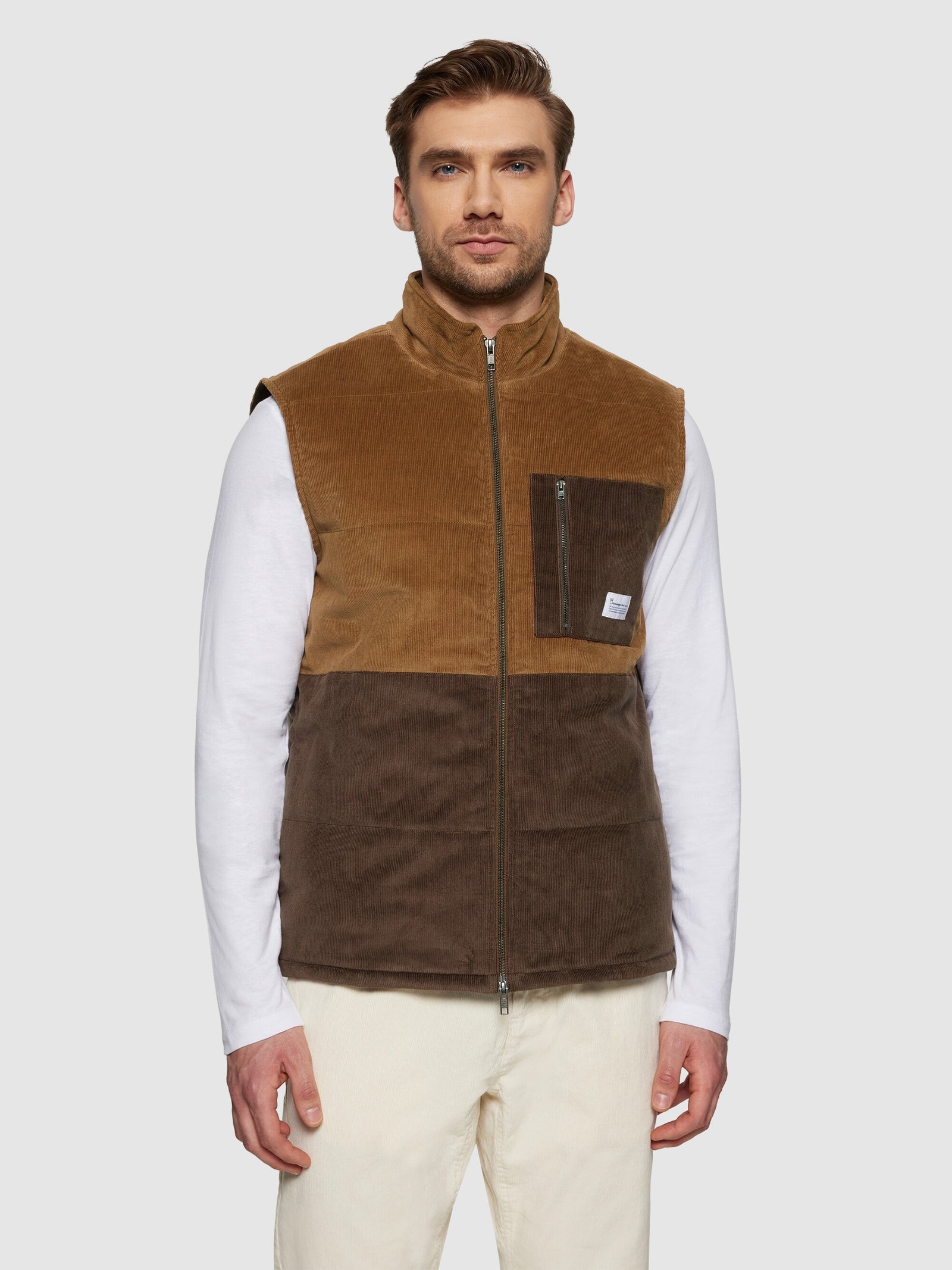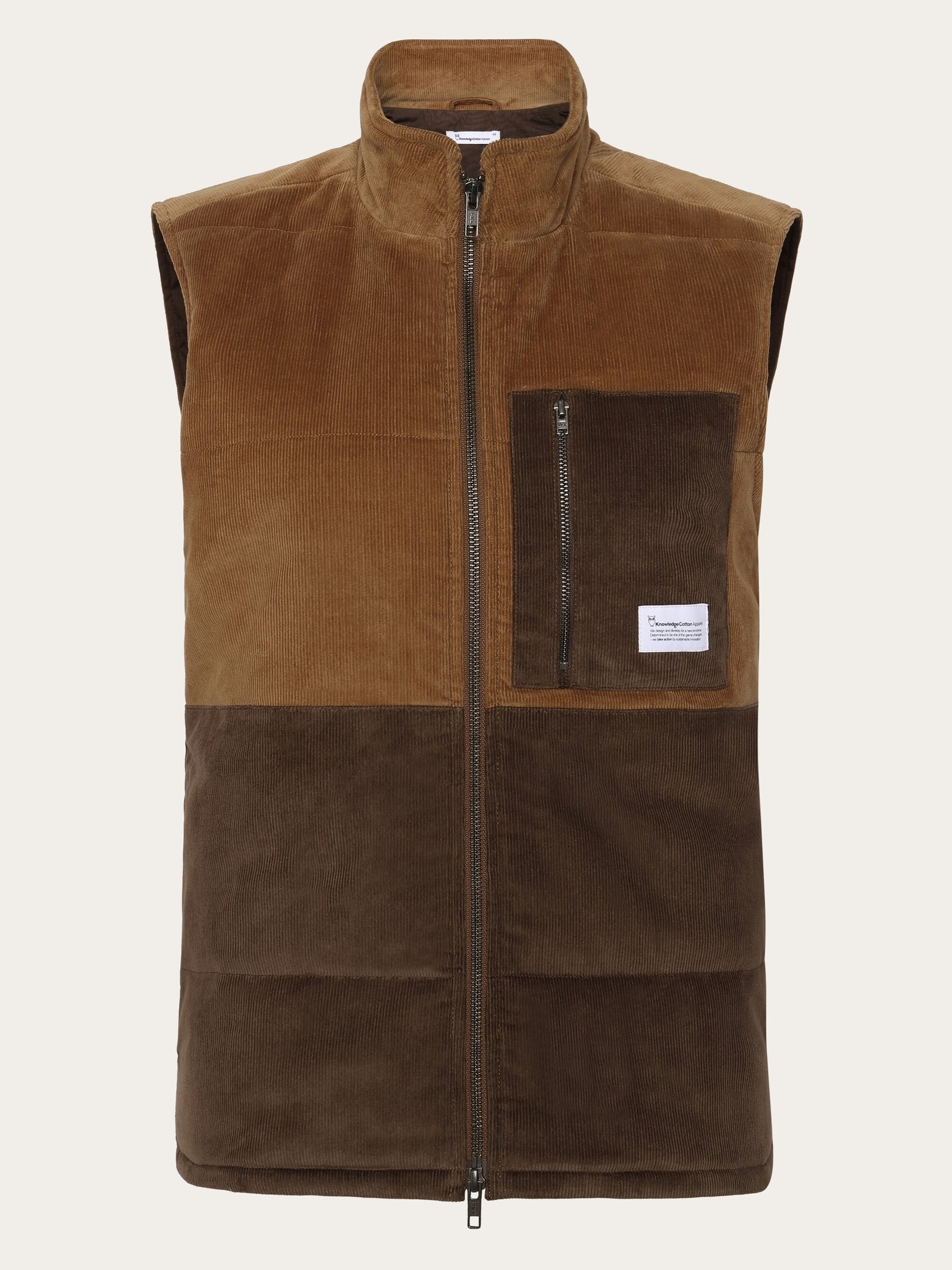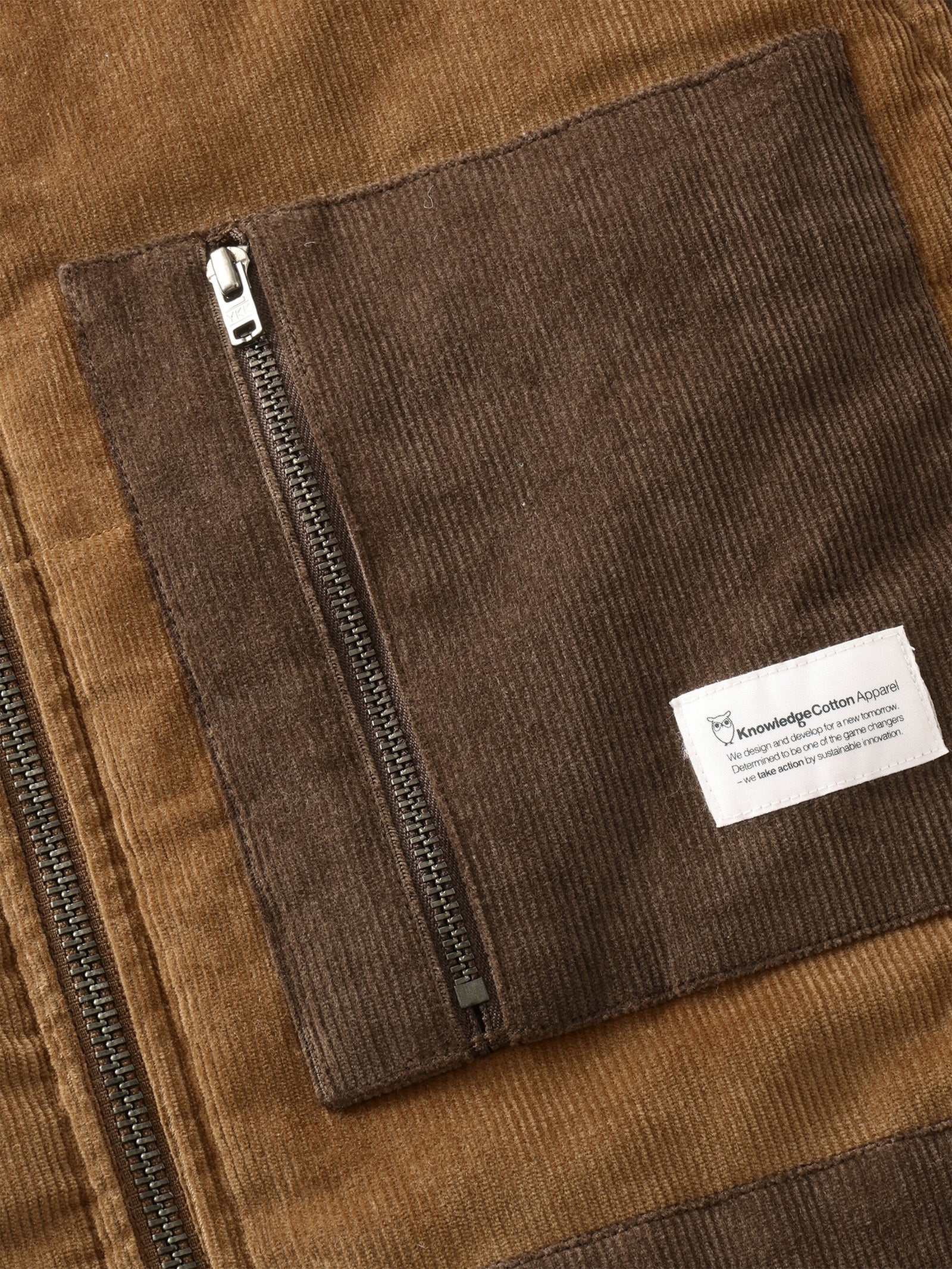 Layer up in cozy pieces made for comfort. Our corduroy color block zip vest is made in a soft blend of organic cotton and recycled polyester to keep you warm and ready to embrace whatever comes your way. The vest is designed in a regular fit with a high neck, a chest pocket, and a two-way zipper.Style no. 4100001