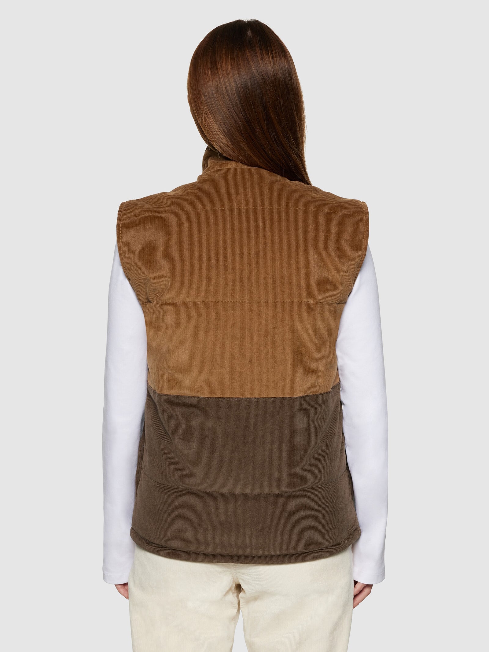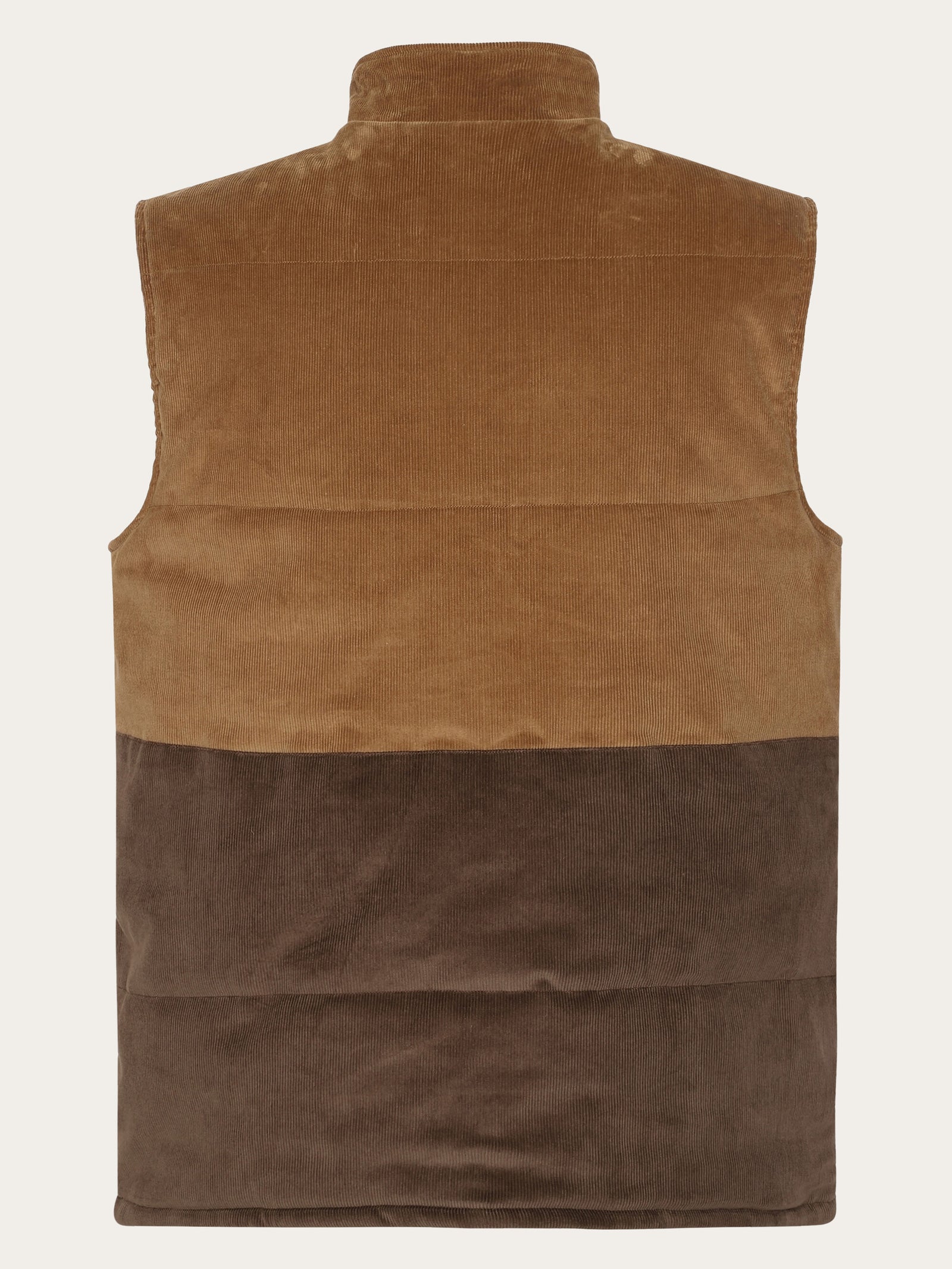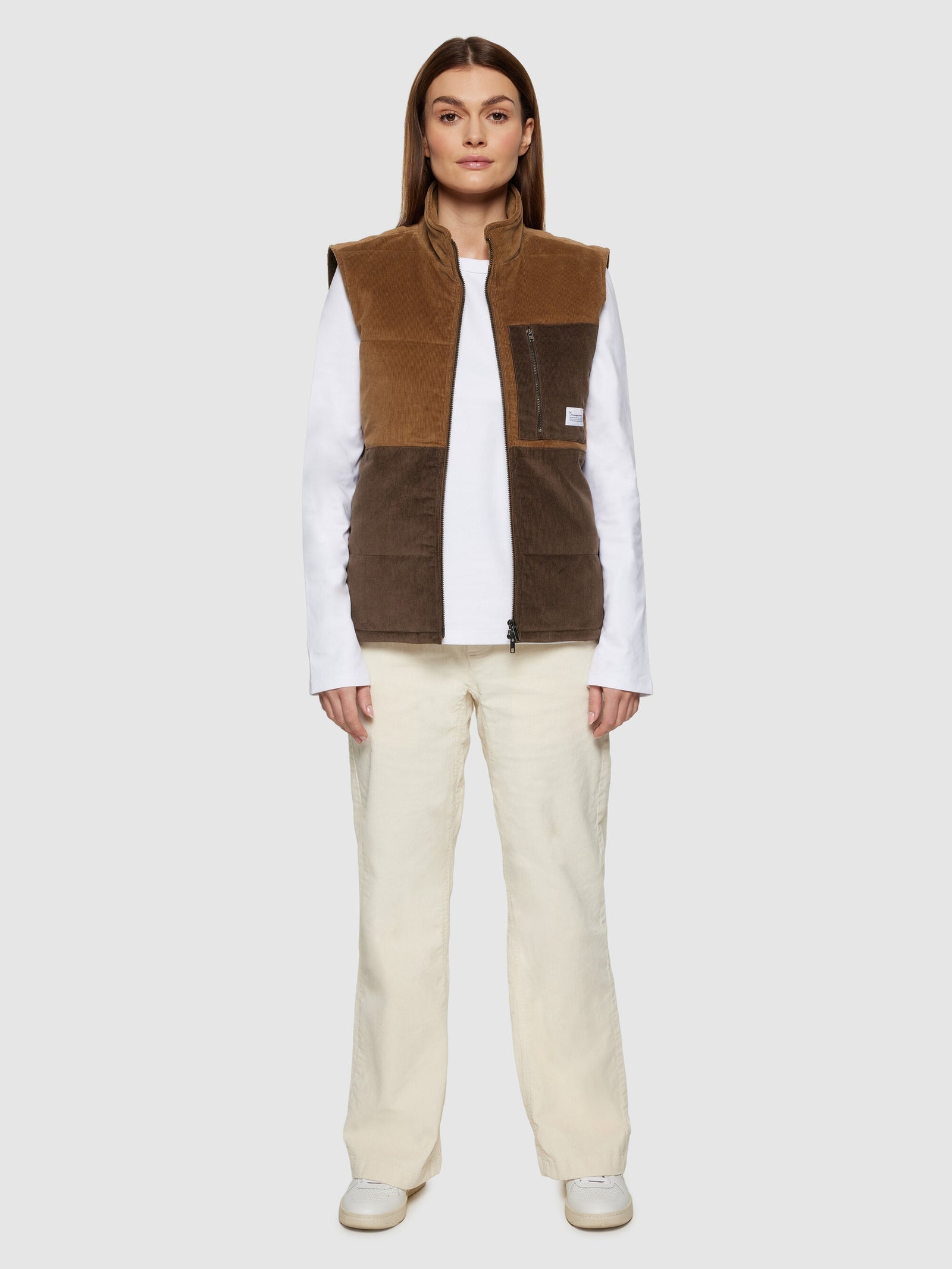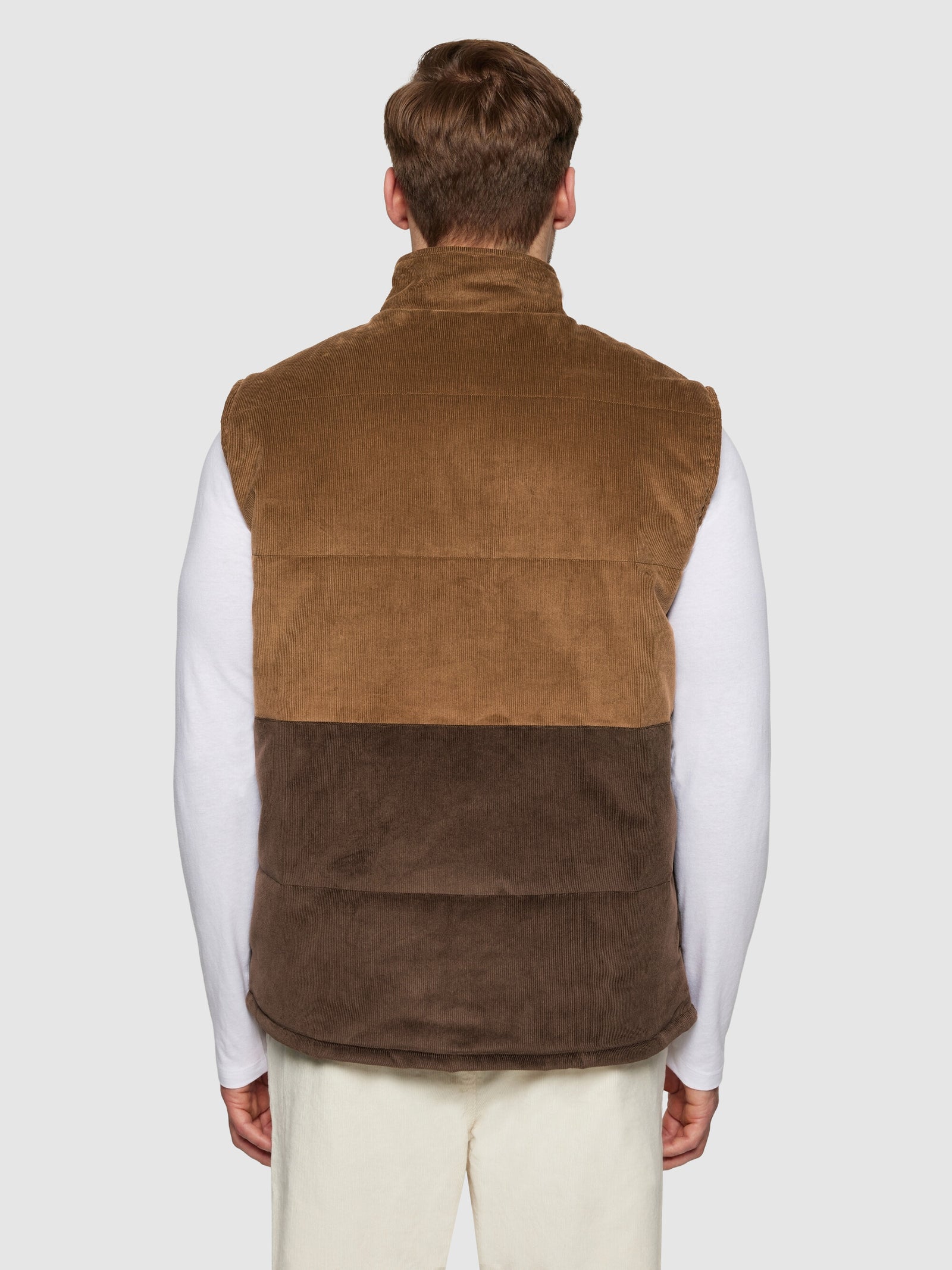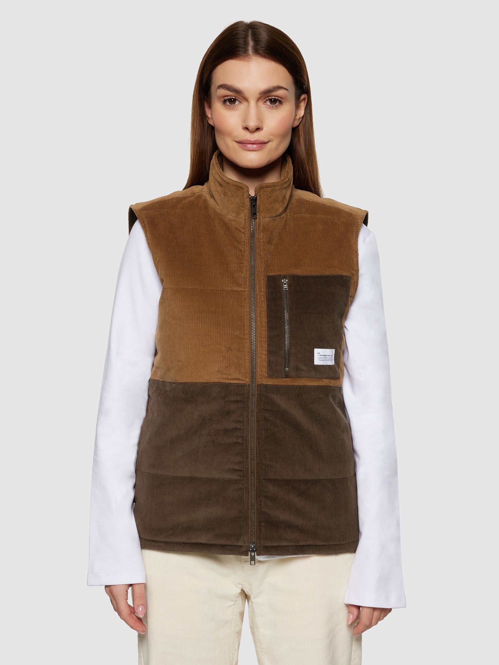 Layer up in cozy pieces made for comfort. Our corduroy color block zip vest is made in a soft blend of organic cotton and recycled polyester to keep you warm and ready to embrace whatever comes your way. The vest is designed in a regular fit with a high neck, a chest pocket, and a two-way zipper.Style no. 4100001