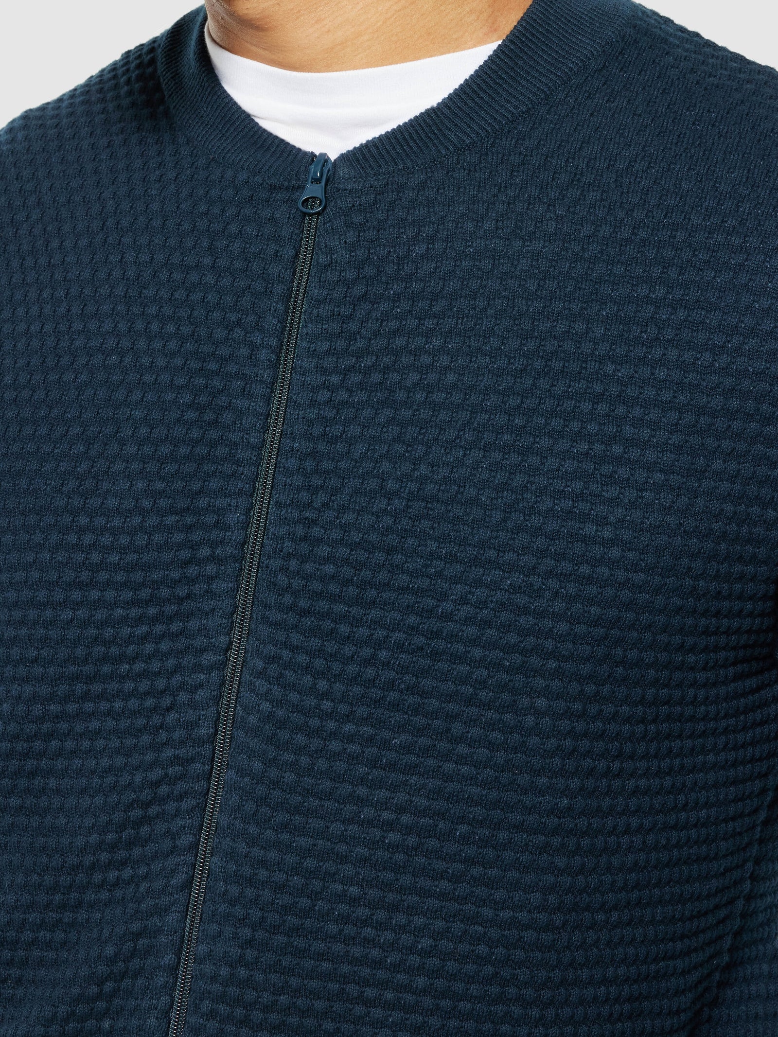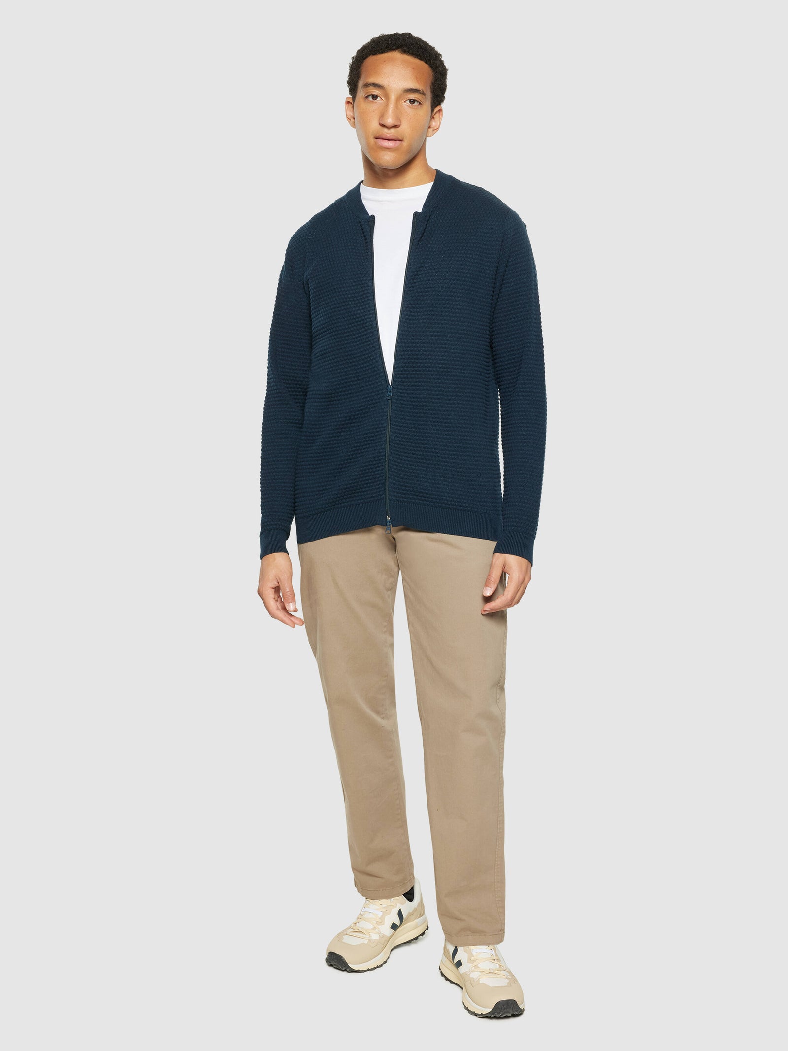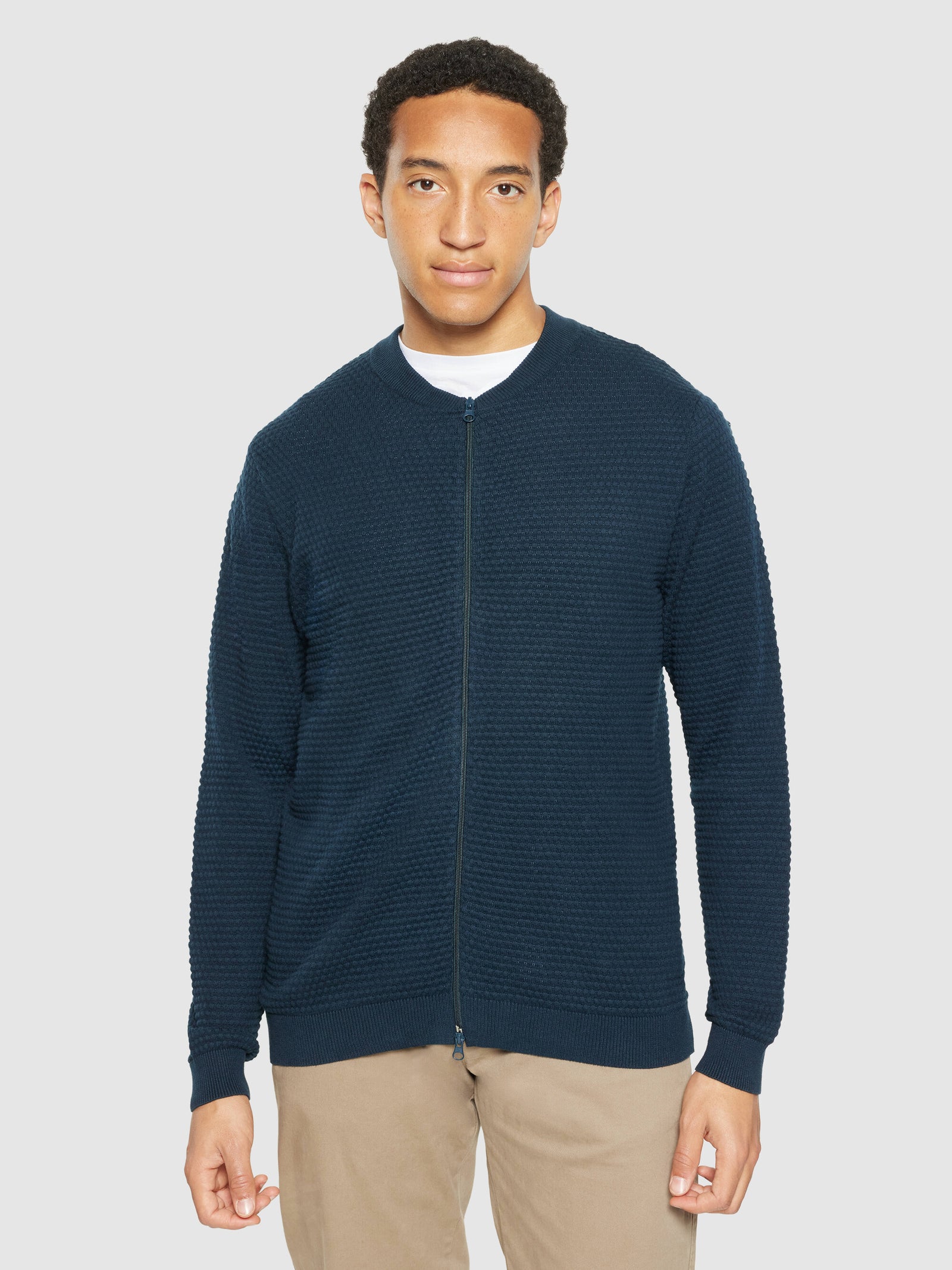Layer up in cozy pieces made for comfort. Using only soft 100% organic cotton, this cardigan is of a long-lasting quality that will keep you warm and ready to embrace whatever comes your way. The cardigan is designed in a regular fit with an eye-catching bubble knit structure and a zip-up closure.