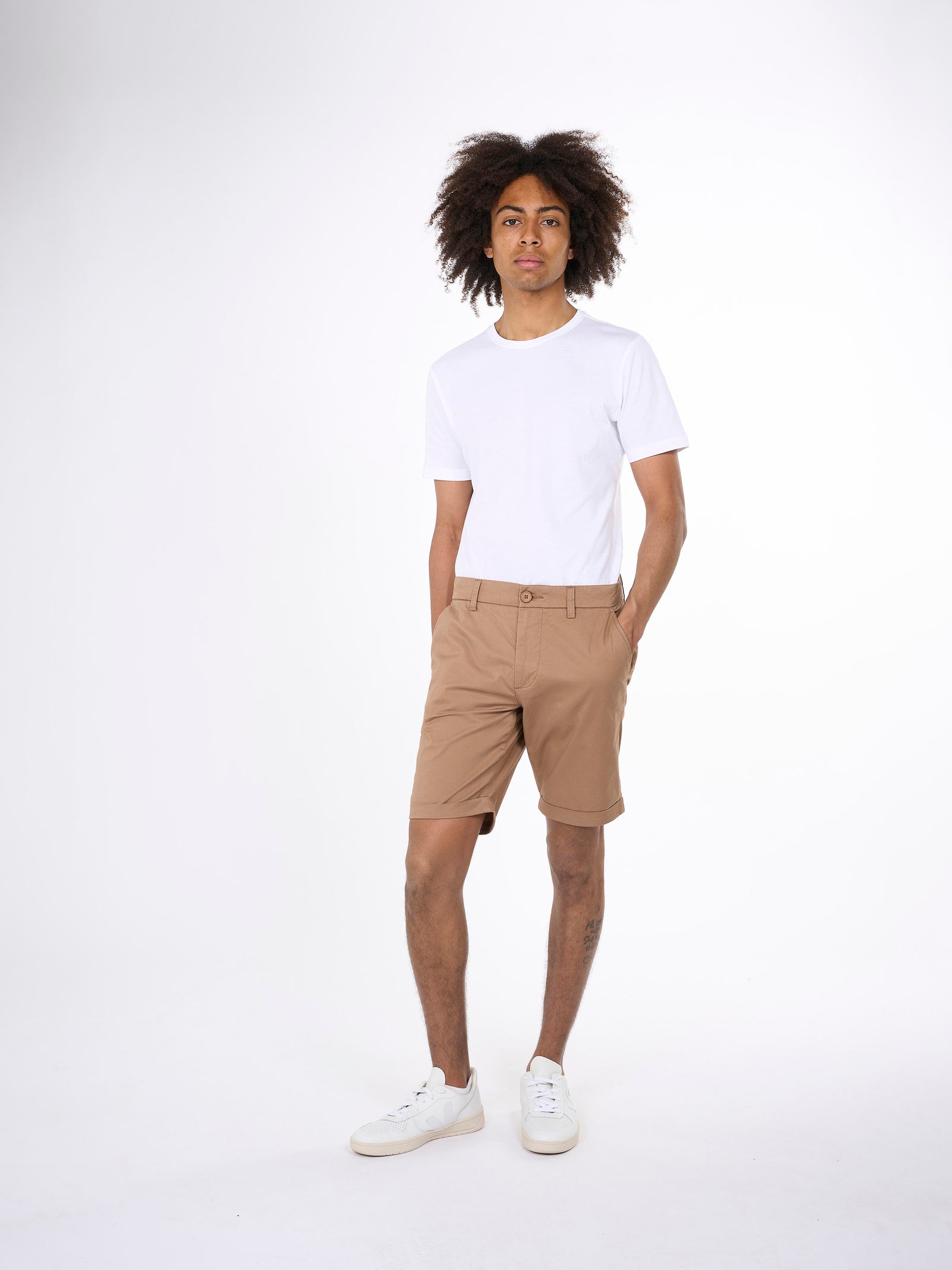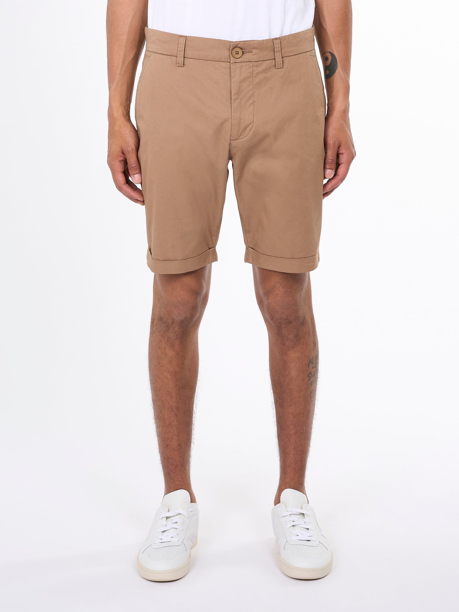 Dress up for summer with a pair of classic and timeless chino shorts. Made in a blend of organic poplin cotton and a little bit of elastane, these shorts will stretch and adapt to your legs for everyday comfort. Designed in a regular, straight fit with slanted front pockets, discrete back pockets, button closure, and finished with belt straps.Style no. 50207