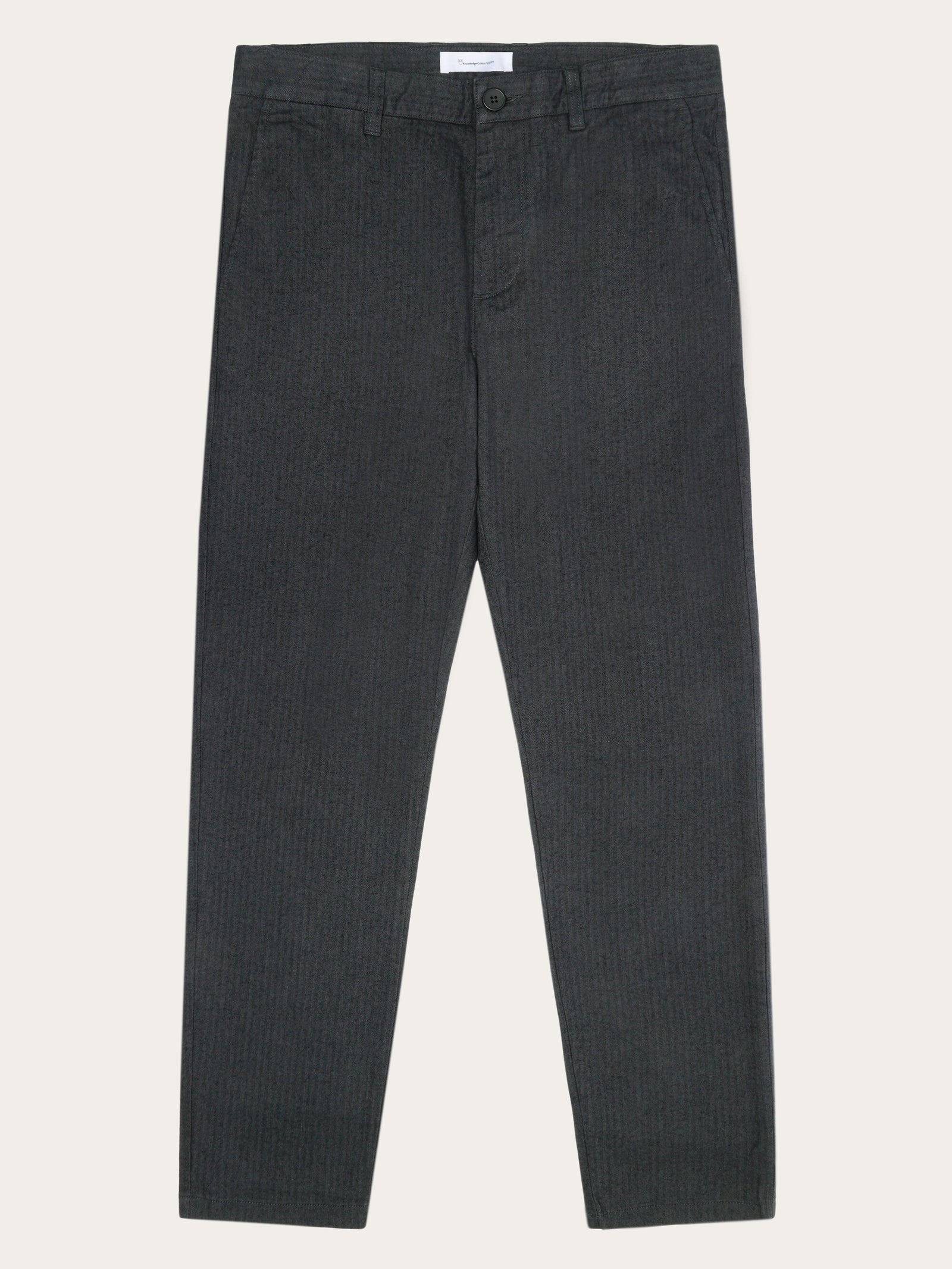 Add timeless pieces marked by trans-seasonal features to your wardrobe. Our flannel chino pants are designed in a herringbone structure made from organic, lightweight cotton with a touch of stretch for easy movement and a casual look. The chinos are finished with belt straps, a button closure, slanted front pockets, and discrete back pockets.Style no. 1070052