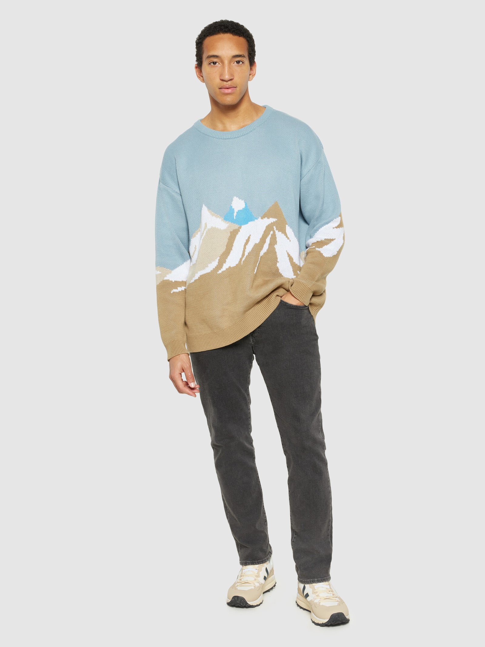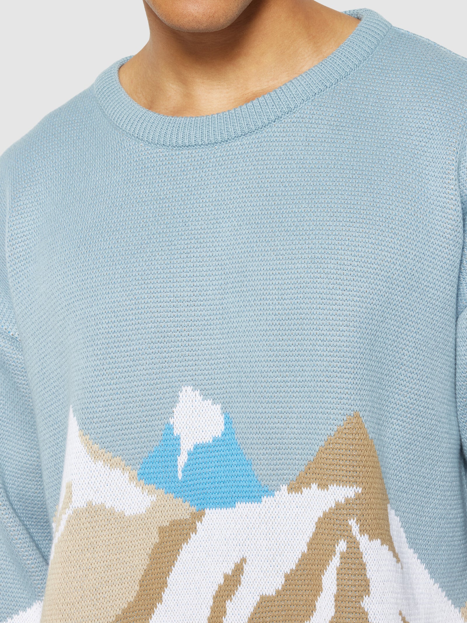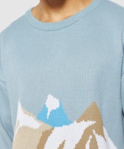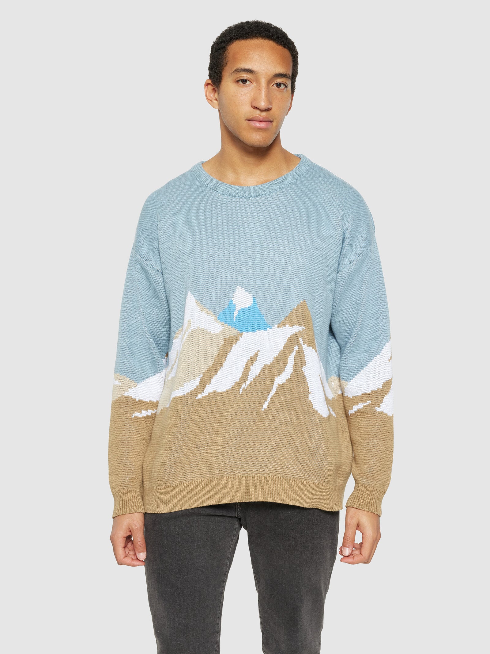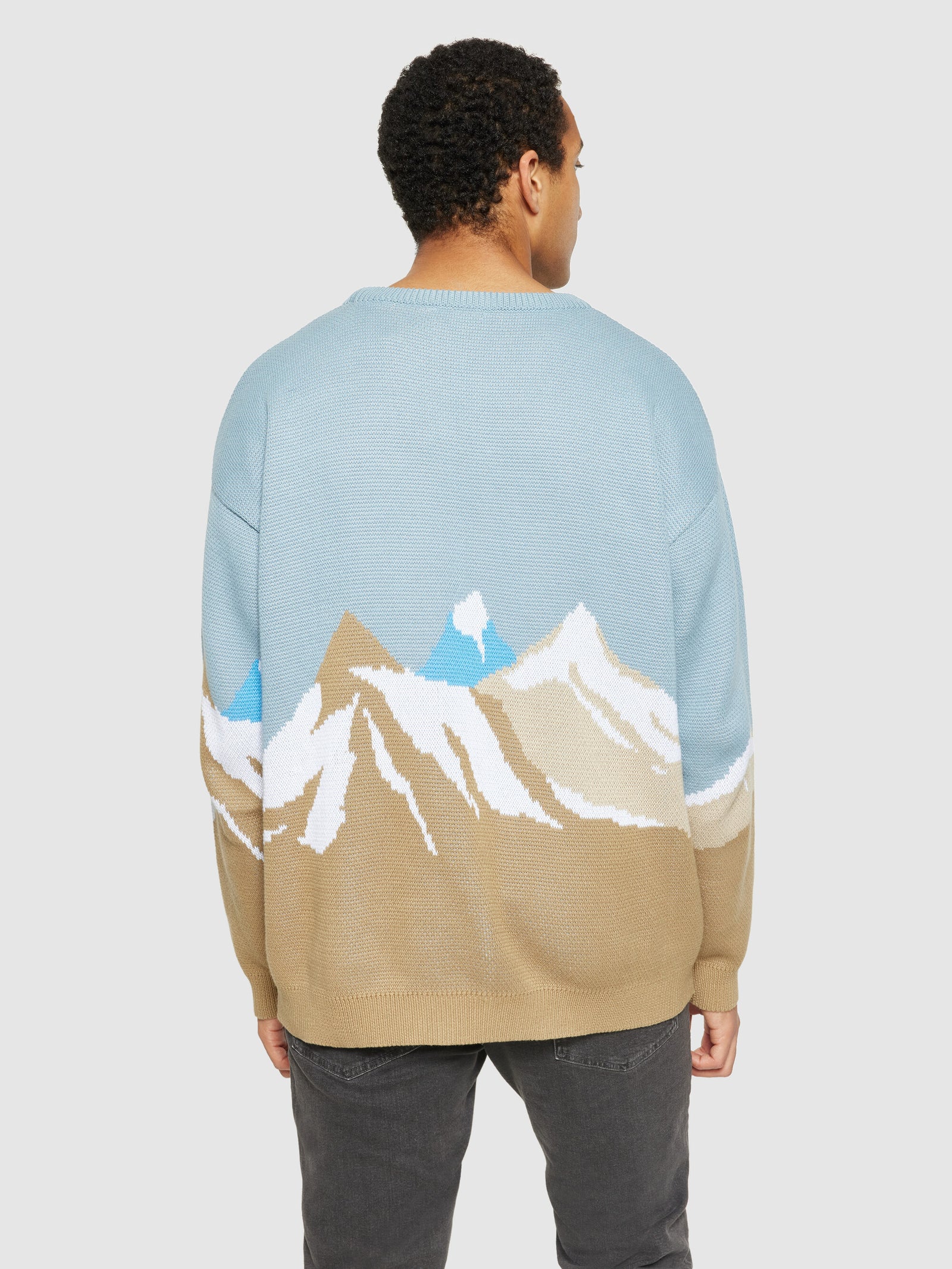 Layer up in cozy pieces made for comfort. Using only soft 100% organic cotton, this crewneck is of a long-lasting quality that will keep you warm and ready to embrace whatever comes your way. The crewneck is designed in a loose fit with an eye-catching knit mountain pattern.