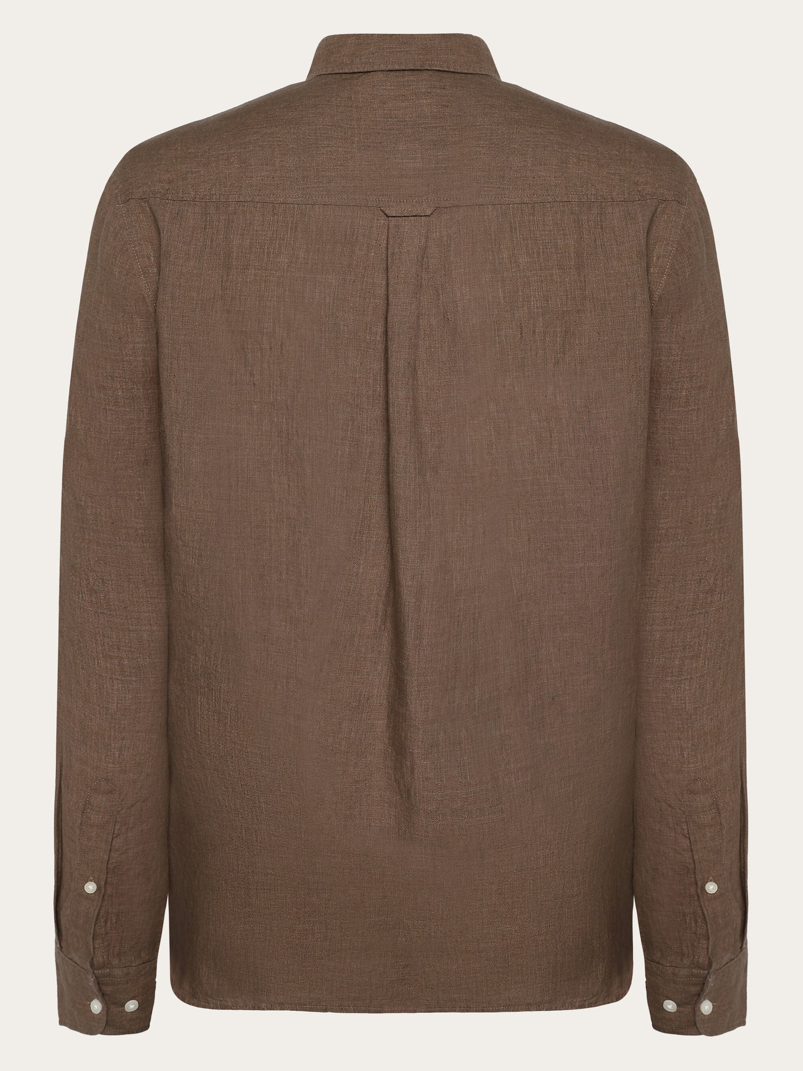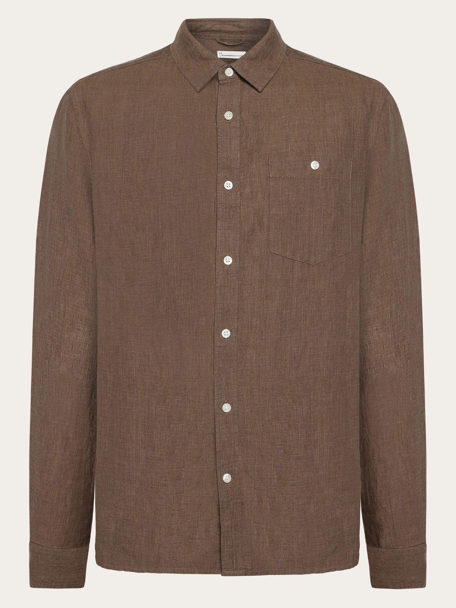 Choose a classic and timeless shirt that never goes out of style and you will want to wear it again and again. Our long-sleeved shirt is made from 100% organic linen. The quality feels incredibly soft, has a natural melange dye, and is the perfect addition to a comfortable and conscious wardrobe. Designed in a custom fit with a classic collar and finished with a button closure chest pocket and button-down closure.Style no. 1090011