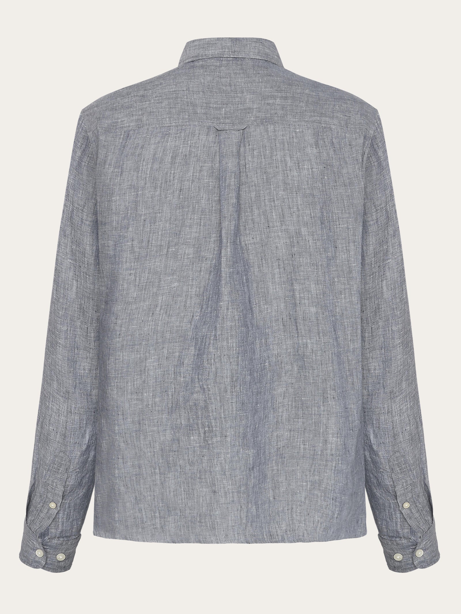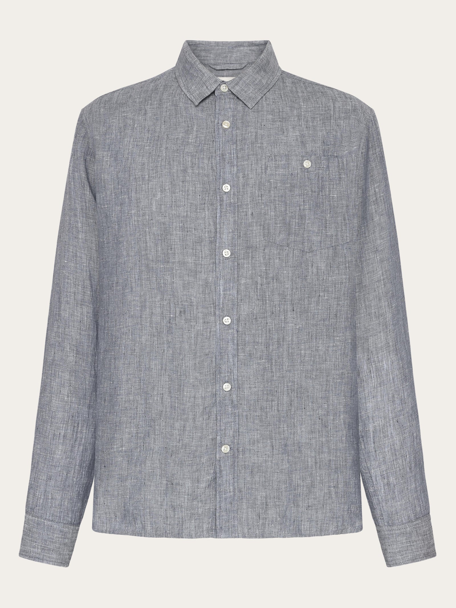 Choose a classic and timeless shirt that never goes out of style and you will want to wear it again and again. Our long-sleeved shirt is made from 100% organic linen. The quality feels incredibly soft, has a natural melange dye, and is the perfect addition to a comfortable and conscious wardrobe. Designed in a custom fit with a classic collar and finished with a button closure chest pocket and button-down closure.Style no. 1090011
