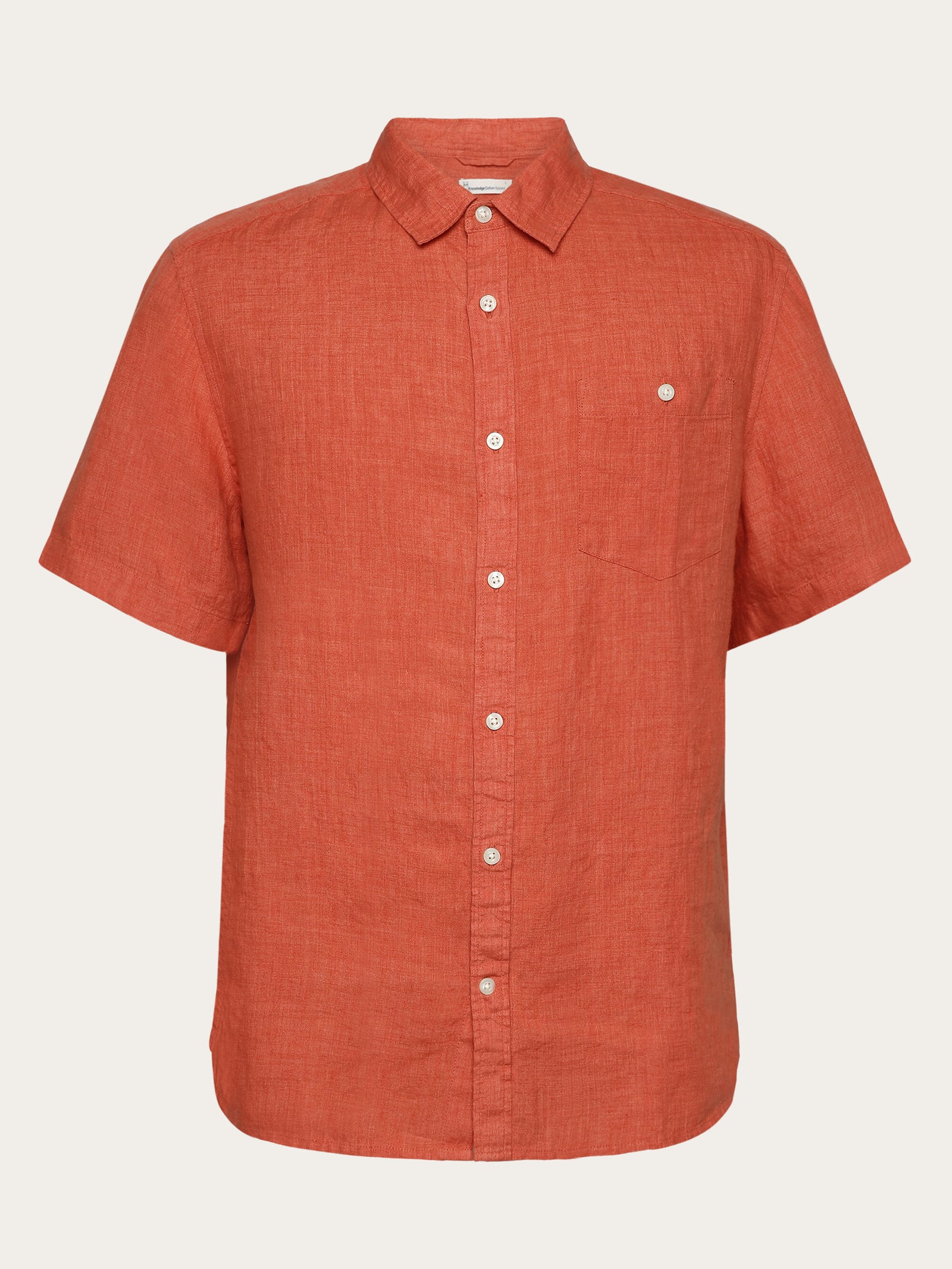 Choose a classic and timeless shirt that never goes out of style and you will want to wear it again and again. Our short-sleeved shirt is made from 100% organic linen. The quality feels incredibly soft, has a natural melange dye, and is the perfect addition to a comfortable and conscious wardrobe. Designed in a custom fit with a classic collar and finished with a button closure chest pocket and button-down closure.Style no. 1090064