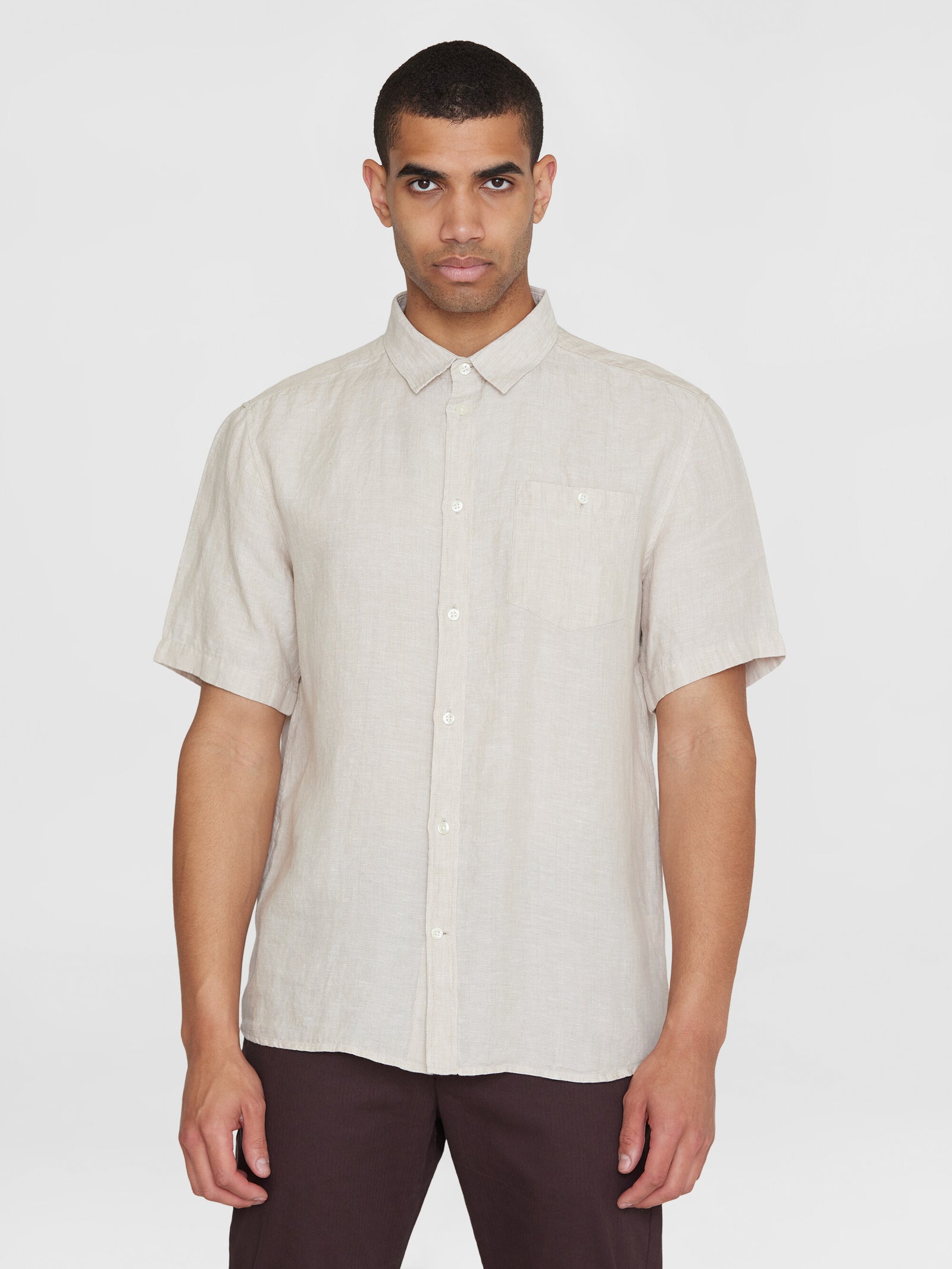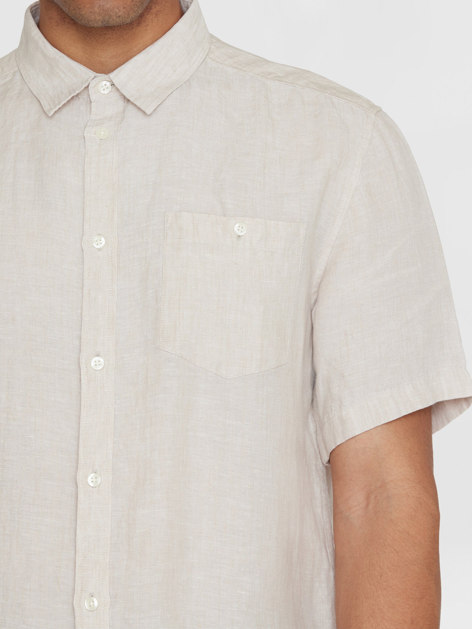 Choose a classic and timeless shirt that never goes out of style and you will want to wear it again and again. Our short-sleeved shirt is made from 100% organic linen. The quality feels incredibly soft, has a natural melange dye, and is the perfect addition to a comfortable and conscious wardrobe. Designed in a custom fit with a classic collar and finished with a button closure chest pocket and button-down closure.Style no. 1090064