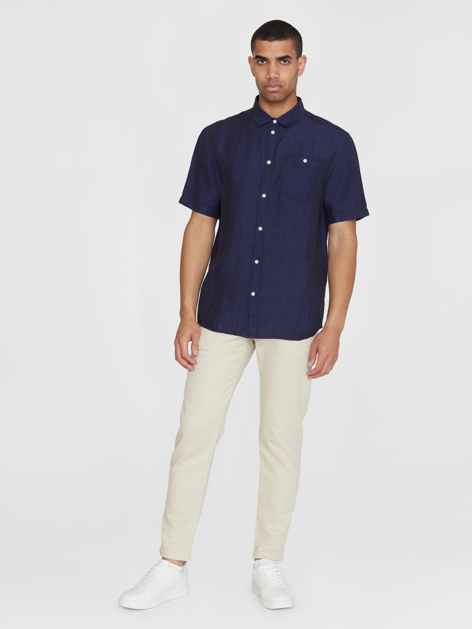 Choose a classic and timeless shirt that never goes out of style and you will want to wear it again and again. Our short-sleeved shirt is made from 100% organic linen. The quality feels incredibly soft, has a natural melange dye, and is the perfect addition to a comfortable and conscious wardrobe. Designed in a custom fit with a classic collar and finished with a button closure chest pocket and button-down closure.Style no. 1090064