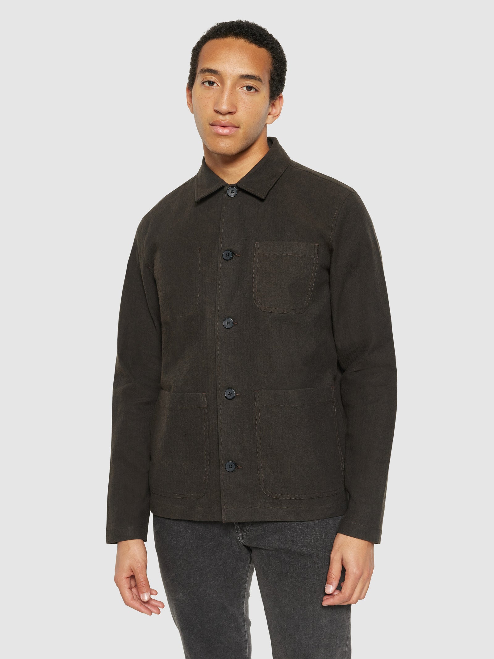 Let a timeless overshirt be your go-to for that extra layer on colder days. This overshirt is made from soft organic cotton flannel and a touch of stretch for easy movement. The fabric has a herringbone structure and a midweight look. Designed in a regular fit with a classic collar, chest and hip pockets, and button closure.Style no. 1190057