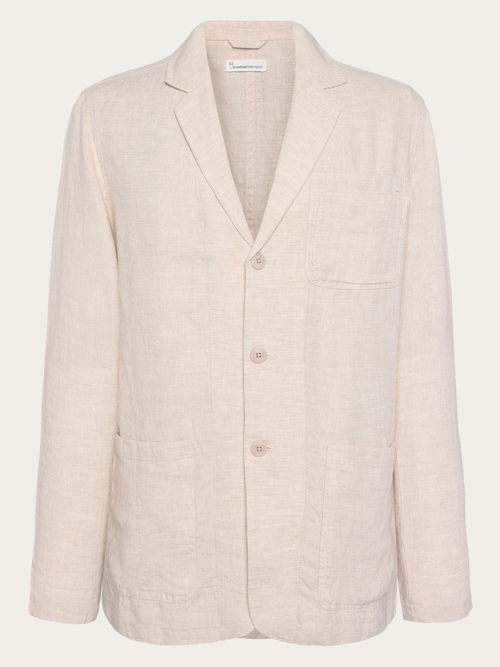 Elevate your wardrobe with this tailored fit blazer crafted from 100% organic linen. Designed for versatility and comfort, its lightweight fabric offers breathability while maintaining a refined silhouette. The unstructured design and classic details make it perfect for casual and semi-formal occasions. Featuring three-button closure and functional patch pockets, this blazer pairs effortlessly with chinos or jeans for a polished yet relaxed look. A timeless addition to any modern wardrobe.Style no. 1190070