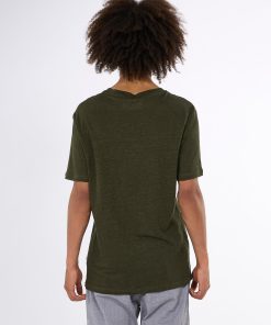 Choose a soft, responsibly made T-shirt for everyday purposes. The linen T-shirt has a relaxed fit with slightly dropped shoulders and a rounded neckline. Made from 100% organic linen, the quality feels incredibly soft, has a natural melange dye, and is the perfect addition to a comfortable and conscious wardrobe.Style no. 1010009