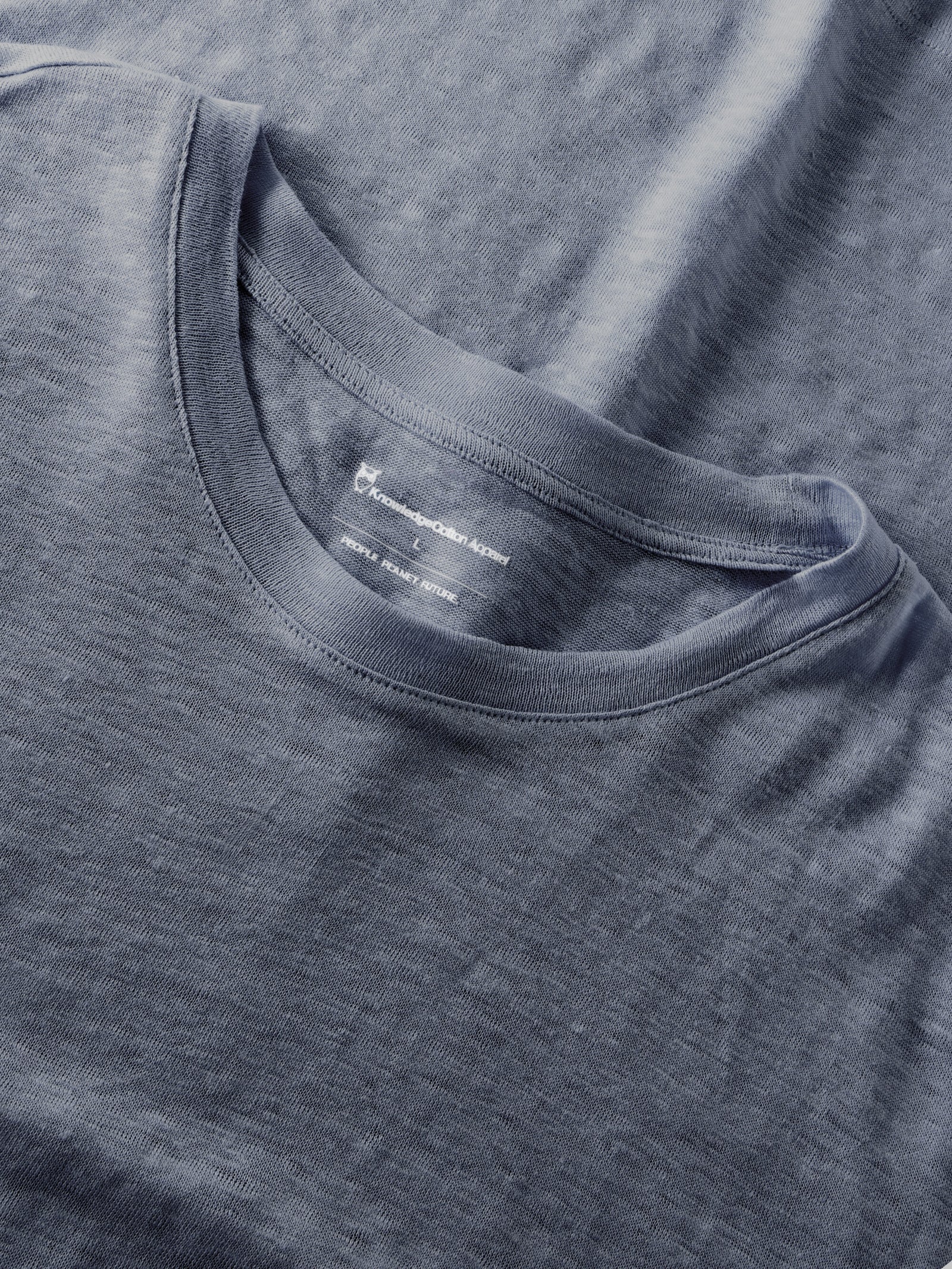 Choose a soft, responsibly made T-shirt for everyday purposes. The linen T-shirt has a relaxed fit with slightly dropped shoulders and a rounded neckline. Made from 100% organic linen, the quality feels incredibly soft, has a natural melange dye, and is the perfect addition to a comfortable and conscious wardrobe.Style no. 1010009