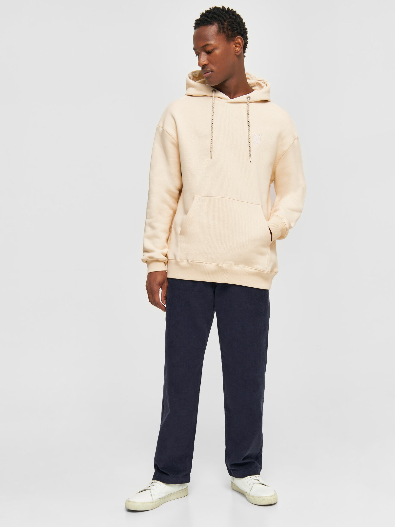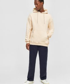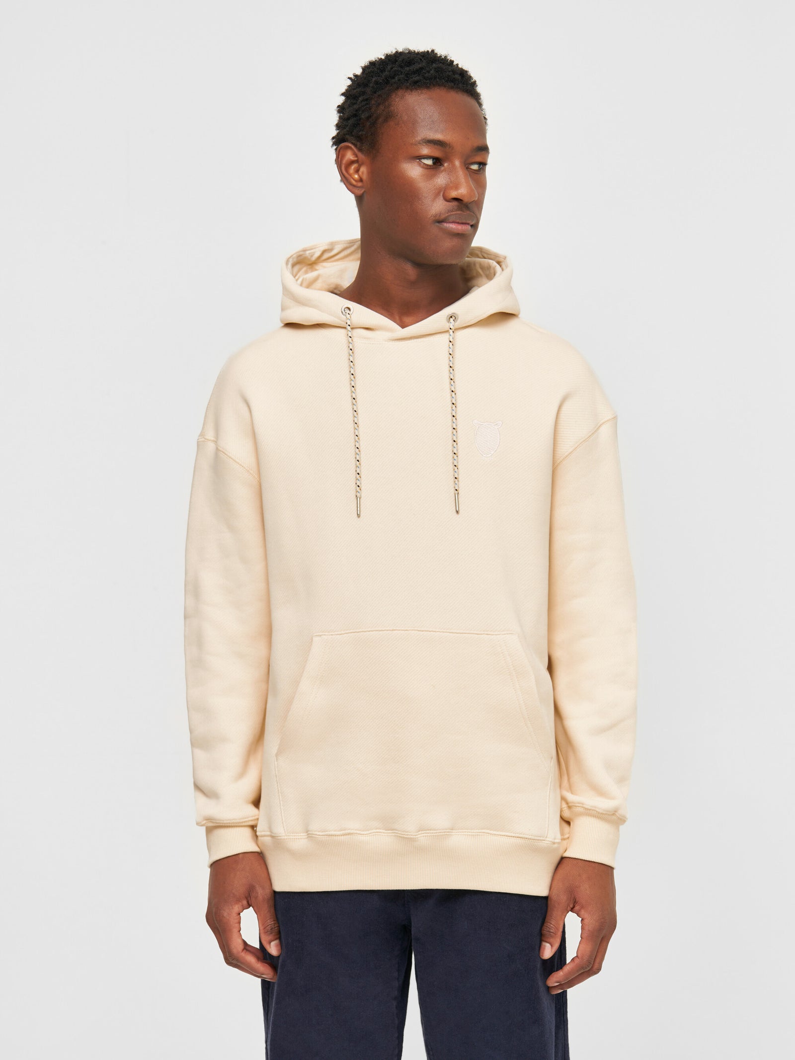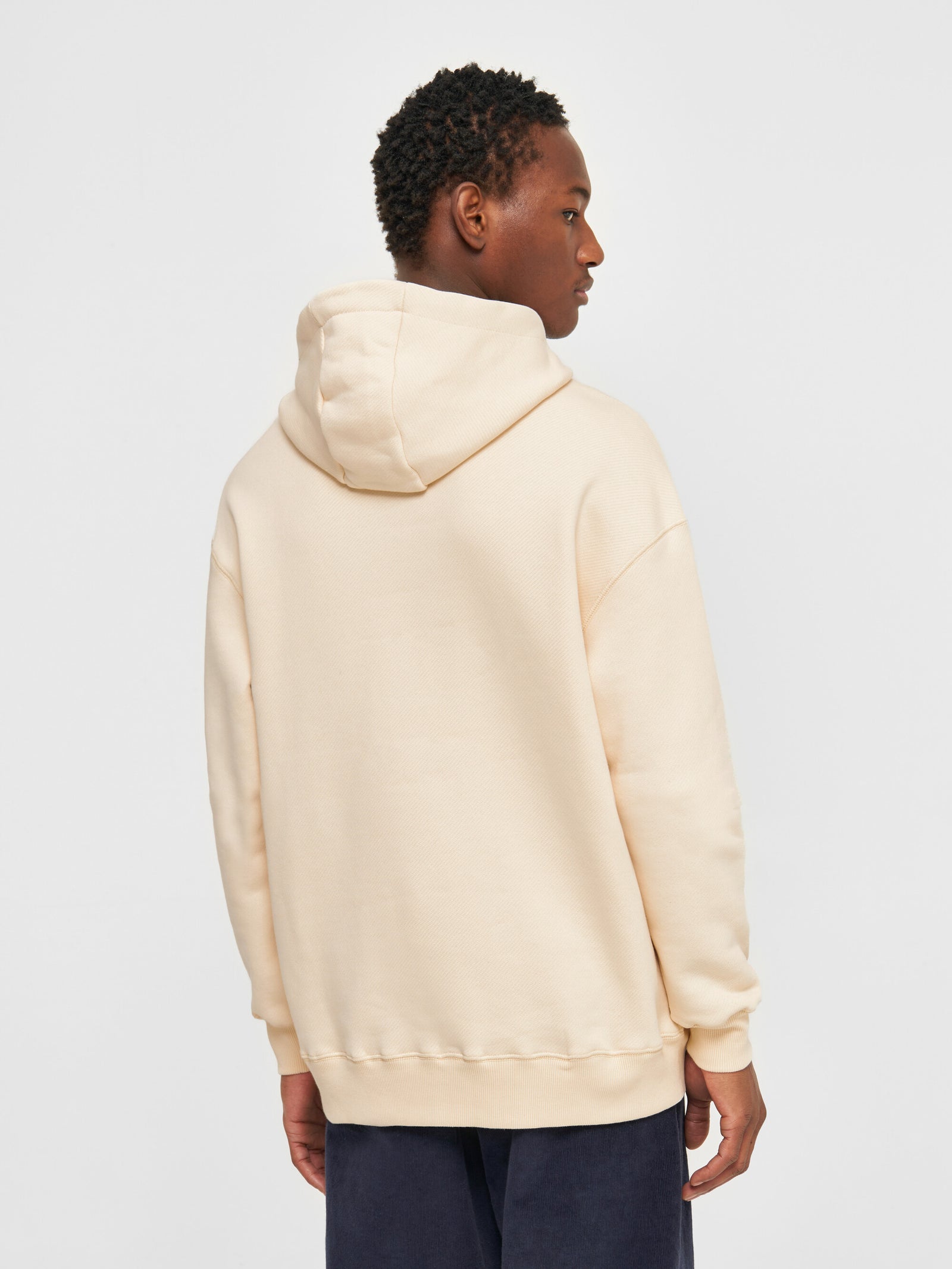 KnowledgeCotton Apparel Men’s Loose Fit Hood Kangaroo Pocket Sweat With Embroidery At Chest | Buttercream