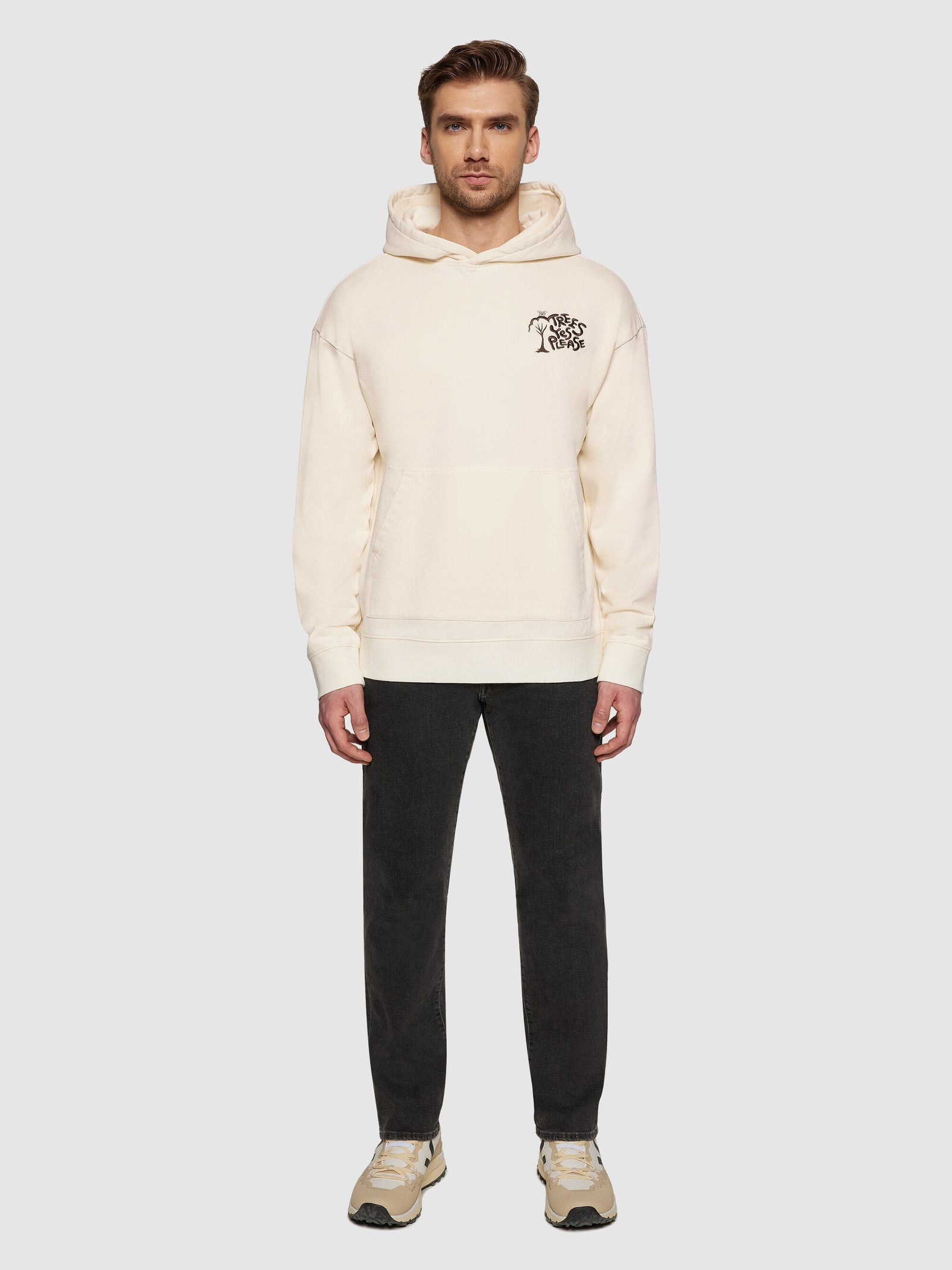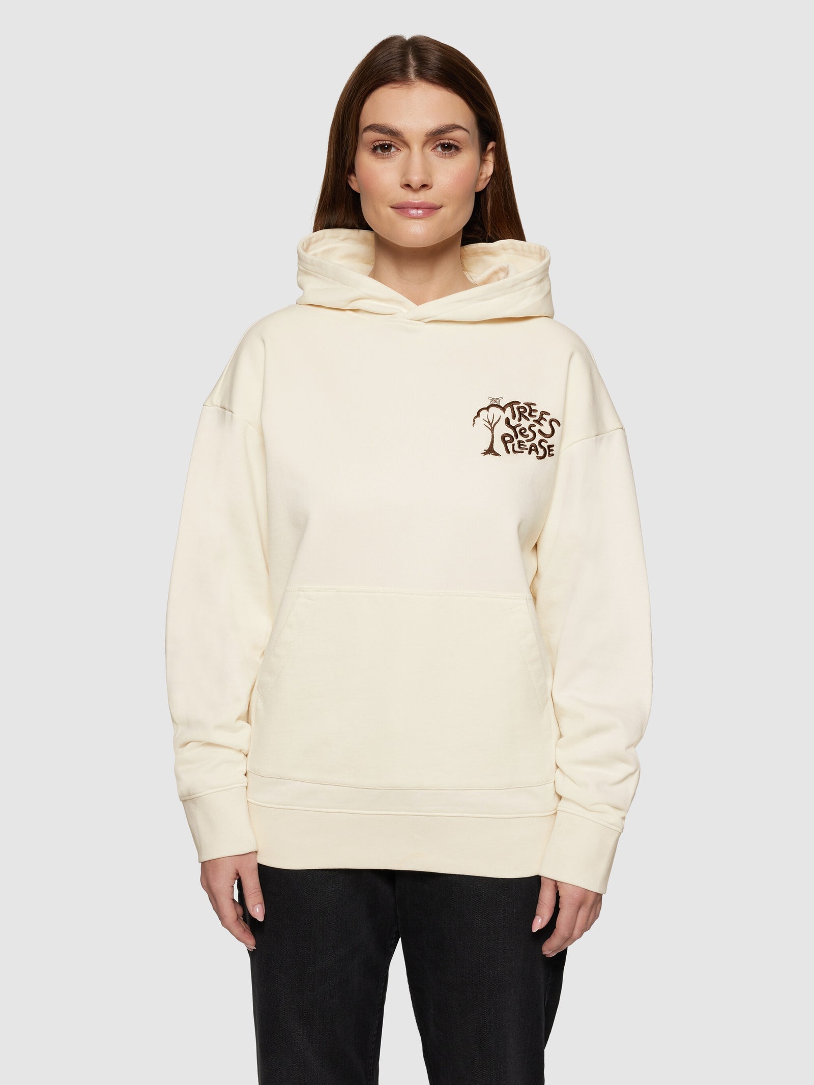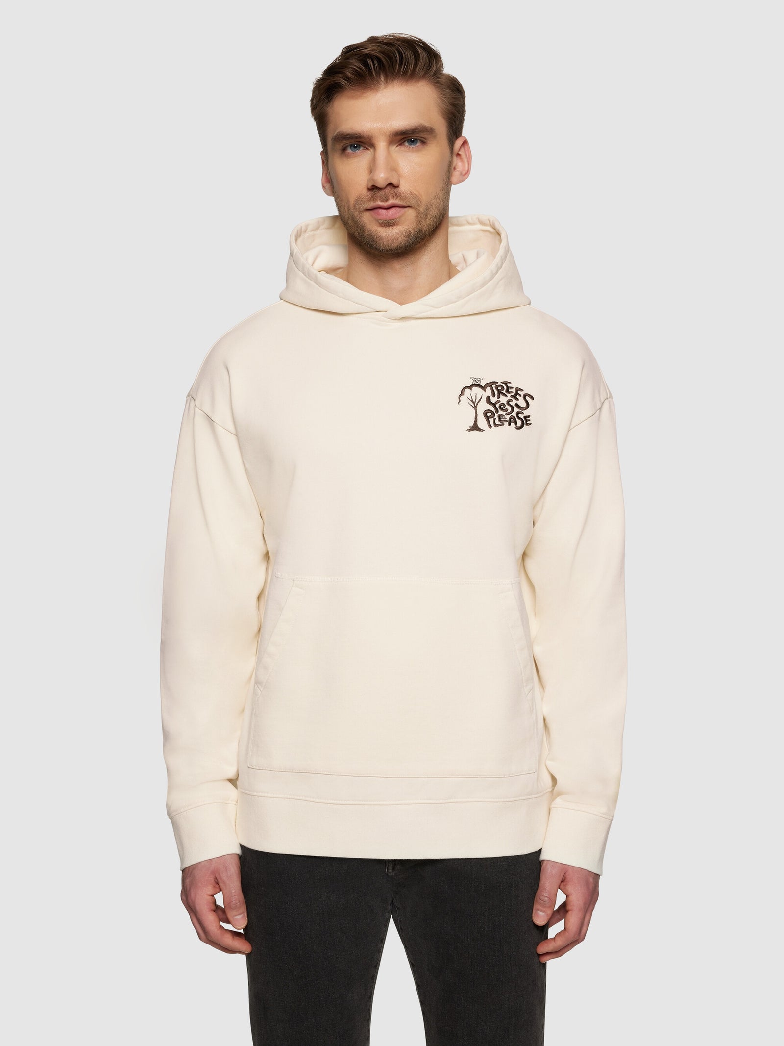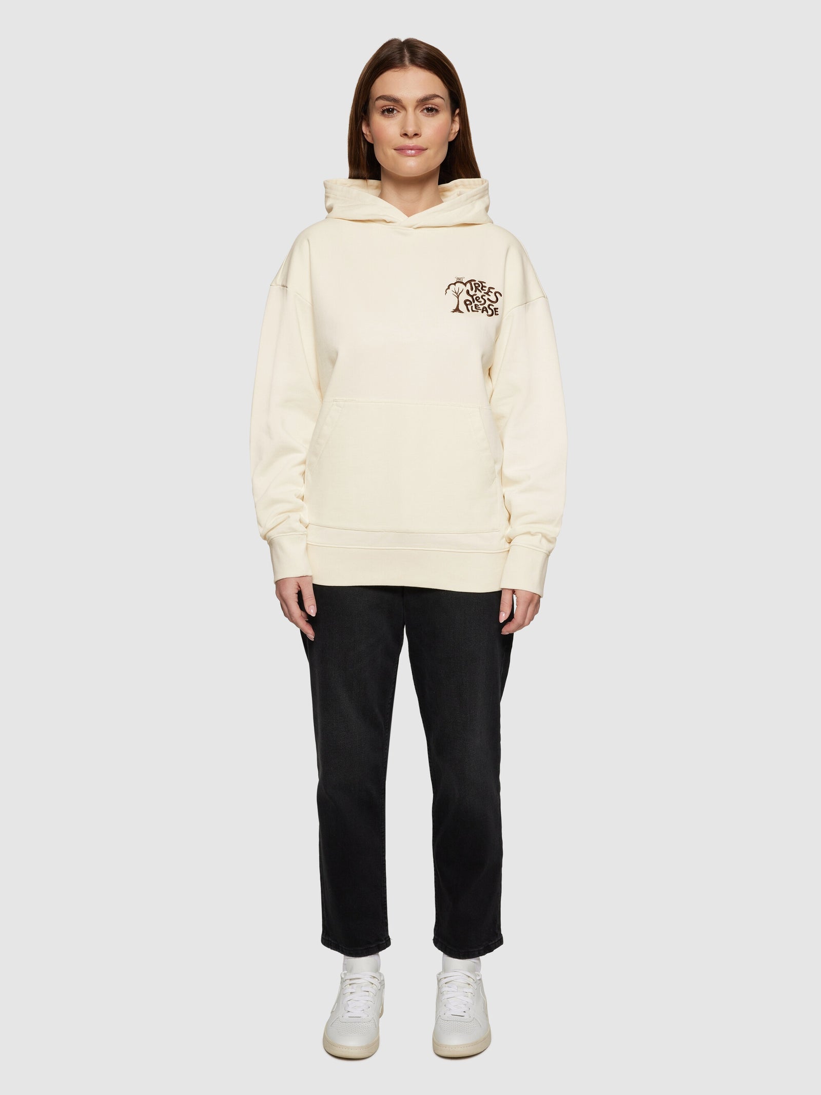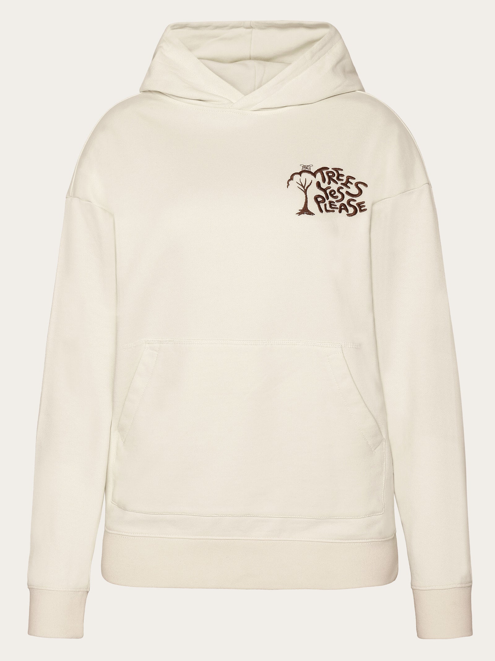 Do the right thing and bring true comfort into your wardrobe this season. A timeless and comfortable sweatshirt is a must, and our hooded sweat is made from soft 100% organic cotton in a loose, oversized fit. It is designed with an embroidered owl tree print.