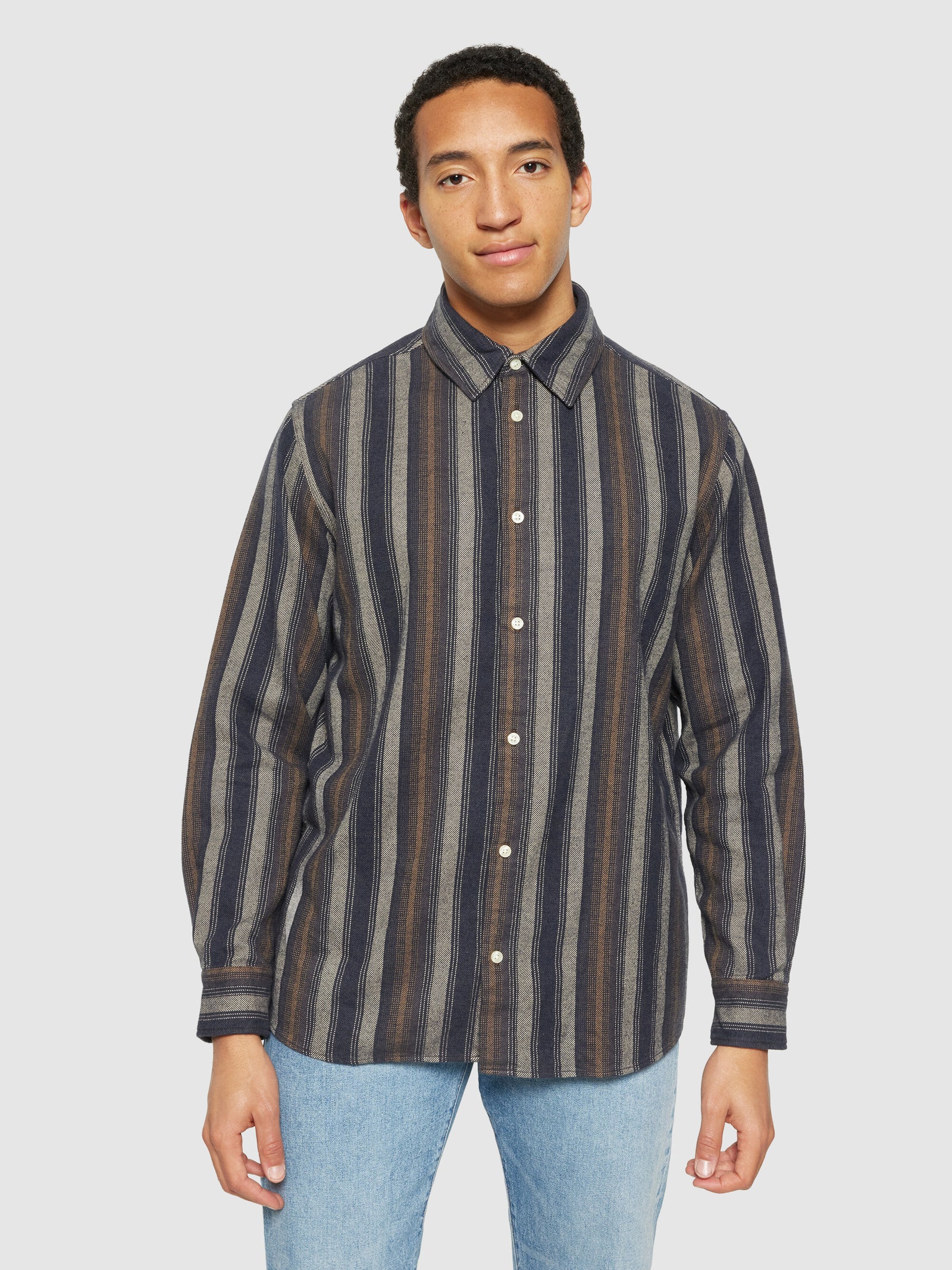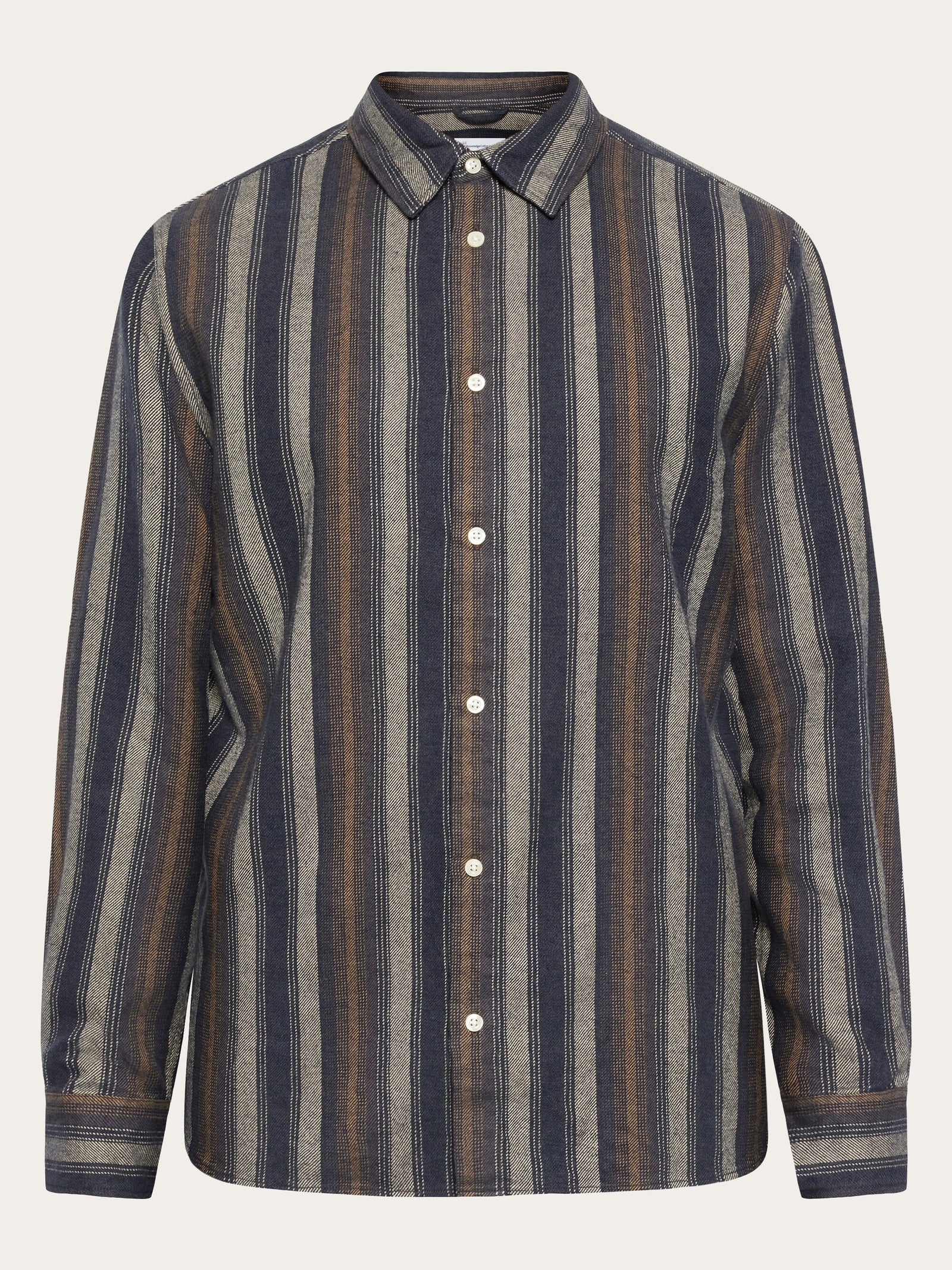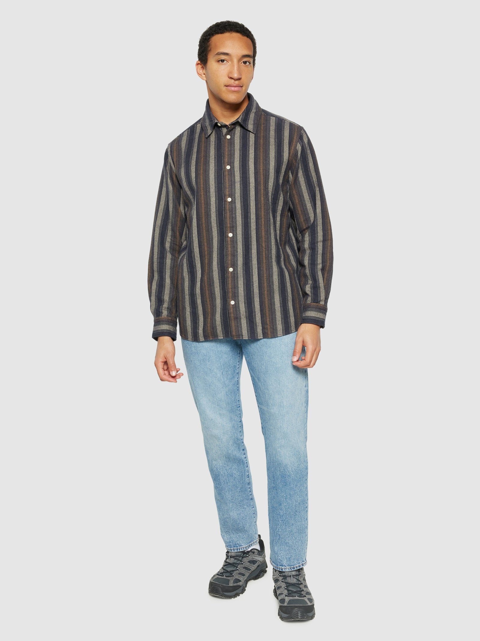 Fill your wardrobe with timeless styles that let you embrace whatever comes your way. Our flannel shirt is made of 100% organic cotton in a heavy-weight quality. The shirt has a natural fabric structure that gives your outfit a classic look. Designed in a loose fit with vertical stripes, a classic collar, and button-down closure.Style no. 1090118