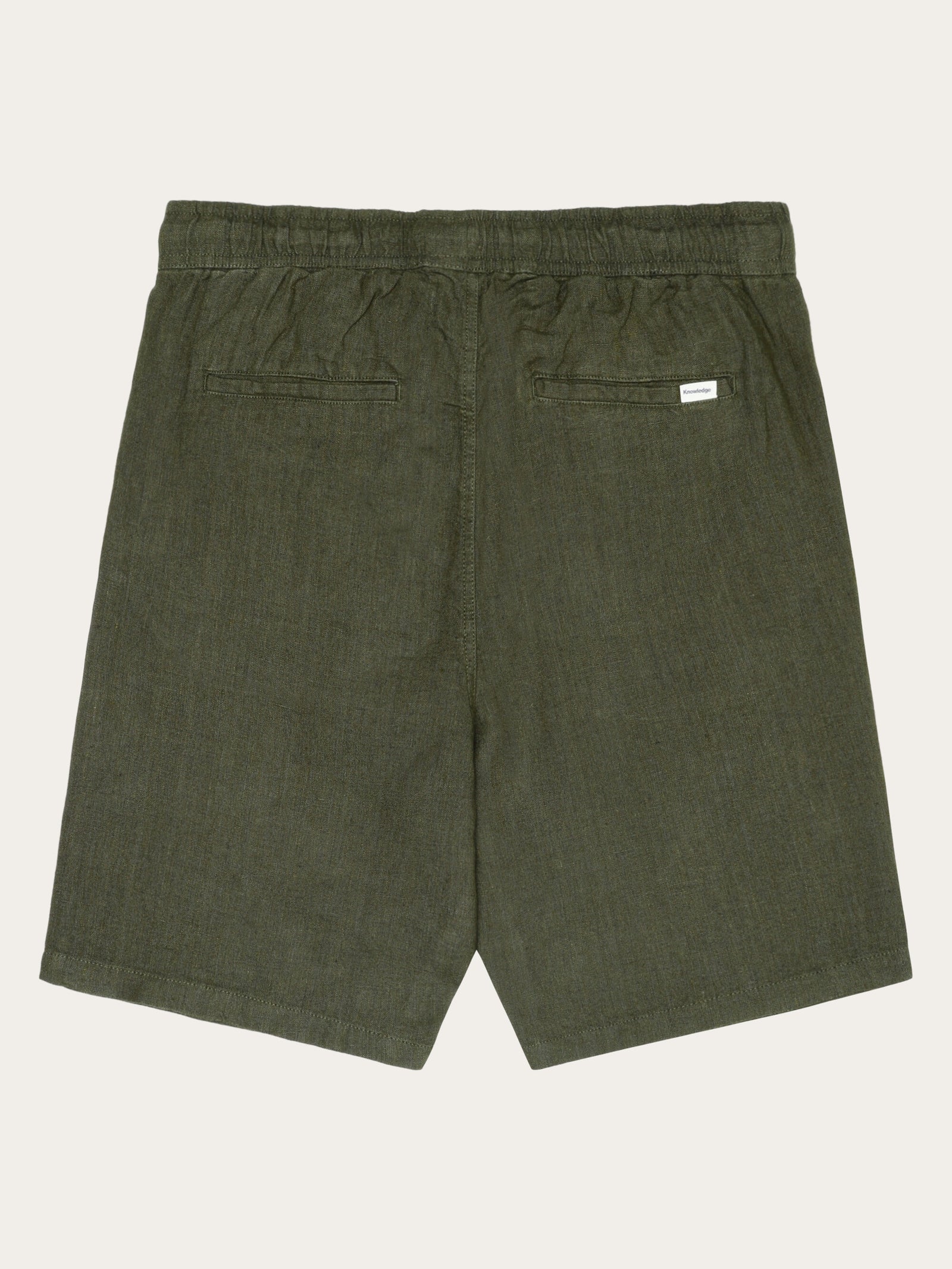 Choose a pair of soft and responsibly made shorts for warmer days. Our loose linen shorts are designed in a straight fit with an elastic waistband, adjustable cords, and button closure. Made from 100% organic linen, the quality feels incredibly soft, lightweight, and airy to wear. The shorts have a natural melange dye and are finished with slanted front pockets and discrete back pockets.Style no. 1050001