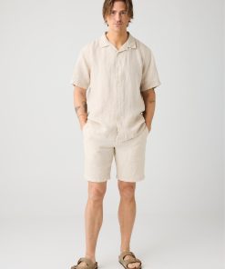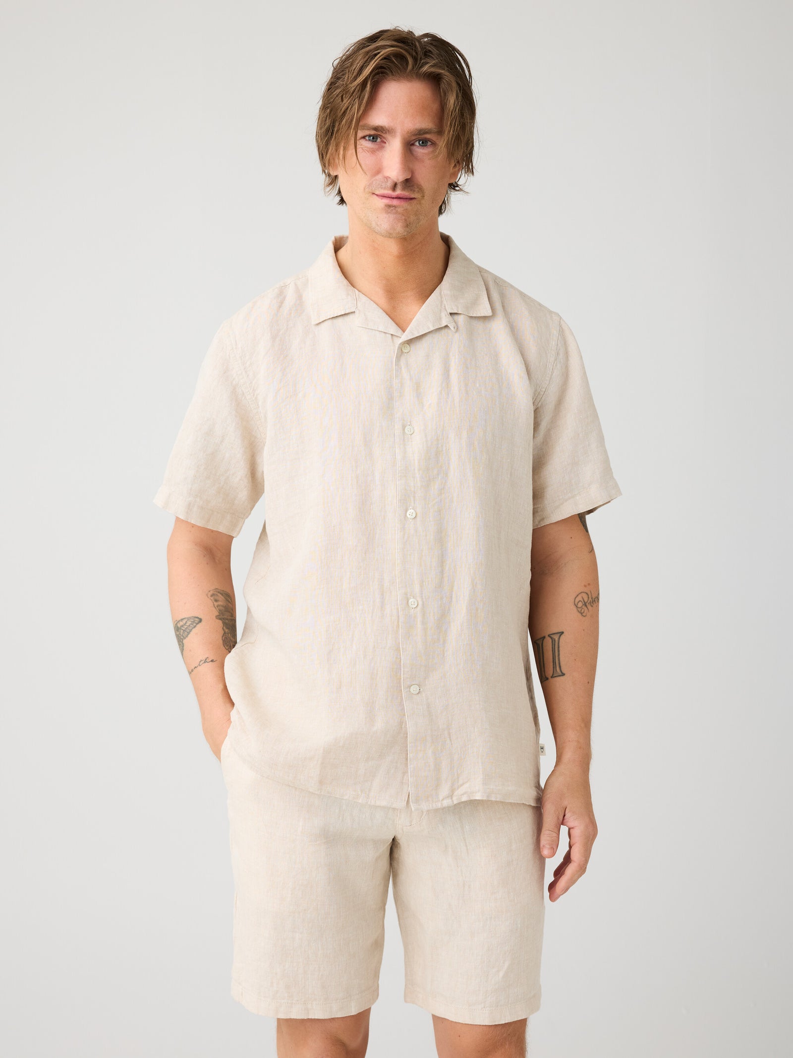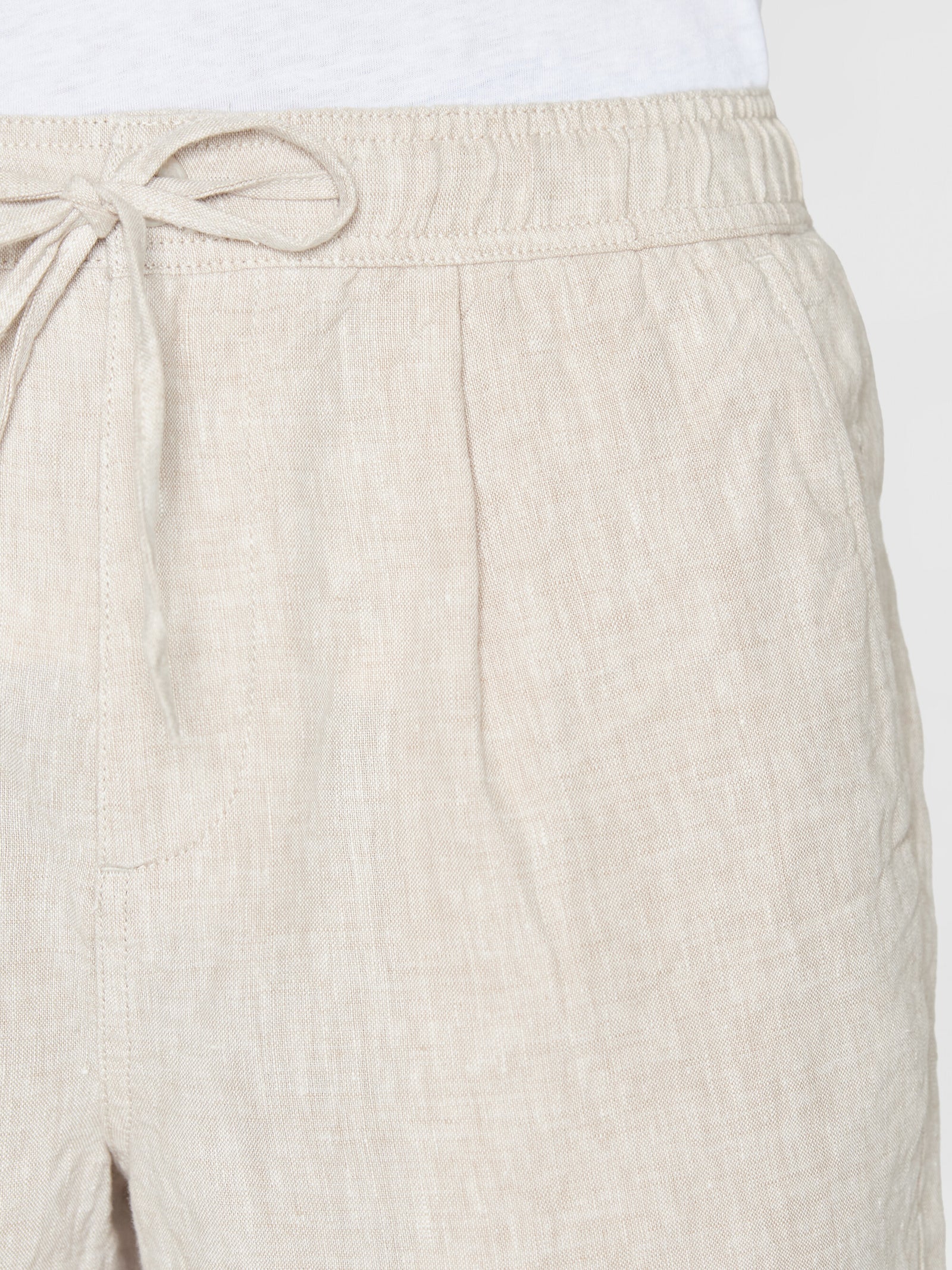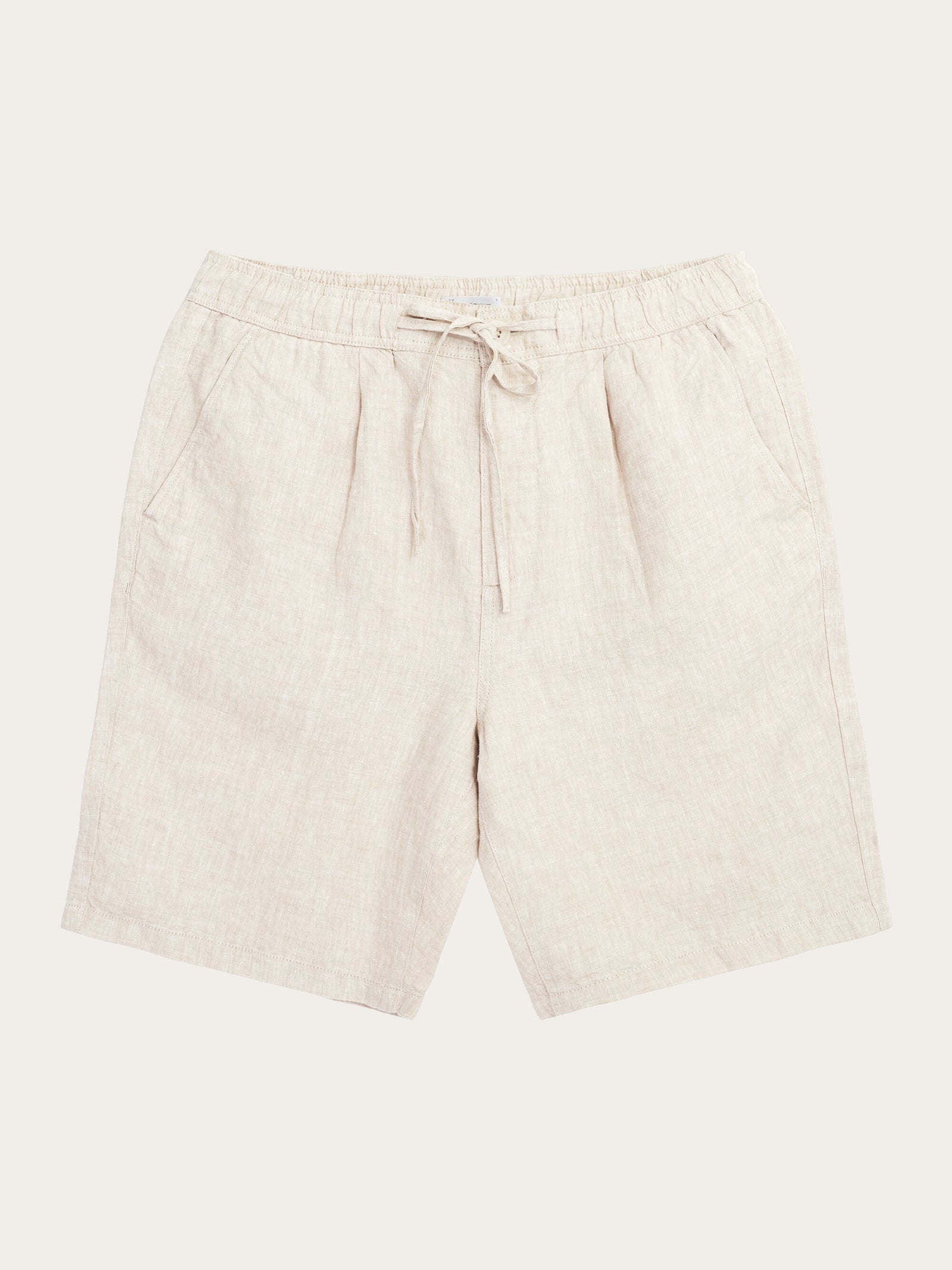 Choose a pair of soft and responsibly made shorts for warmer days. Our loose linen shorts are designed in a straight fit with an elastic waistband, adjustable cords, and button closure. Made from 100% organic linen, the quality feels incredibly soft, lightweight, and airy to wear. The shorts have a natural melange dye and are finished with slanted front pockets and discrete back pockets.Style no. 1050001