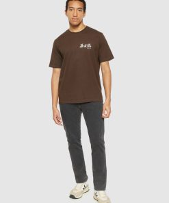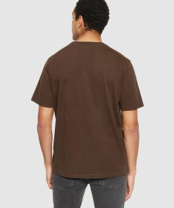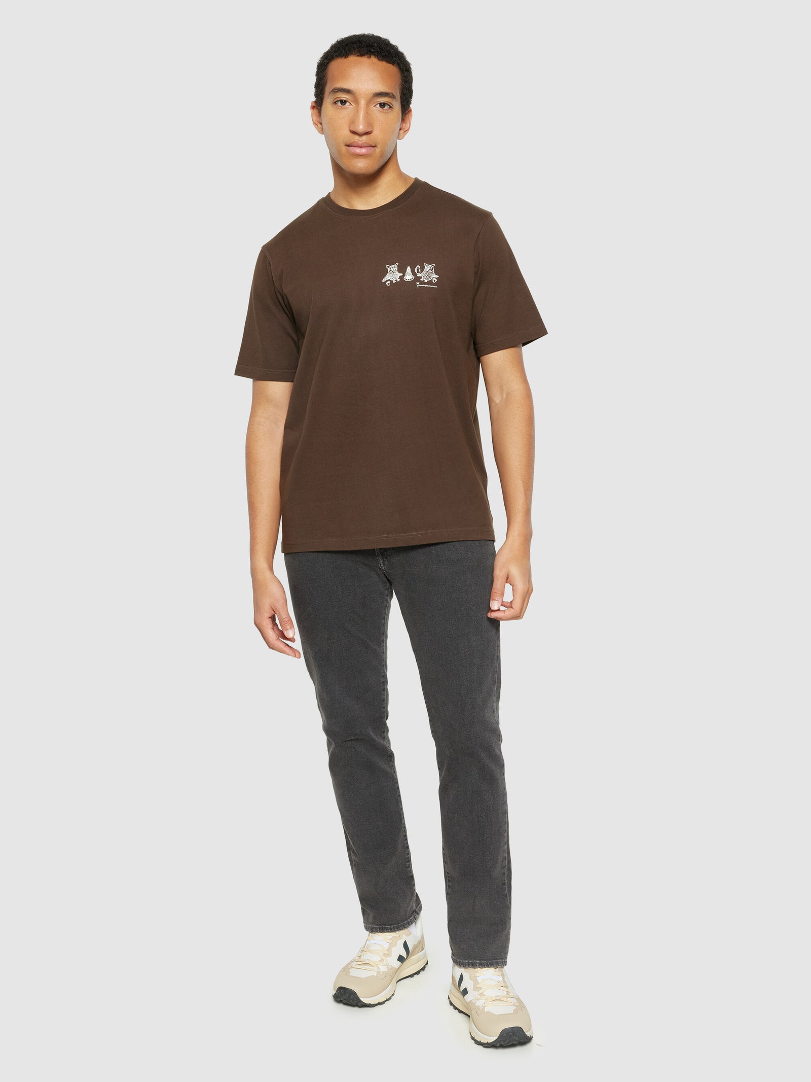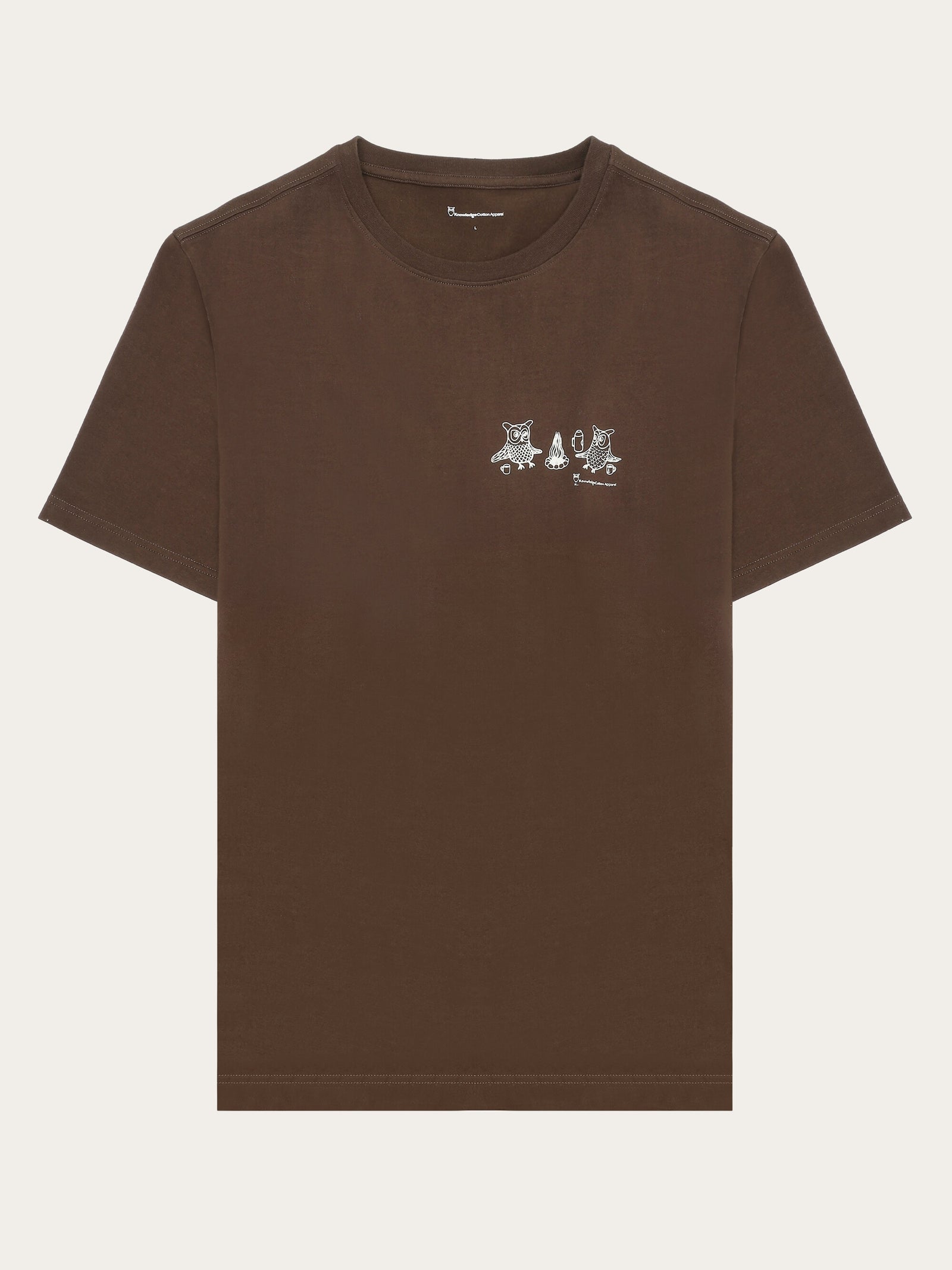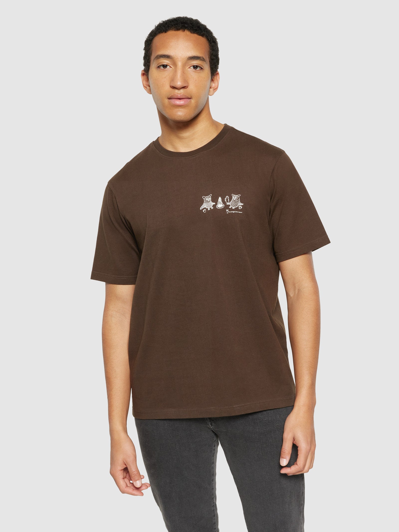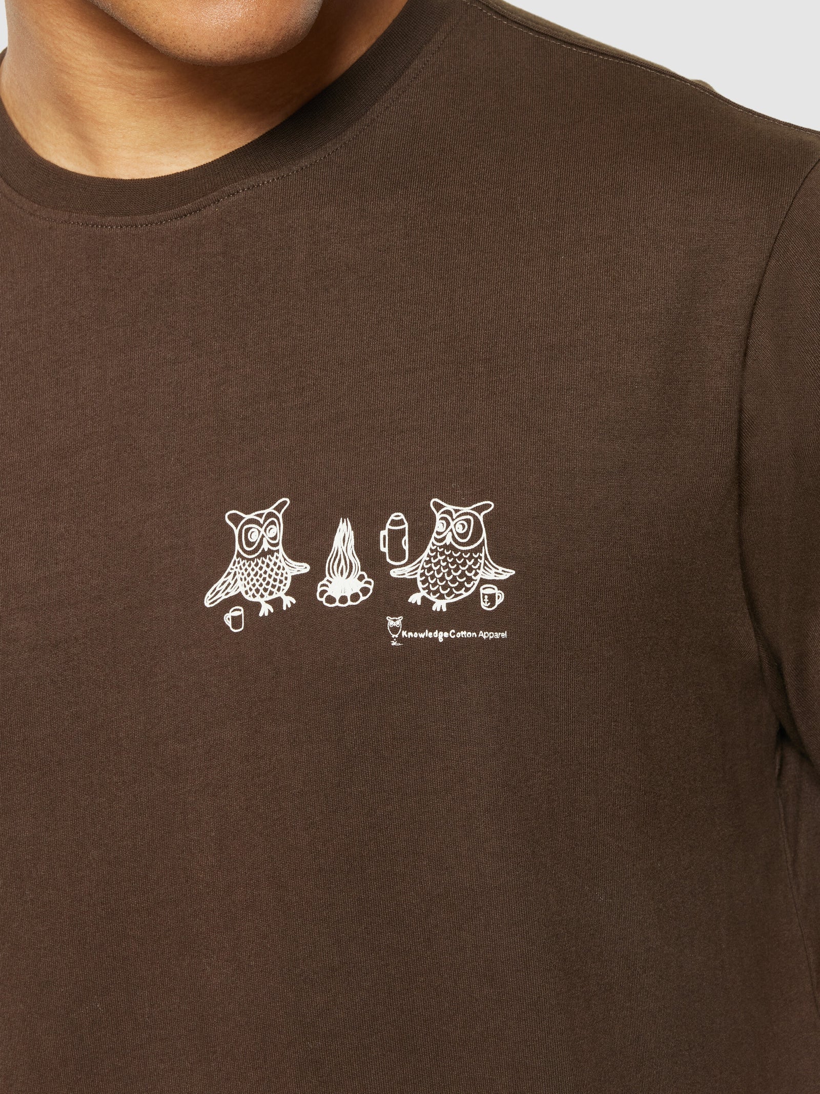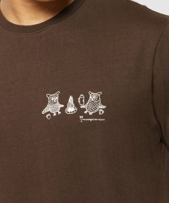 KnowledgeCotton Apparel Men’s Regular Fit Owl Trip Chest Print T-shirt | Demitasse (brown)