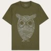 KnowledgeCotton Apparel Men’s Regular Fit Owl Trip Chest Print T-shirt | Demitasse (brown)