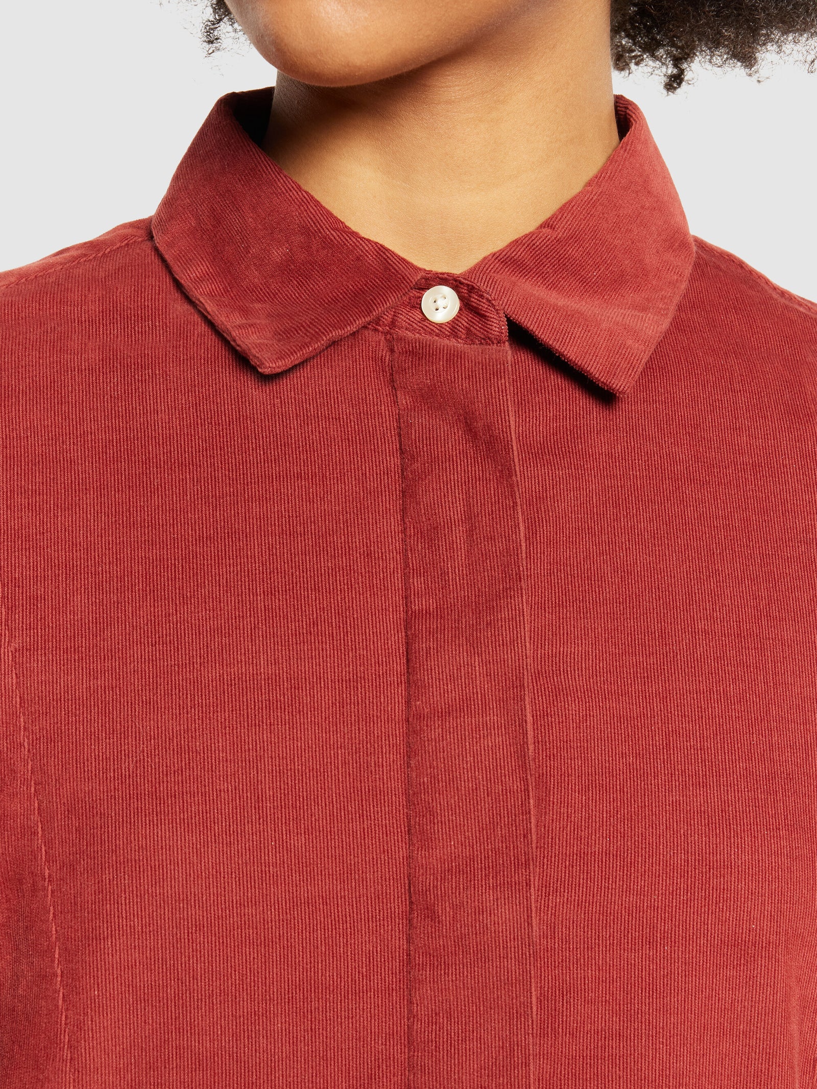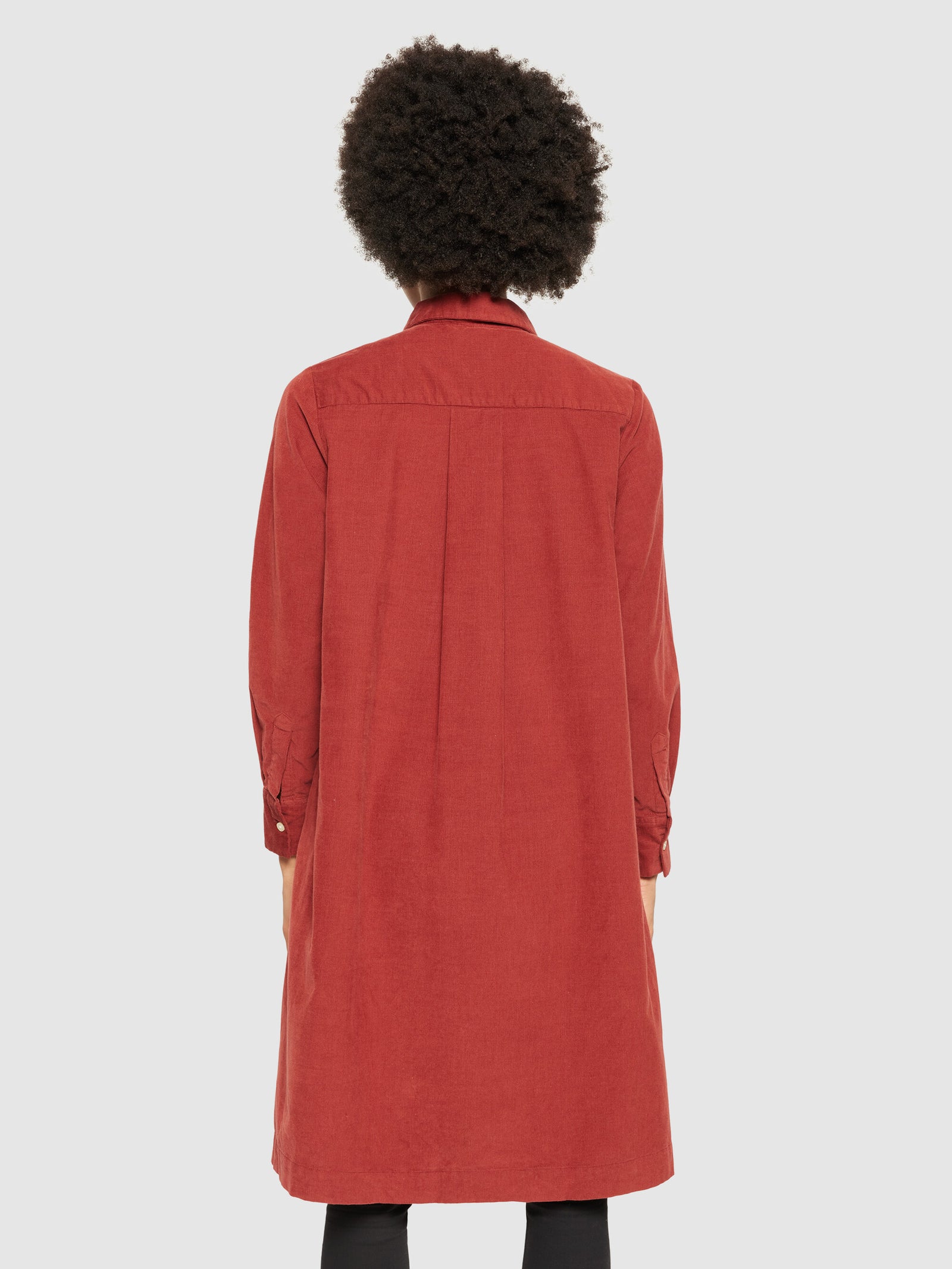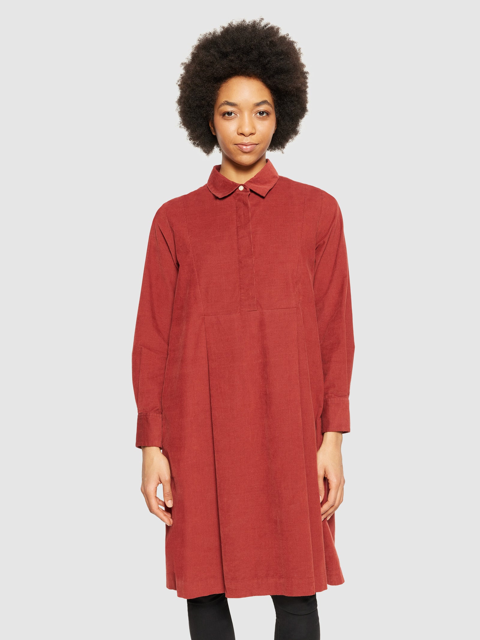 Bring timeless pieces marked by trans-seasonal features to your wardrobe. Our shirt dress is made from 100% organic cotton baby corduroy that lightly frames a feminine silhouette. The dress has a mid-length A-shaped fit and is designed to be worn during any season. It is finished with a classic collar and button closure.Style no. 2200062