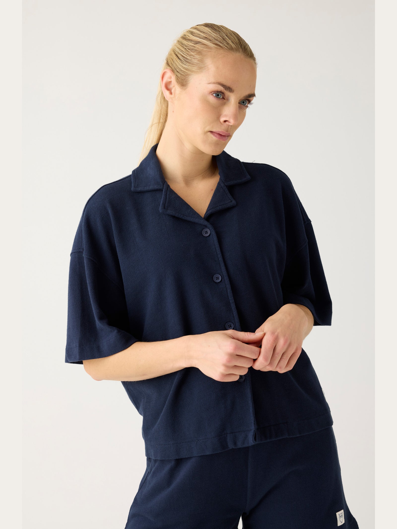 This short-sleeve shirt in a relaxed fit offers a versatile, laid-back style perfect for warm-weather days. Made from 100% organic cotton, its bouclé structure adds a unique texture while maintaining a lightweight, breathable feel. Featuring a classic button-down front and a practical chest pocket, it combines functionality with understated elegance. Ideal for casual or semi-formal settings, this shirt pairs effortlessly with your favorite trousers or shorts for a timeless, comfortable look.Style no. 2090071