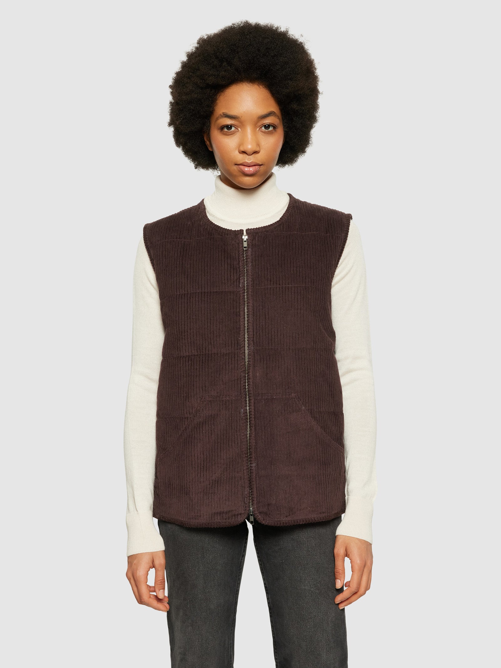 Layer up in cozy pieces made for comfort. Our corduroy zip vest is made in a soft blend of organic cotton and recycled polyester that will keep you warm and ready to embrace whatever comes your way. The vest is designed in a regular fit with front pockets and a two-way zip closure.Style no. 2100010