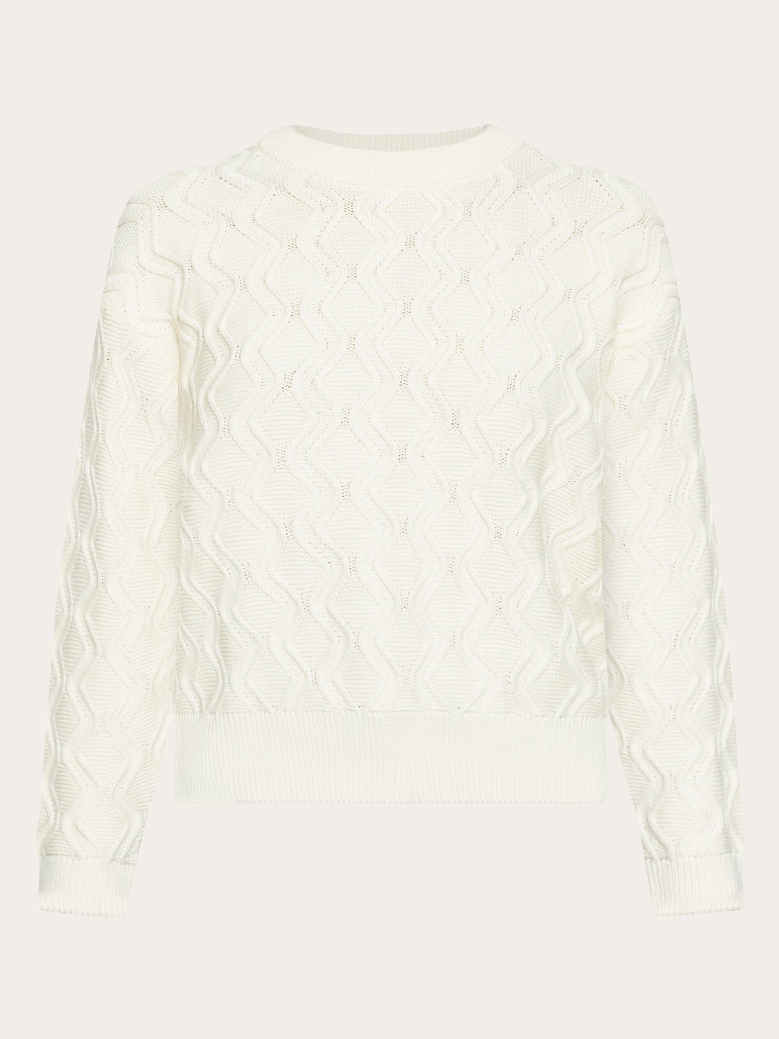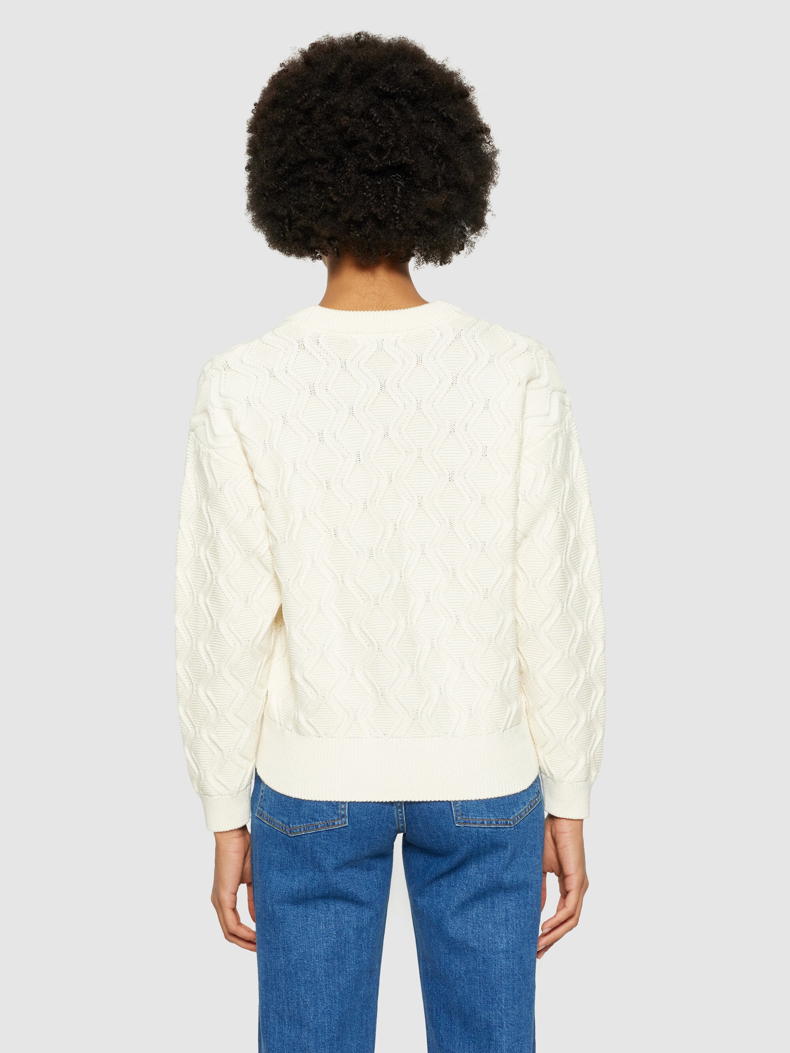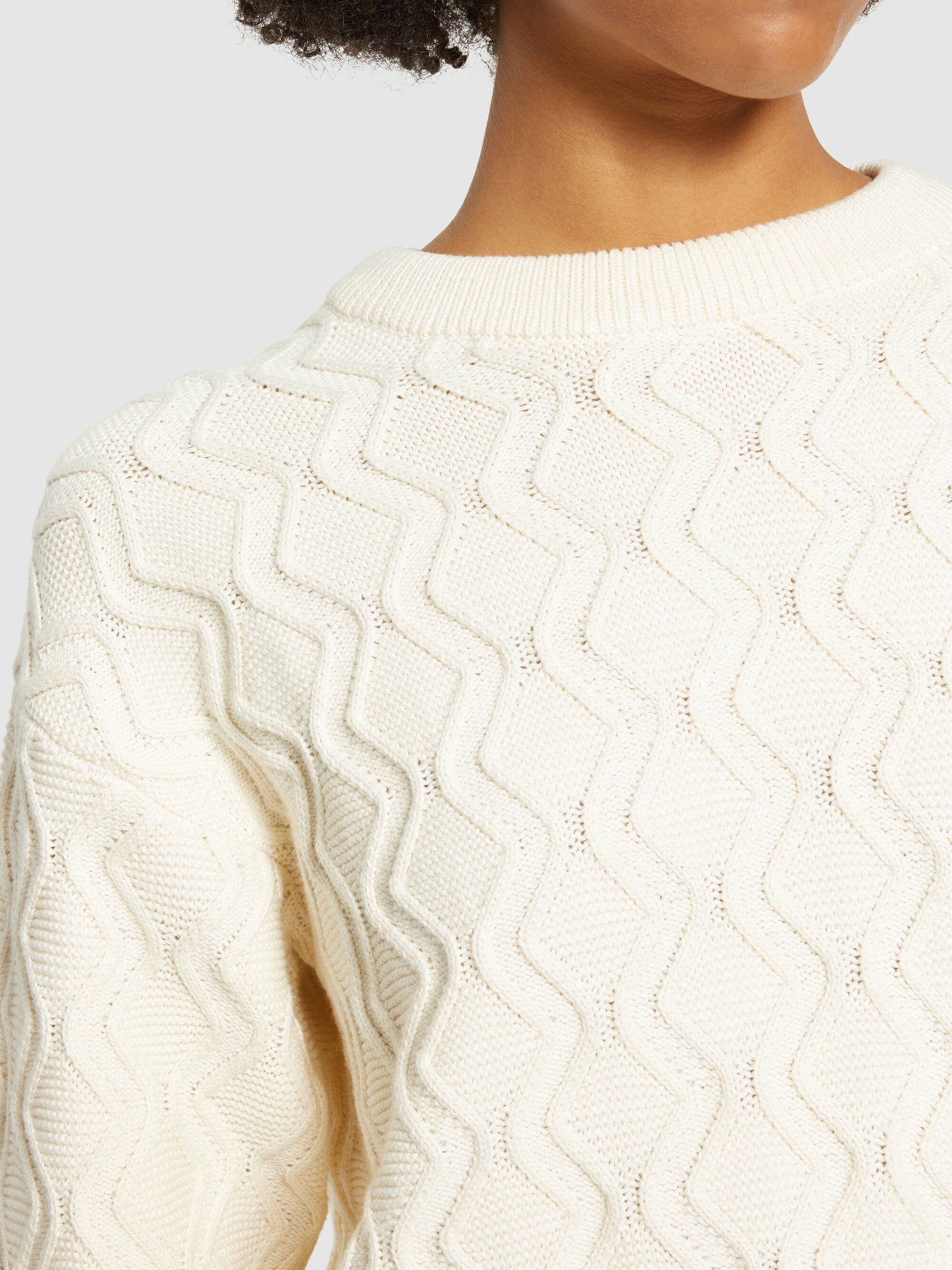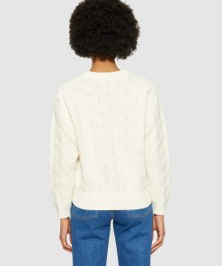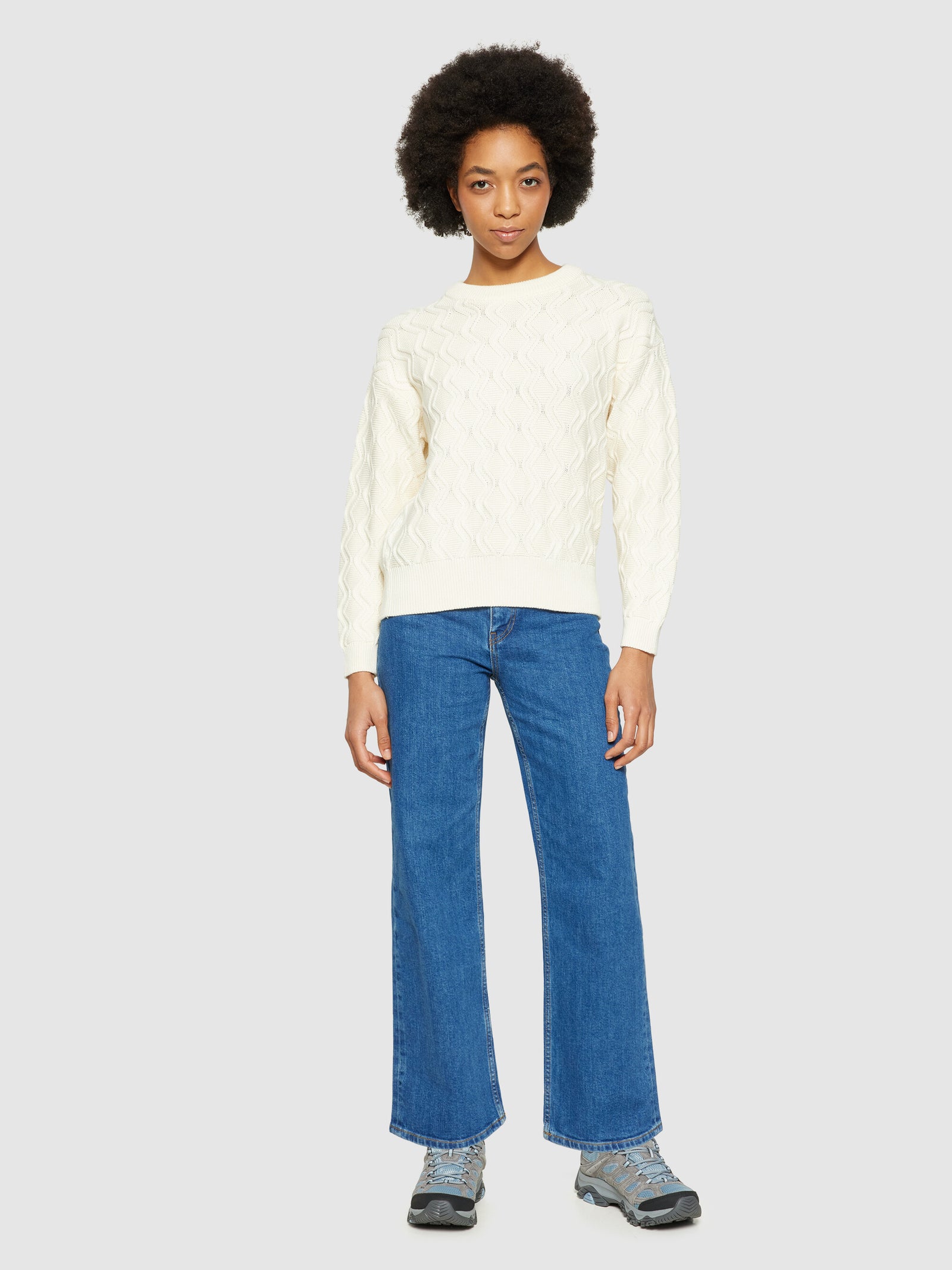 Layer up in cozy pieces made for comfort. Using only soft 100% organic cotton, this crewneck is of a long-lasting quality that will keep you warm and ready to embrace whatever comes your way. The crewneck is designed in a regular fit with a feminine cable knit structure.