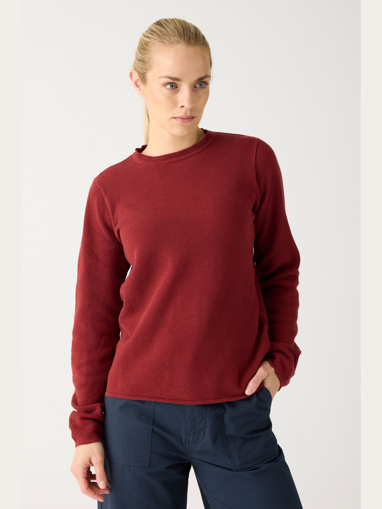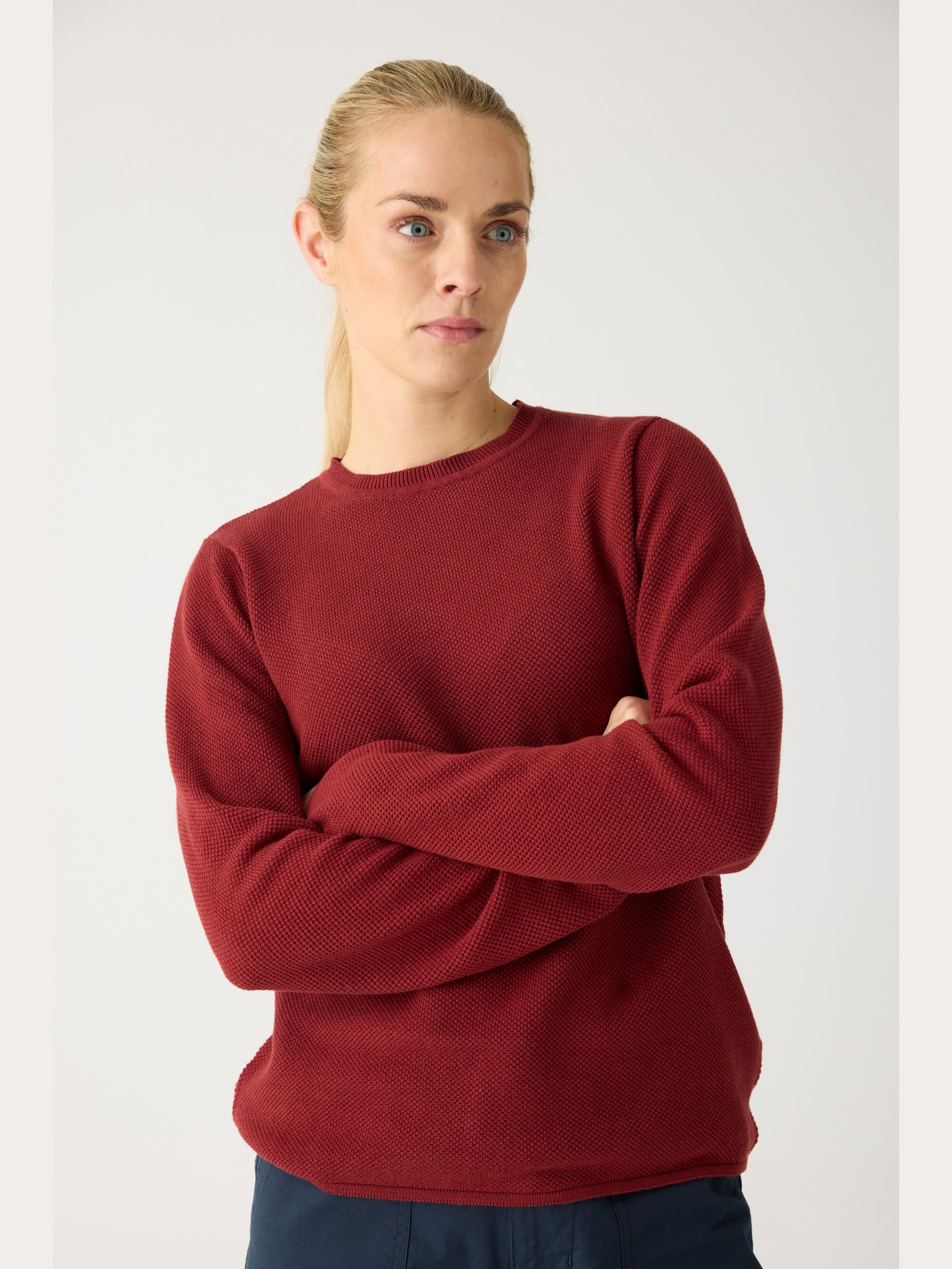 Layer up in cozy pieces made for comfort. Using only soft 100% organic cotton, this crewneck is of a long-lasting quality that will keep you warm and ready to embrace whatever comes your way. The crewneck is designed in a regular fit with a subtle micro bubble knit structure.