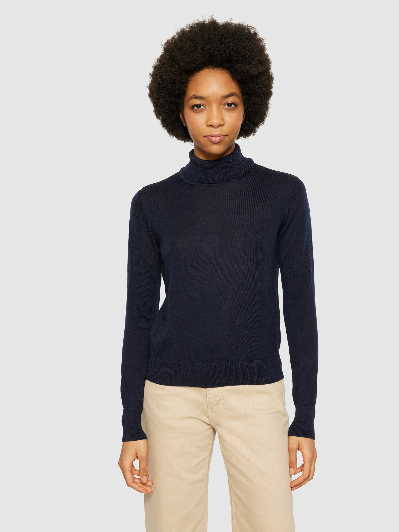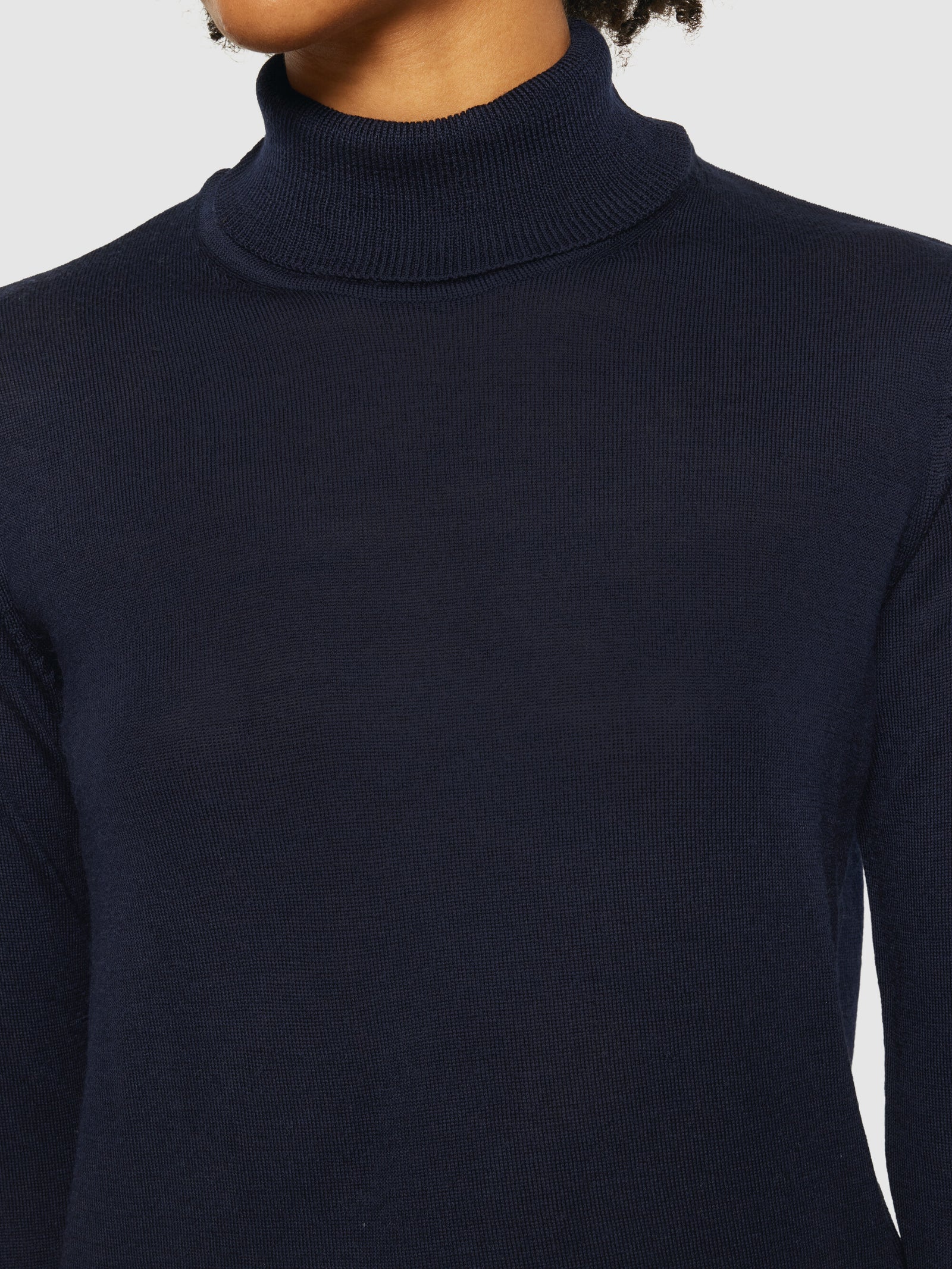 Layer up in cozy pieces designed for comfort this season. Using only the softest merino wool, our knitted roll neck will keep you warm and ready to embrace whatever comes your way. The roll neck has a fine-knitted structure and is designed in a regular fit.Style no. 2080062