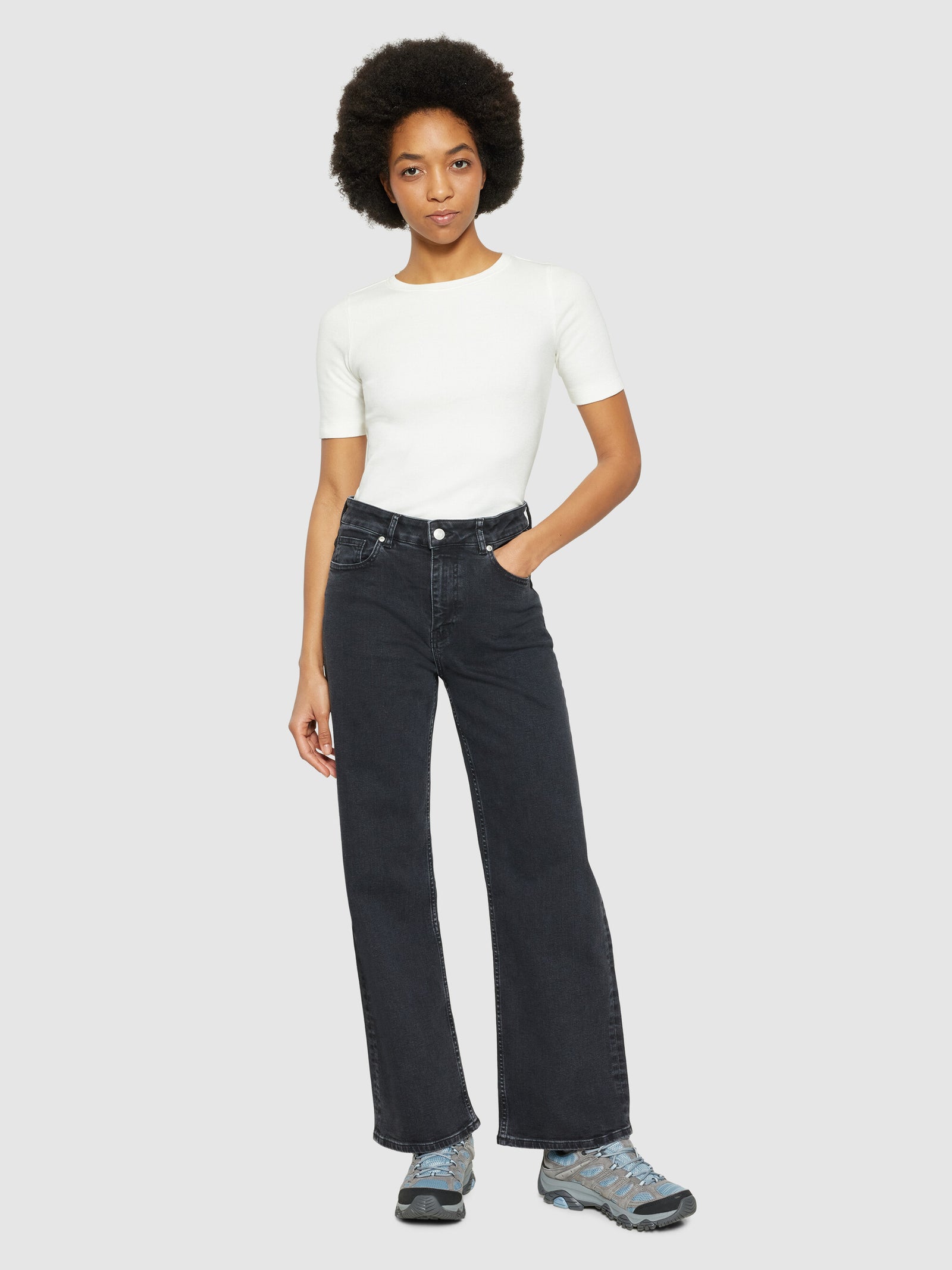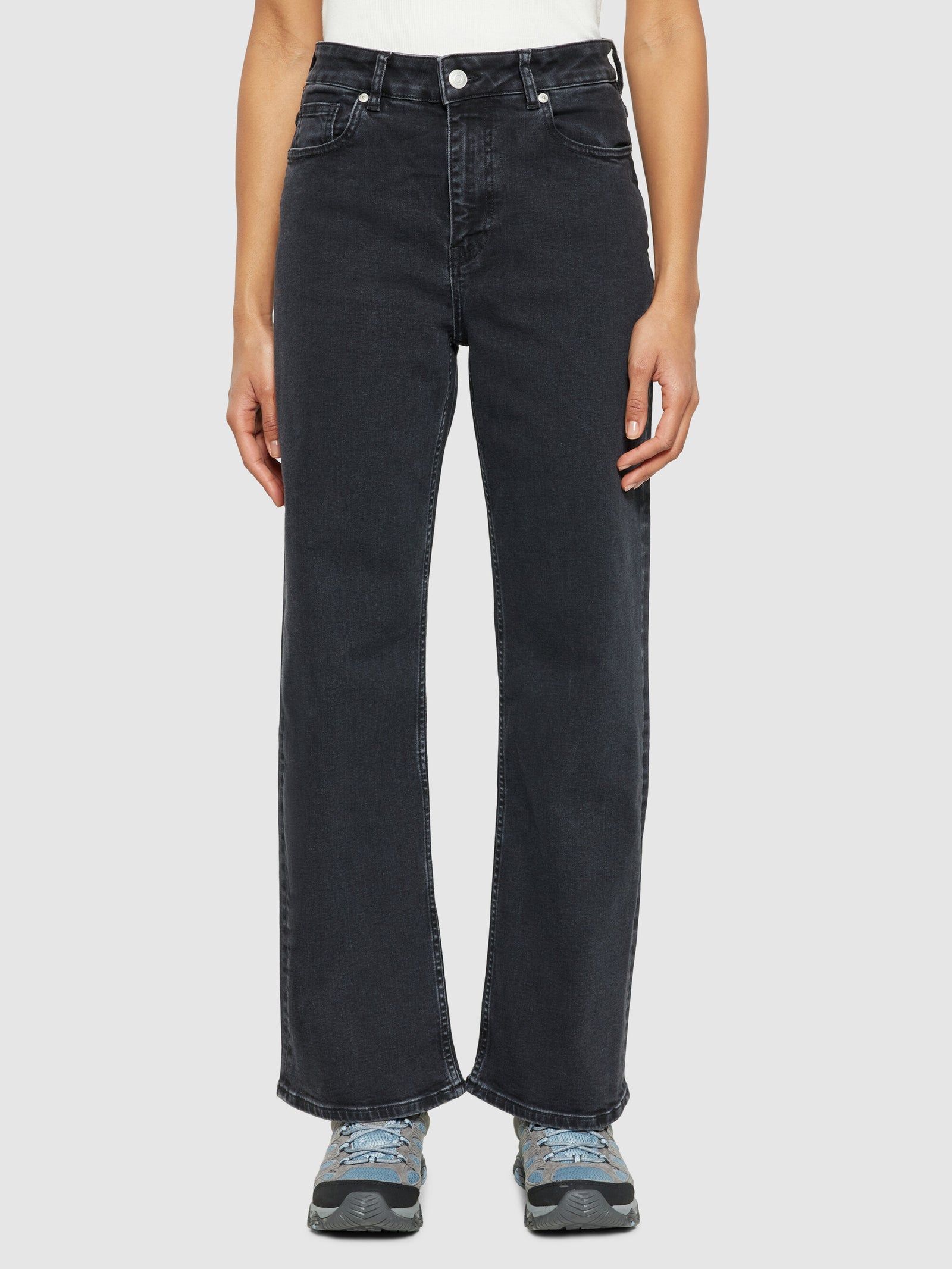 Add timeless pieces marked by trans-seasonal features to your wardrobe, and get ready to embrace whatever comes your way. Our rinsed black GALE jeans are designed in a straight mid-rise fit and are made from organic cotton with a touch of stretch. The jeans are finished with belt loops, button closure, and a classic 5-pocket design.Style no. 2170025