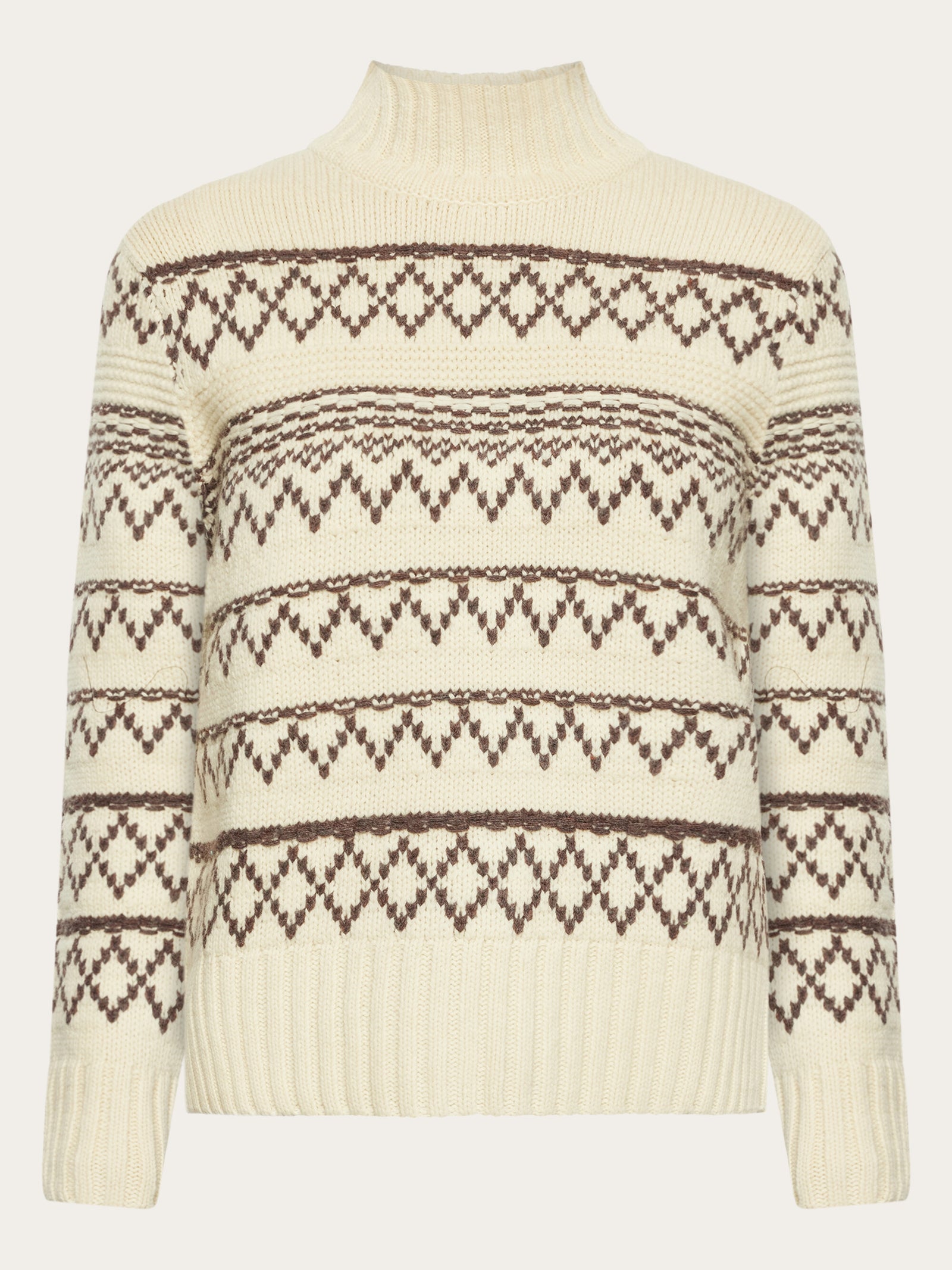 Layer up in cozy pieces designed for comfort this season. Using only the softest lambswool, our knitted crewneck will keep you warm and ready to embrace whatever comes your way. The crewneck is designed in a loose fit with a high neck and an eye-catching pattern and structure.Style no. 2080059