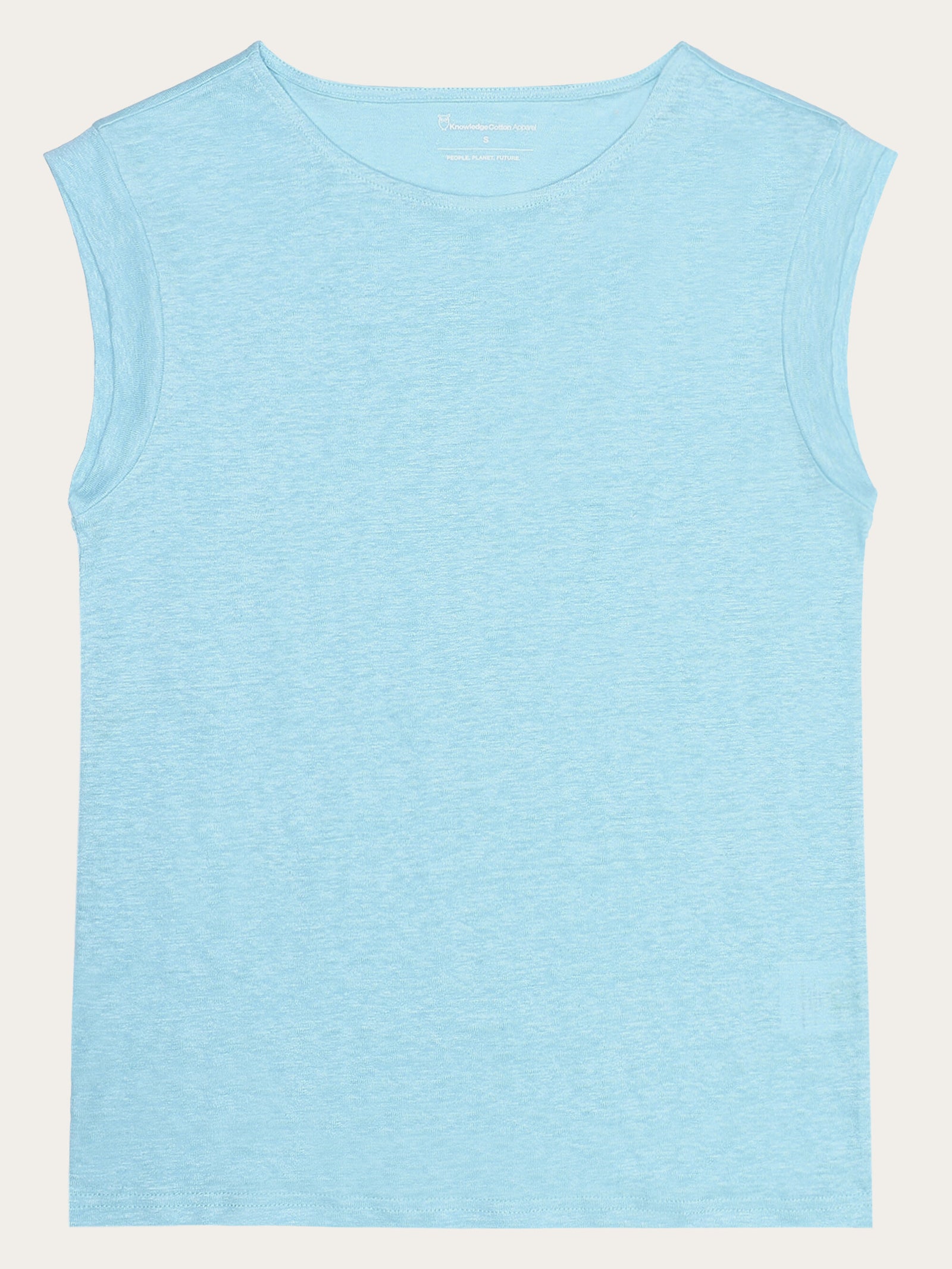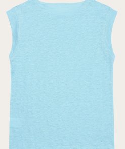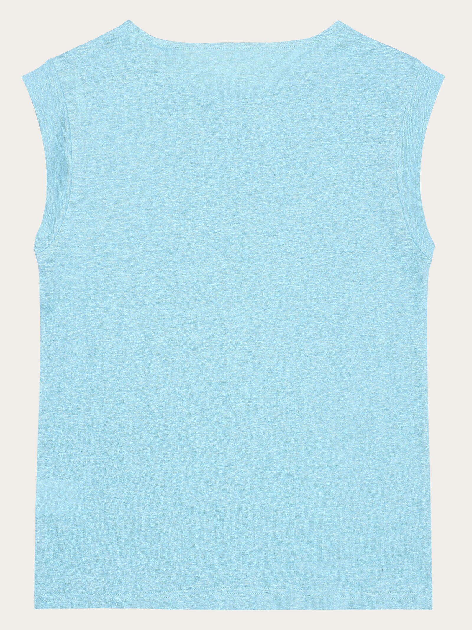 Choose a soft, responsibly made T-shirt for everyday purposes. The linen T-shirt has a loose fit without sleeves and a wide, rounded neckline. Made from 100% organic linen, the quality feels incredibly soft, has a natural melange dye, and is the perfect addition to a comfortable and conscious wardrobe.Style no. 2010011