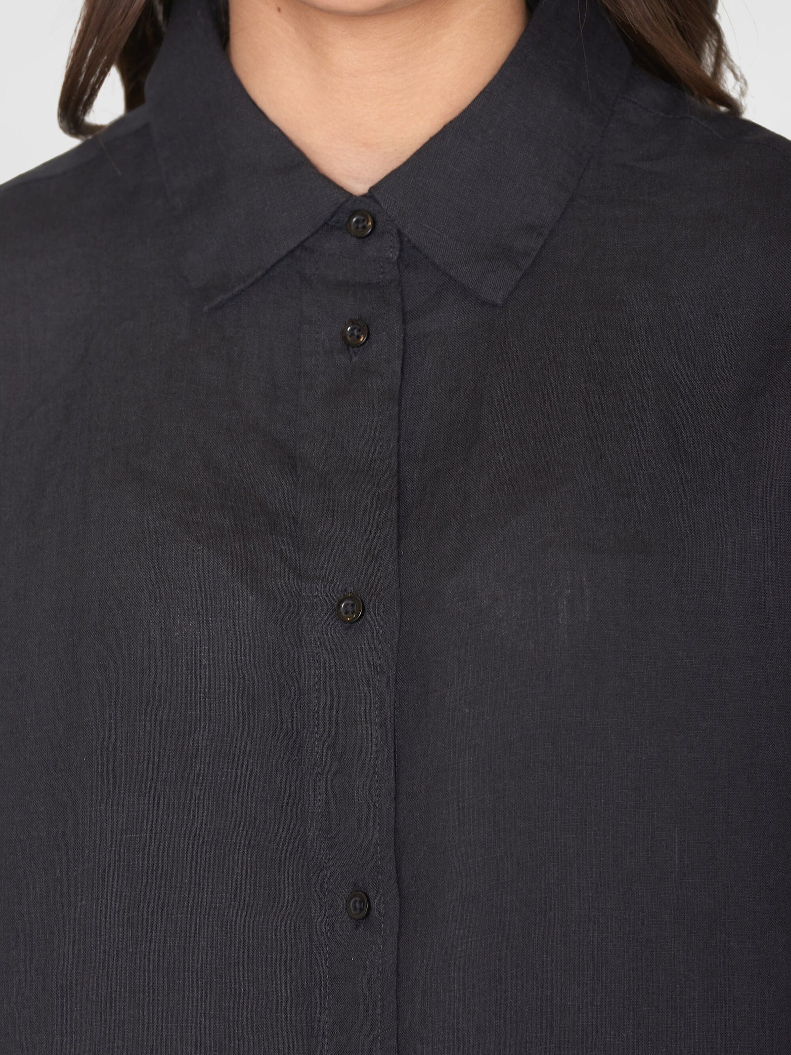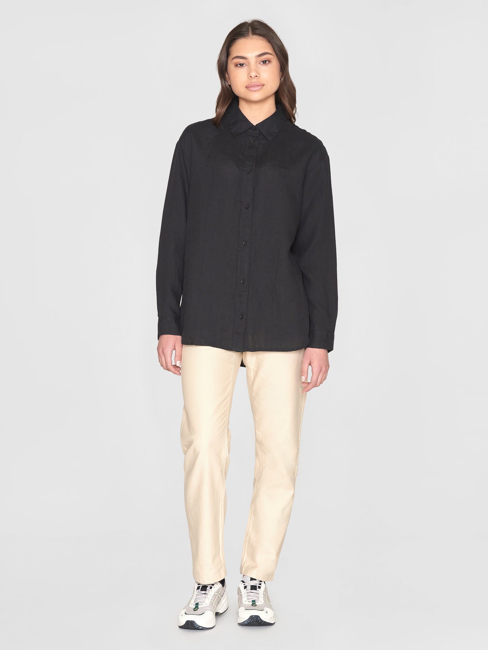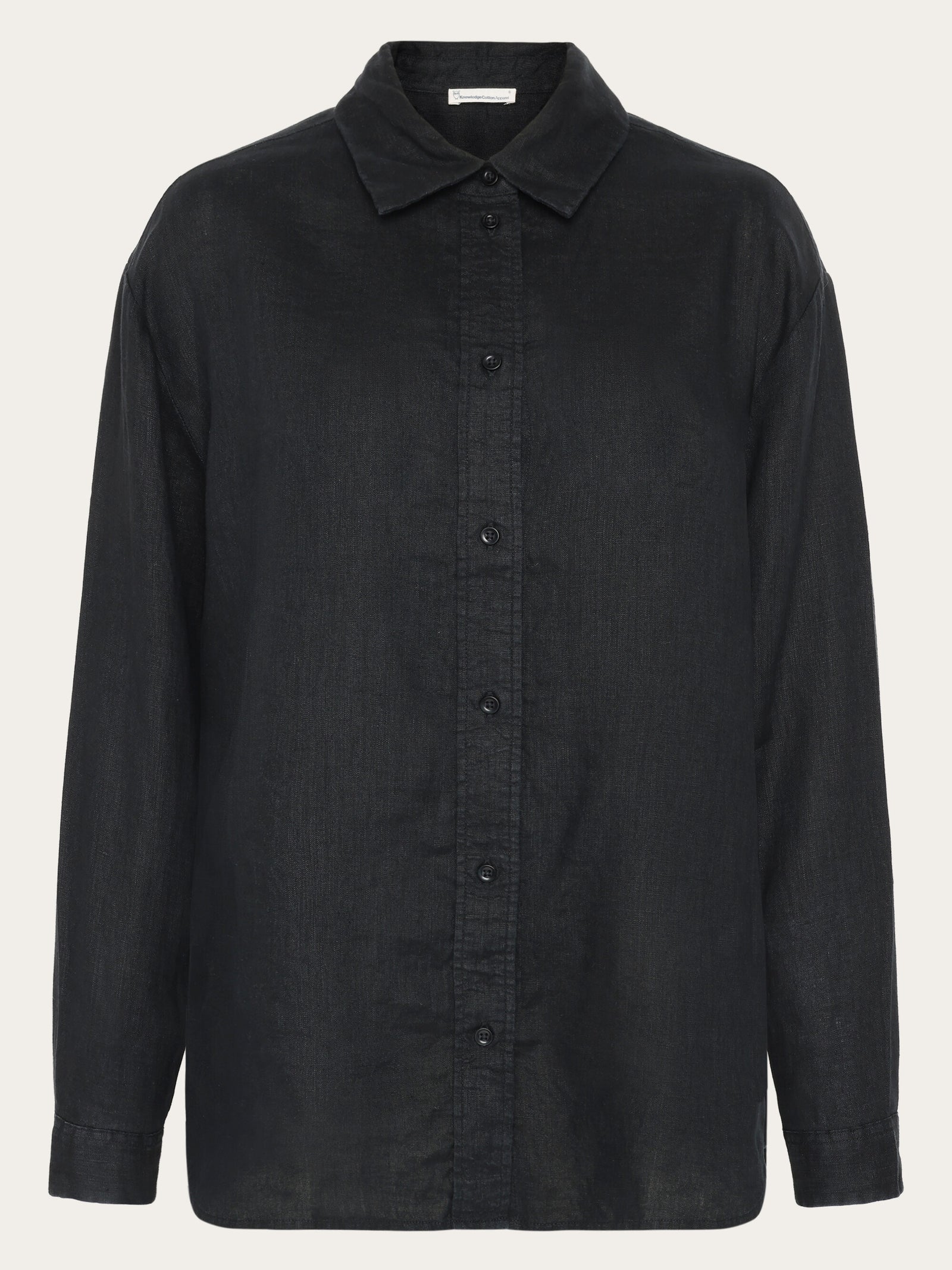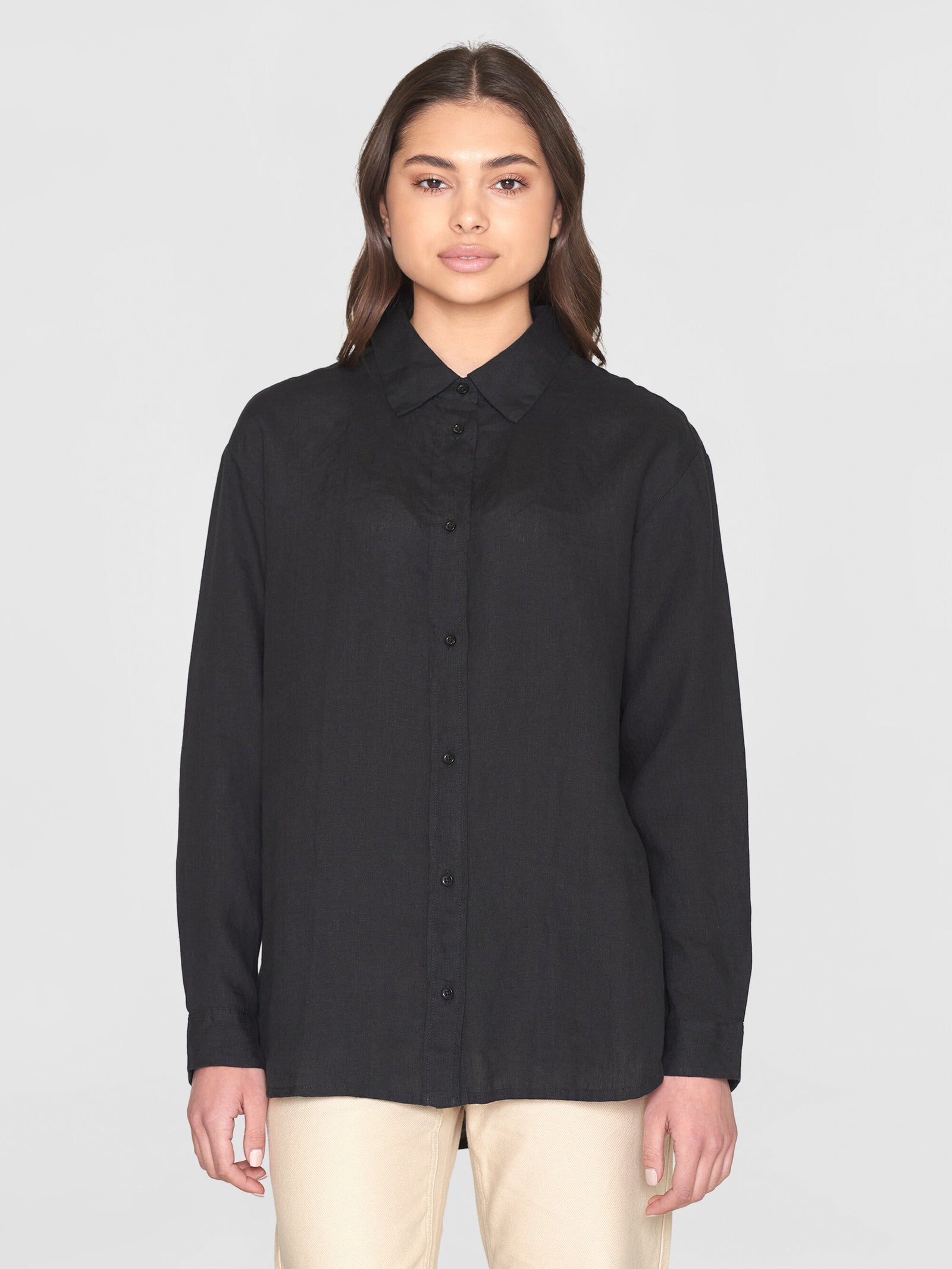 Add this timeless, versatile piece to your wardrobe that you will get to enjoy for a long time. This loose fit shirt is made of 100% organic linen, which means it is very lightweight and durable as well as gentle on the skin. The design is simple with long sleeves, button cuffs, a classic collar, and button-closure.Style no. 2090040