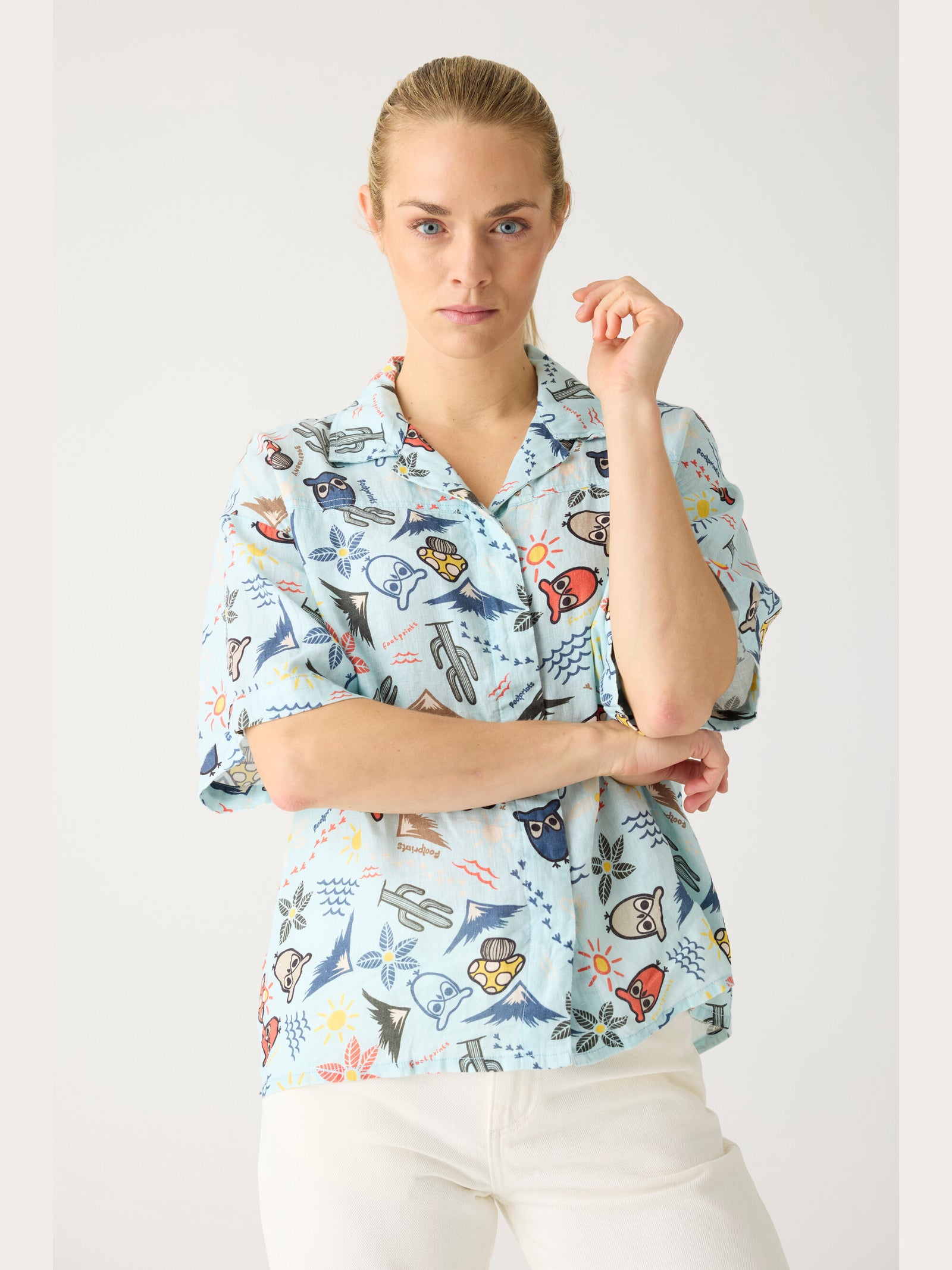 Crafted from 100% organic linen, this short-sleeved shirt offers a relaxed fit, ideal for effortless, warm-weather style. The breathable fabric and lightweight design ensure all-day comfort, making it a versatile choice for casual outings or beachside getaways. Featuring a playful all-over print, this shirt adds a touch of character to any look while maintaining a polished aesthetic. Pair it with tailored shorts or linen trousers to complete a laid-back yet refined ensemble.Style no. 2090064