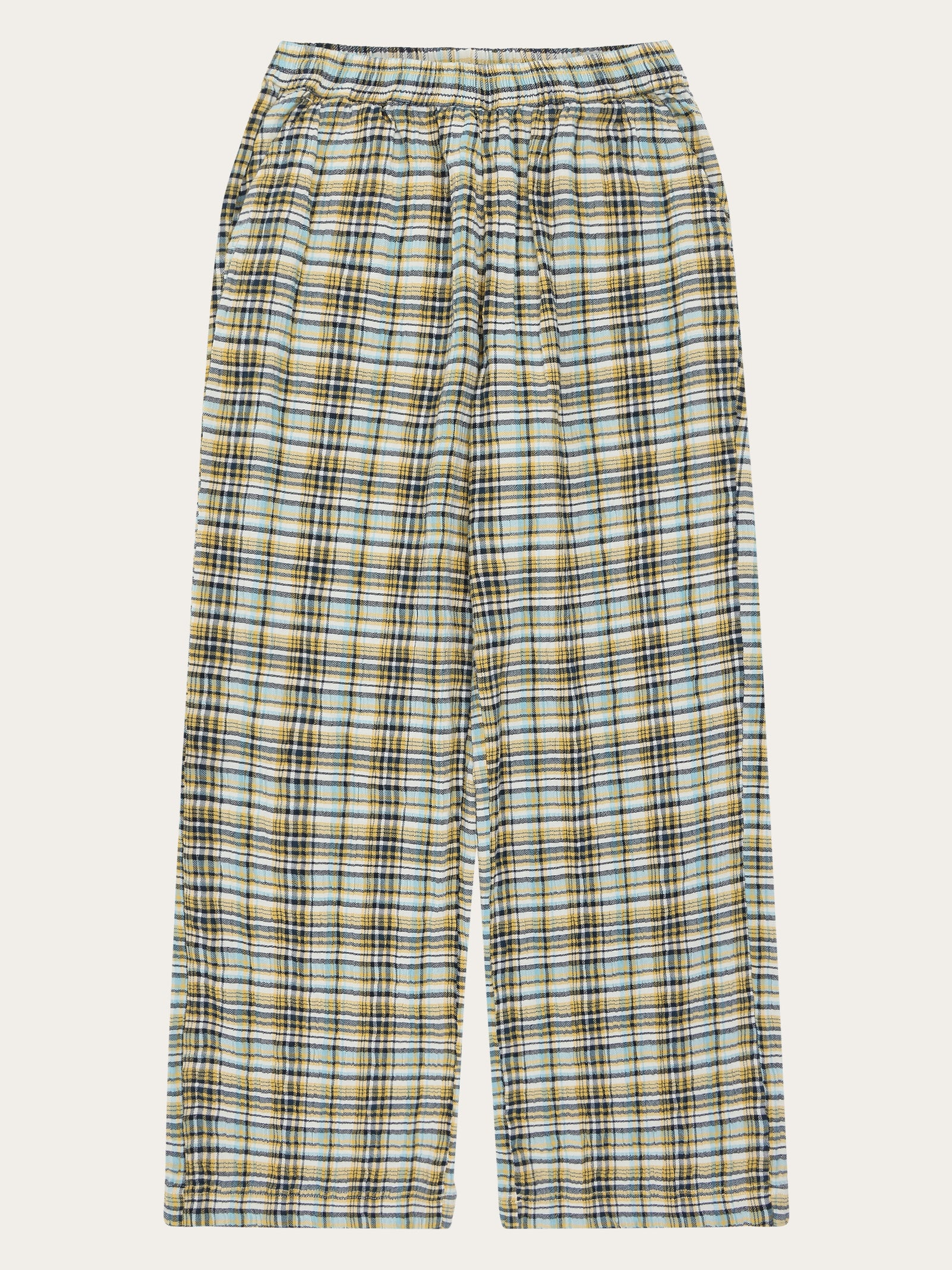 Crafted from 100% organic cotton with a double-layer fabric, these pants offer exceptional comfort and a lightweight feel. The relaxed fit and adjustable drawstring waistband ensure a customizable and secure fit, making them perfect for lounging or casual outings. The double-layer construction adds a touch of texture and enhances durability while maintaining breathability. Designed with practical side pockets, these shorts seamlessly blend quality craftsmanship with everyday functionality for a versatile addition to your wardrobe.Style no. 2070073
