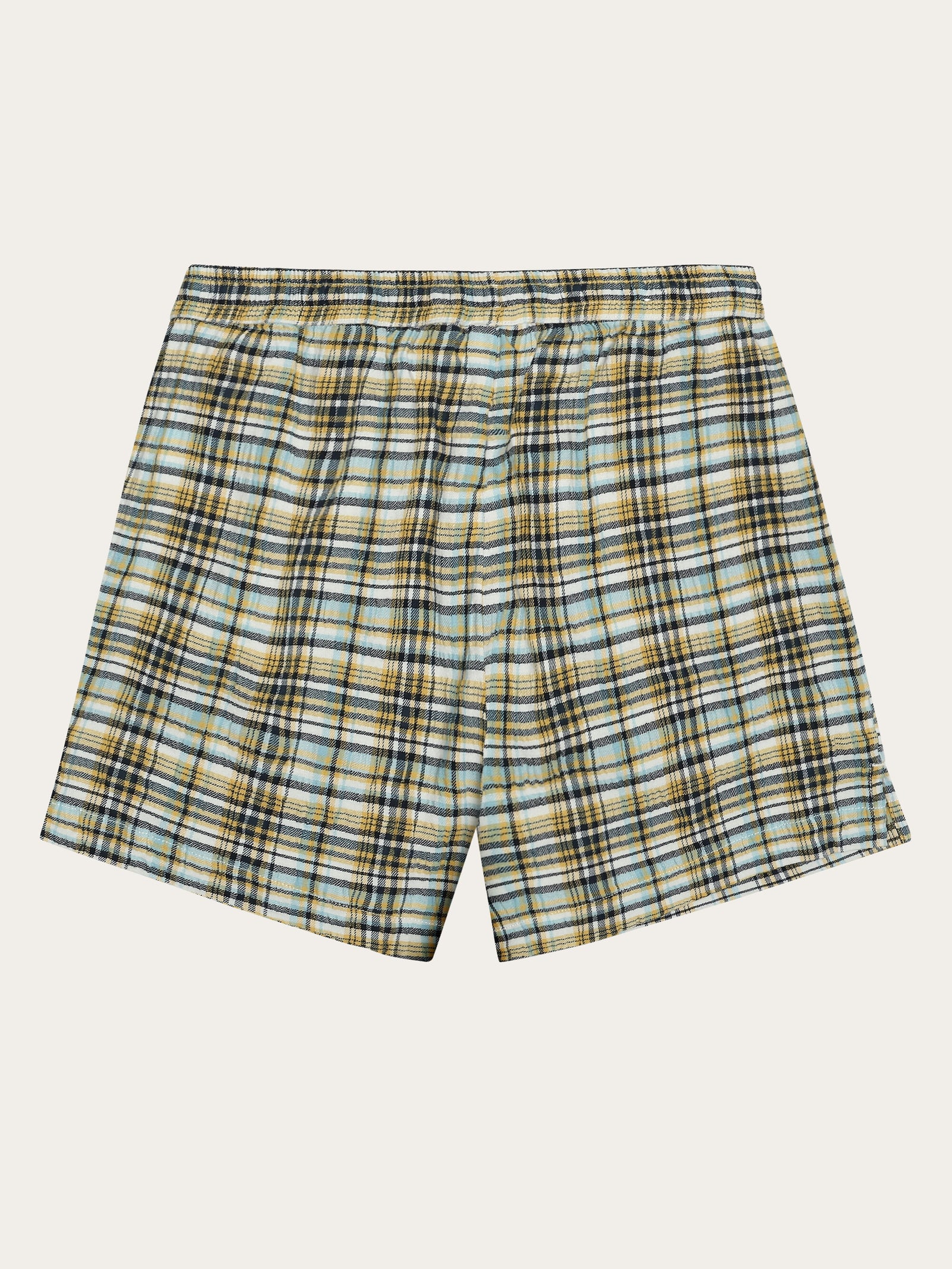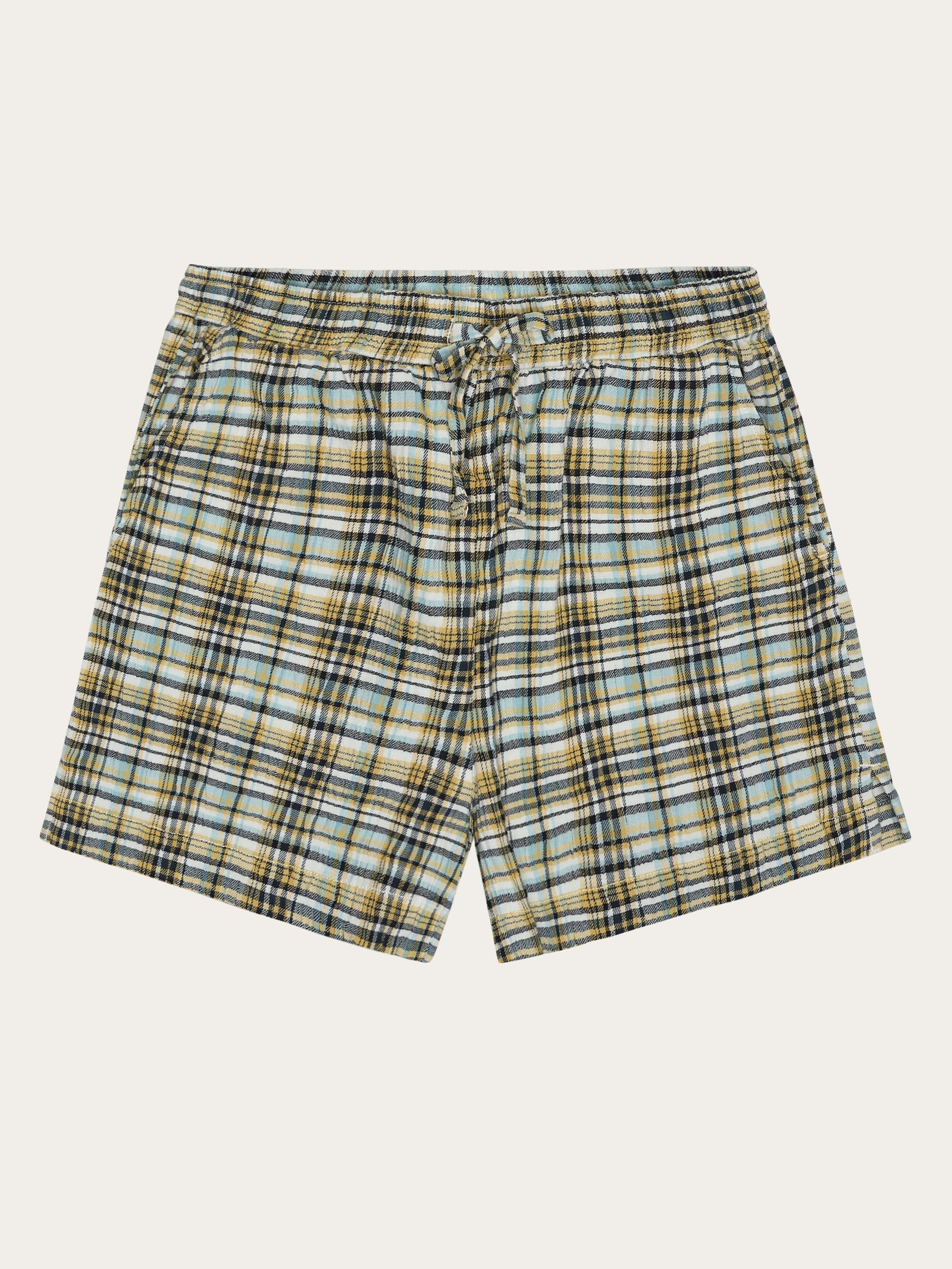 Crafted from 100% organic cotton with a double-layer fabric, these shorts offer exceptional comfort and a lightweight feel. The relaxed fit and adjustable drawstring waistband ensure a customizable and secure fit, making them perfect for lounging or casual outings. The double-layer construction adds a touch of texture and enhances durability while maintaining breathability. Designed with practical side pockets, these shorts seamlessly blend quality craftsmanship with everyday functionality for a versatile addition to your wardrobe.Style no. 2050034