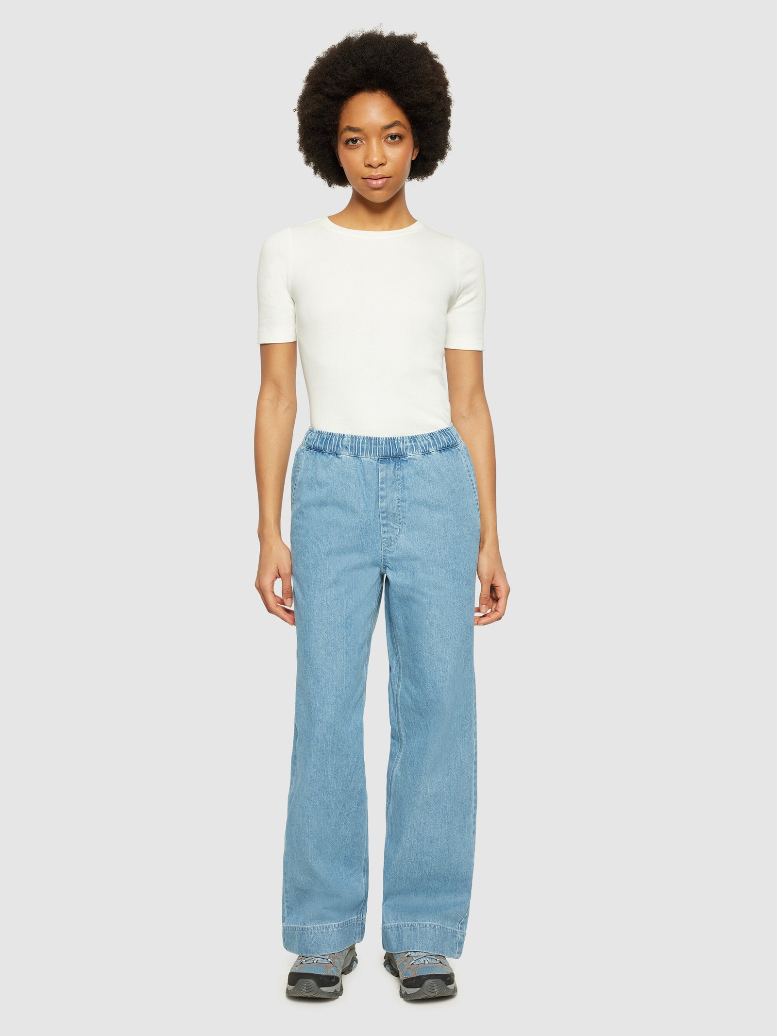 Add timeless pieces marked by trans-seasonal features to your wardrobe, and get ready to embrace whatever comes your way. Our POSEY denim pants are designed in a wide mid-rise fit and made from 100% organic cotton – a durable fabric that provides comfort and a casual look. The pants are finished with an elasticated waistband, slanted front pockets, and a back pocket.Style no. 2070053