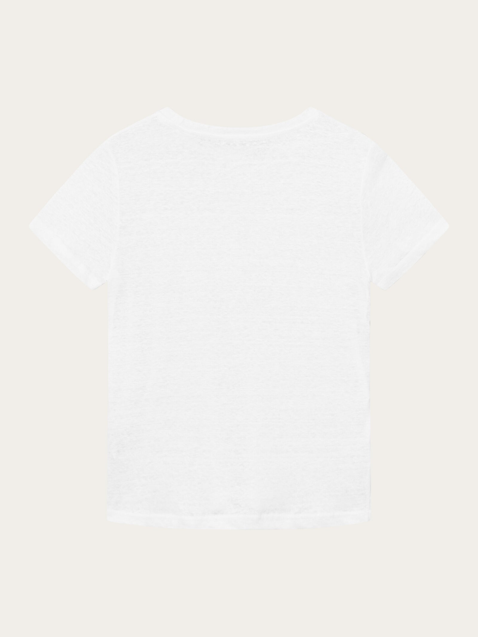 Choose a soft, responsibly made T-shirt for everyday purposes. The linen T-shirt has a regular fit with a wide, rounded neckline. Made from 100% organic linen, the quality feels incredibly soft, has a natural melange dye, and is the perfect addition to a comfortable and conscious wardrobe.Style no. 2010010