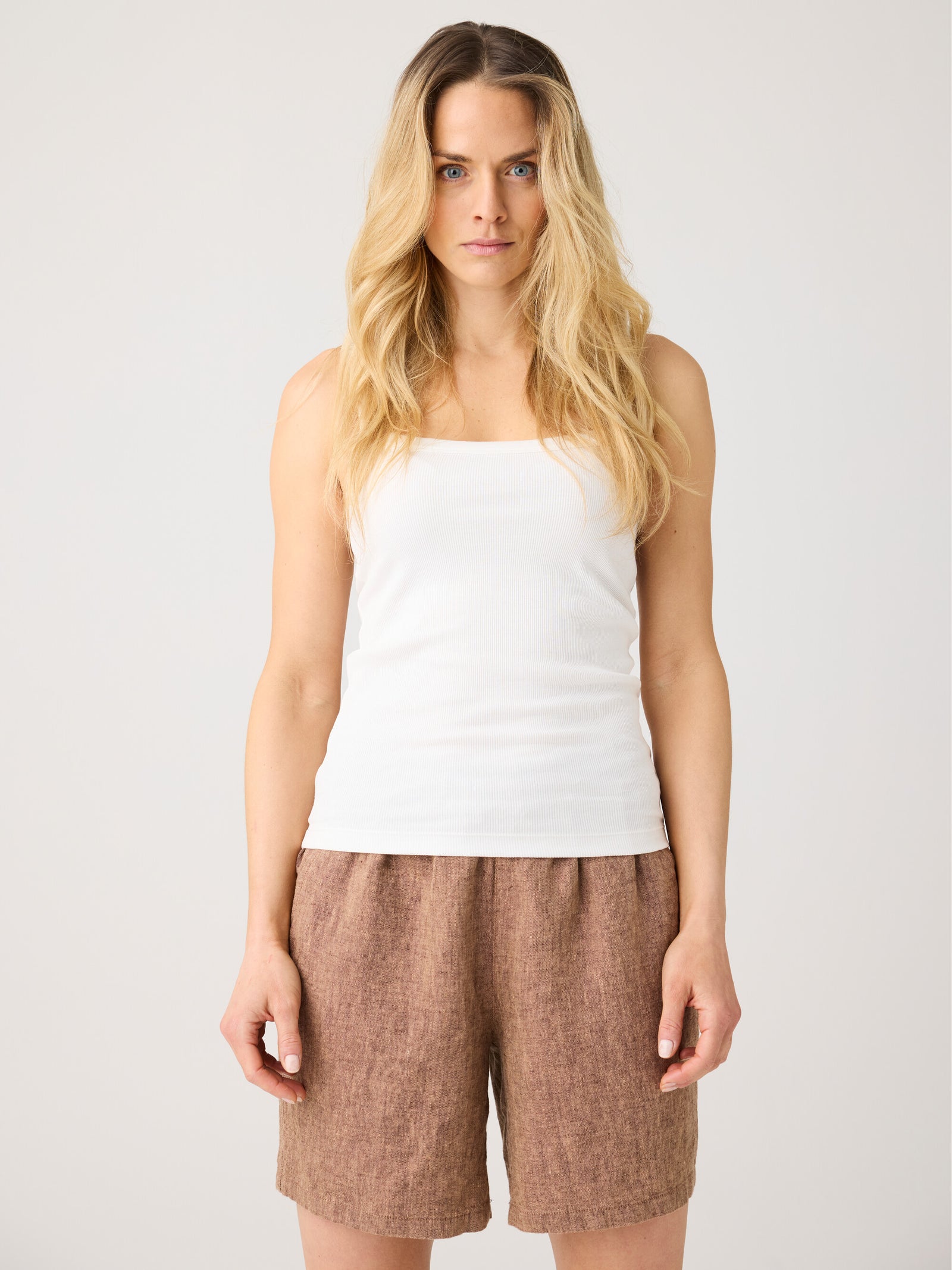 Let simple and timeless styles rule your summer wardrobe. Our rib strap top is the perfect choice for your summer outfit. It is made in a soft blend of lightweight organic cotton and a little bit of elastane for your comfort. Designed in a slim fit with wide straps.Style no. 2010015