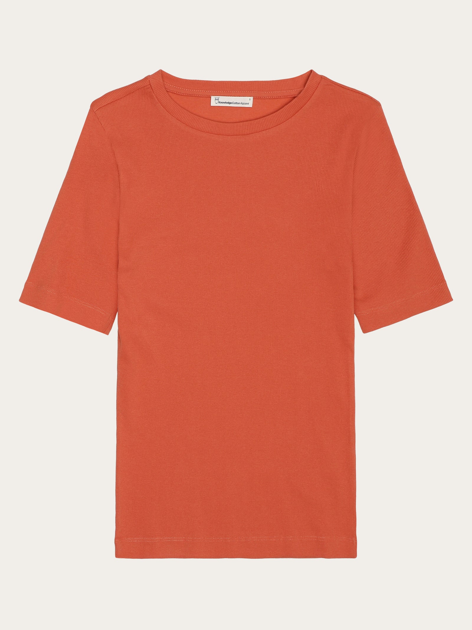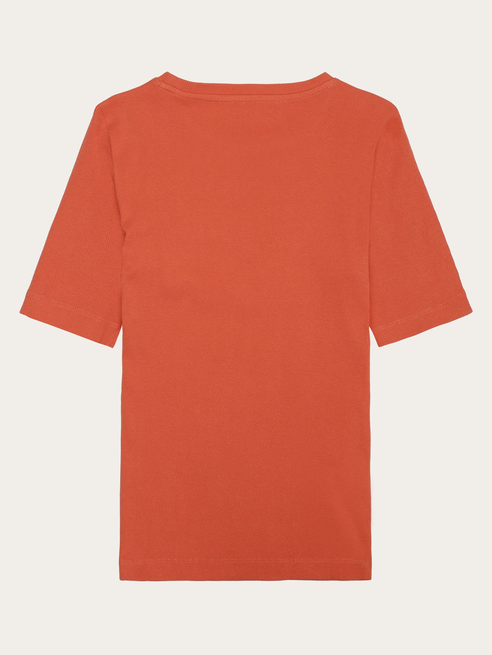 Let simple and timeless styles rule your summer wardrobe. Our rib T-shirt is the perfect choice for your summer outfit. It is made in a soft blend of lightweight organic cotton and a little bit of elastane for your comfort. Designed in a slim fit with mid-length sleeves and a rounded neckline.Style no. 2010014