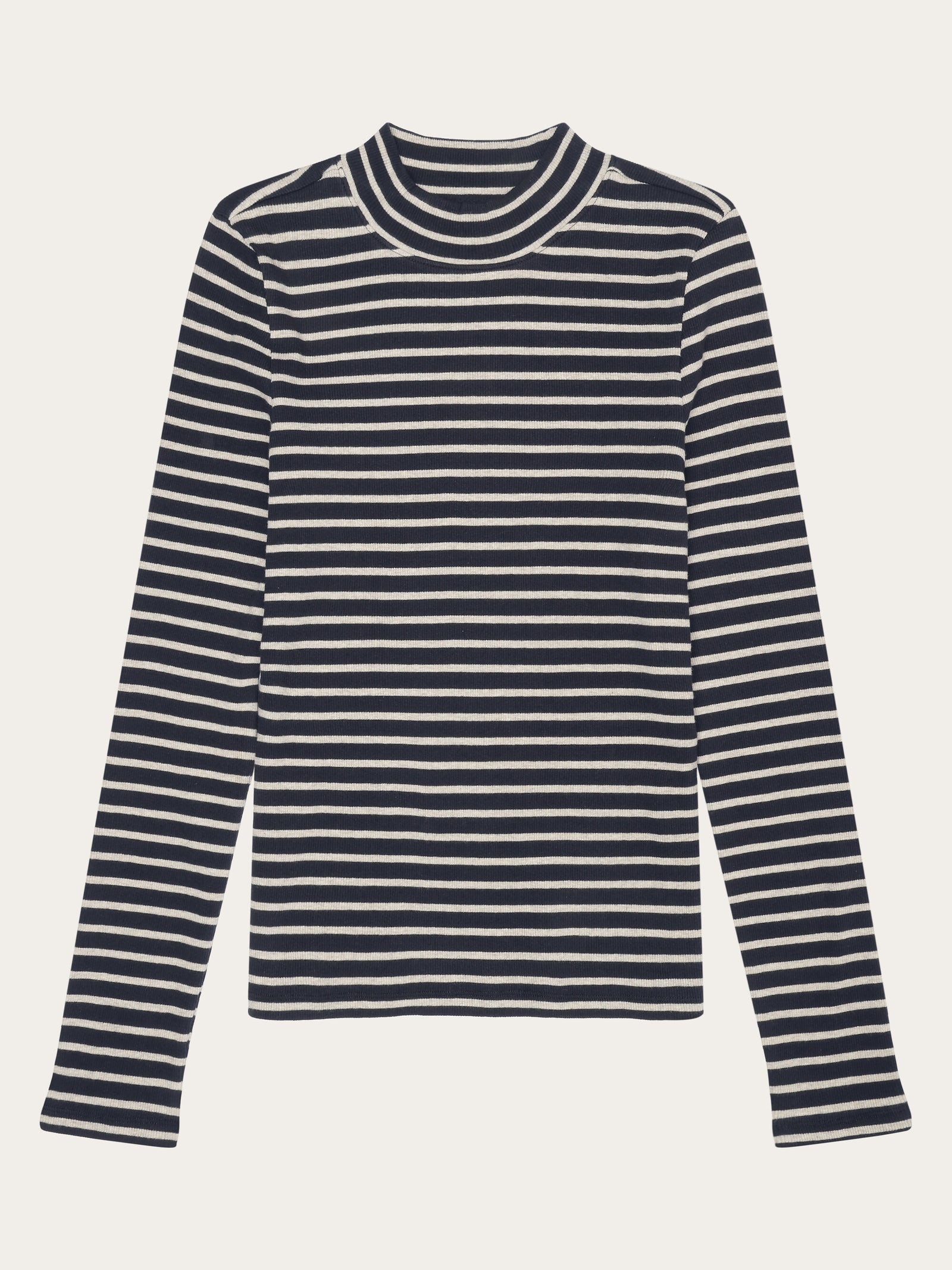 Let your everyday wardrobe consist of classy casuals designed to last through seasons. Our striped long-sleeved rib T-shirt is made of soft organic cotton with a touch of stretch for easy movement and a tapered look. The T-shirt is designed in a regular fit with wide ribbing for a textured finish and a high neck.Style no. 2120003