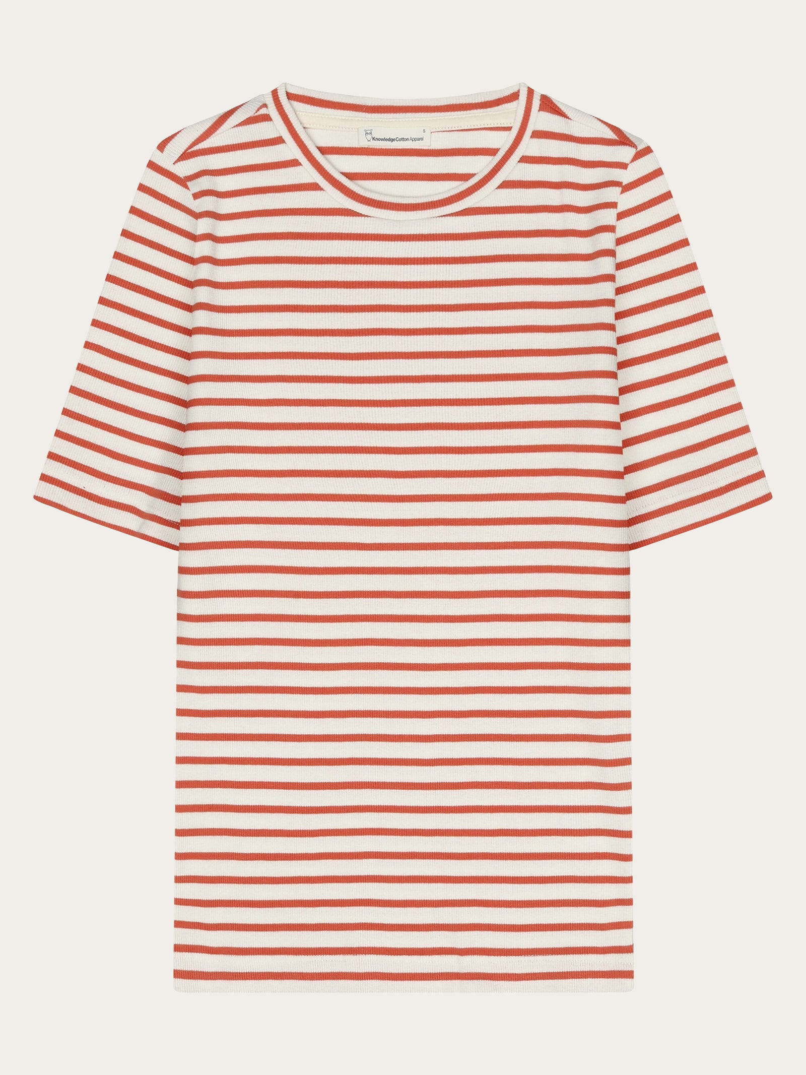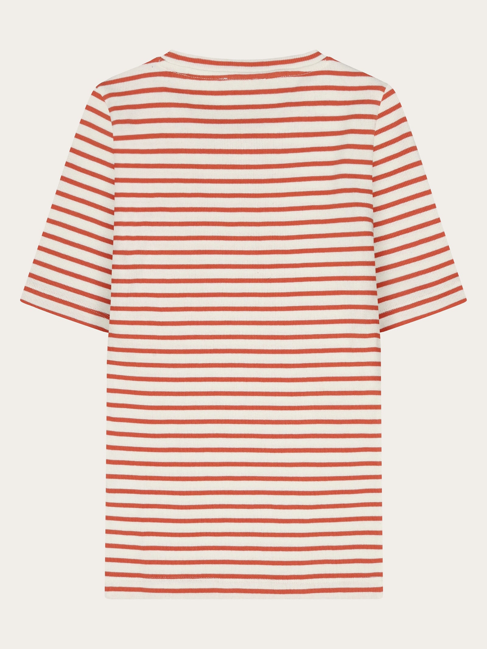 Let simple and timeless styles rule your summer wardrobe. Our rib T-shirt is the perfect choice for your summer outfit. It is made in a soft blend of lightweight organic cotton and a little bit of elastane for your comfort. Designed in a slim fit with mid-length sleeves, a rounded neckline, and stylish stripes.Style no. 2010019