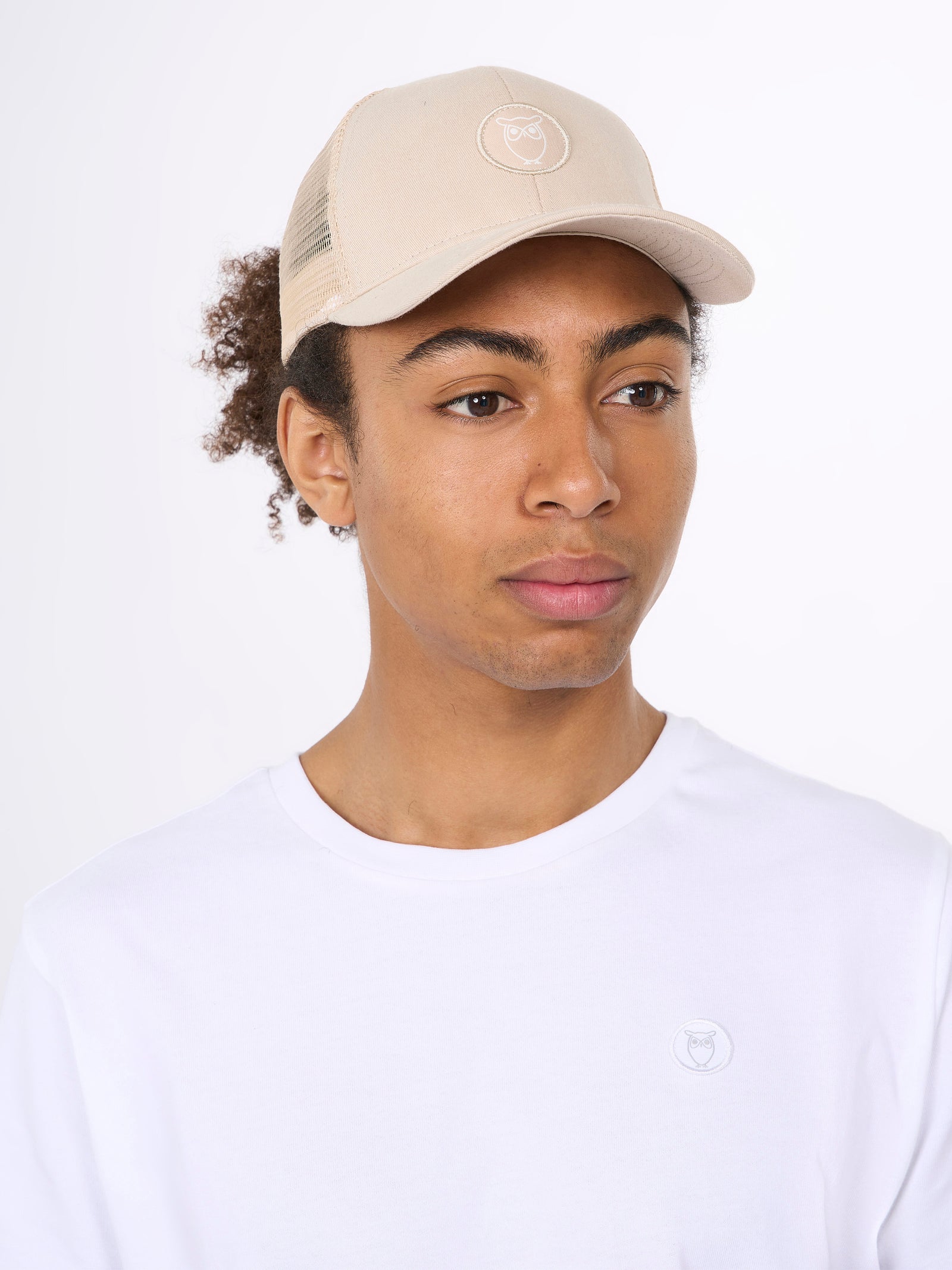 Our twill trucker cap is shaped to a six-panel silhouette in 100% organic cotton. The cap has mesh panels in the back for breathability and is finished with a tonal owl-embroidered patch on the front.Style no. 4230008